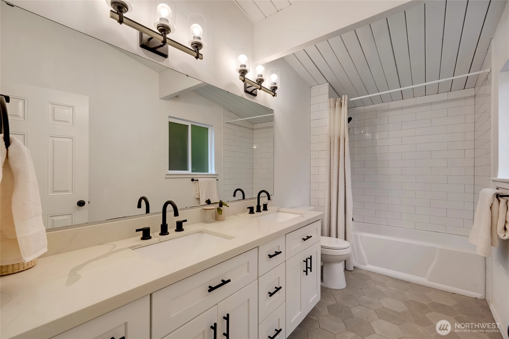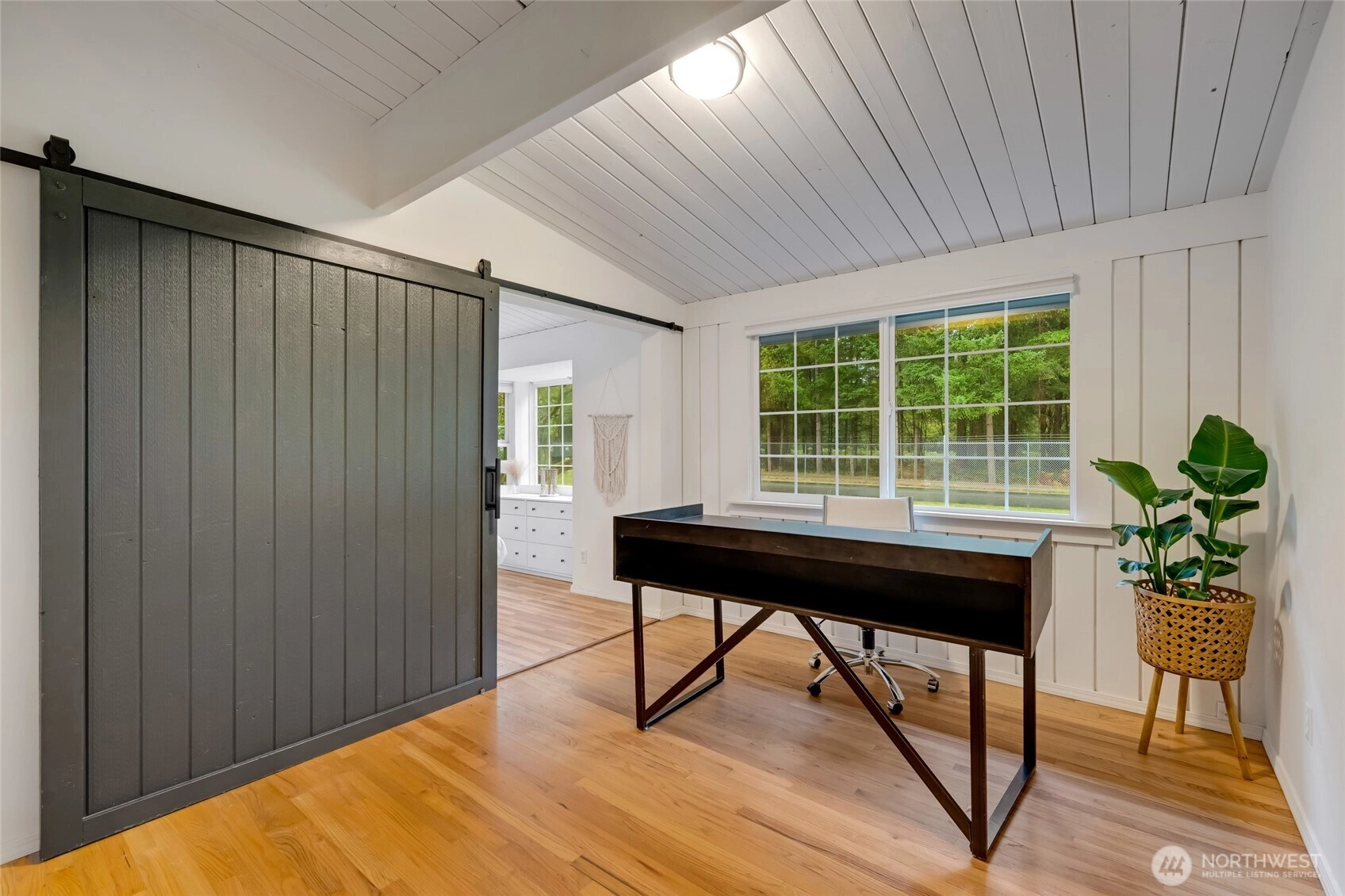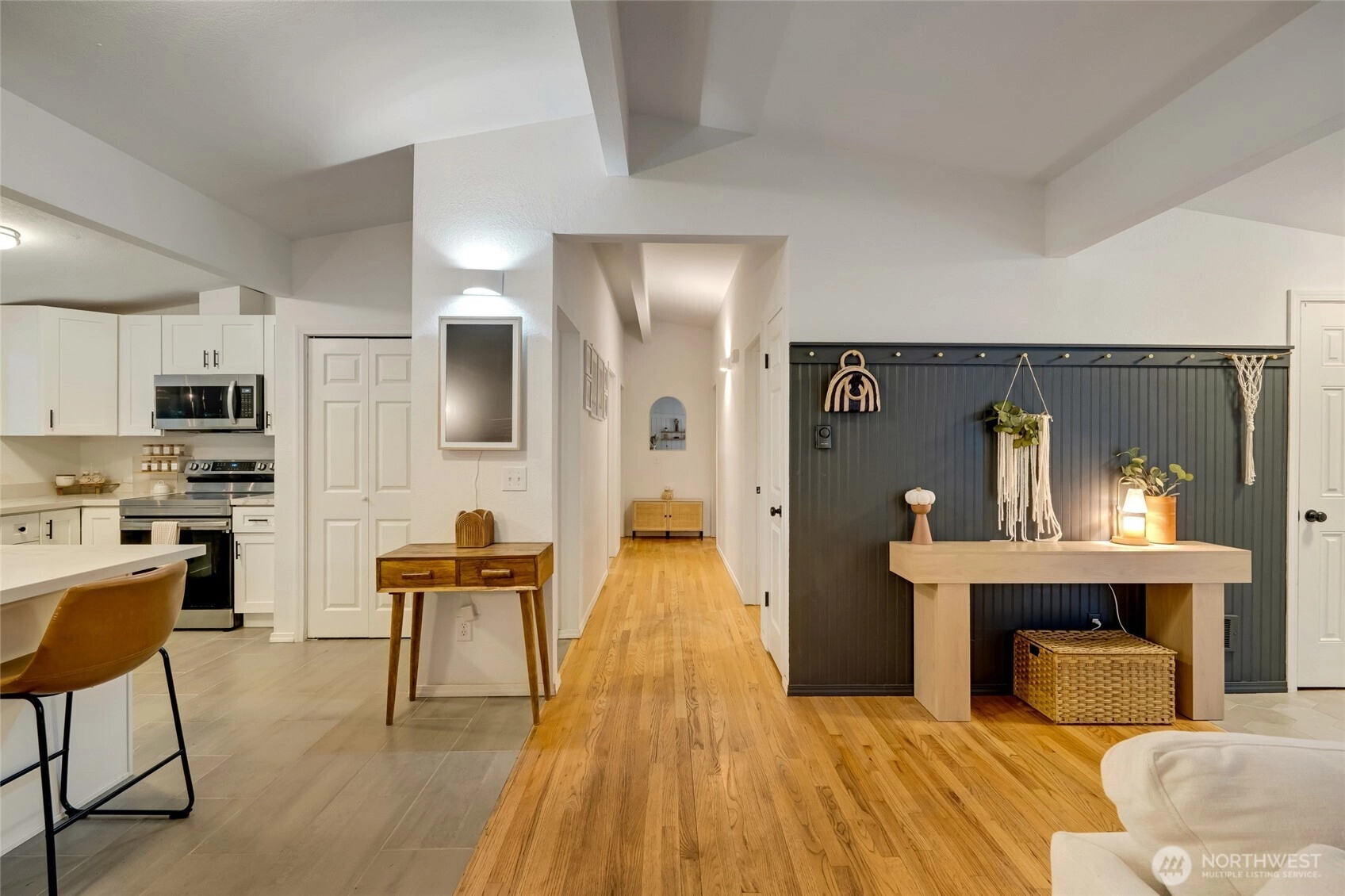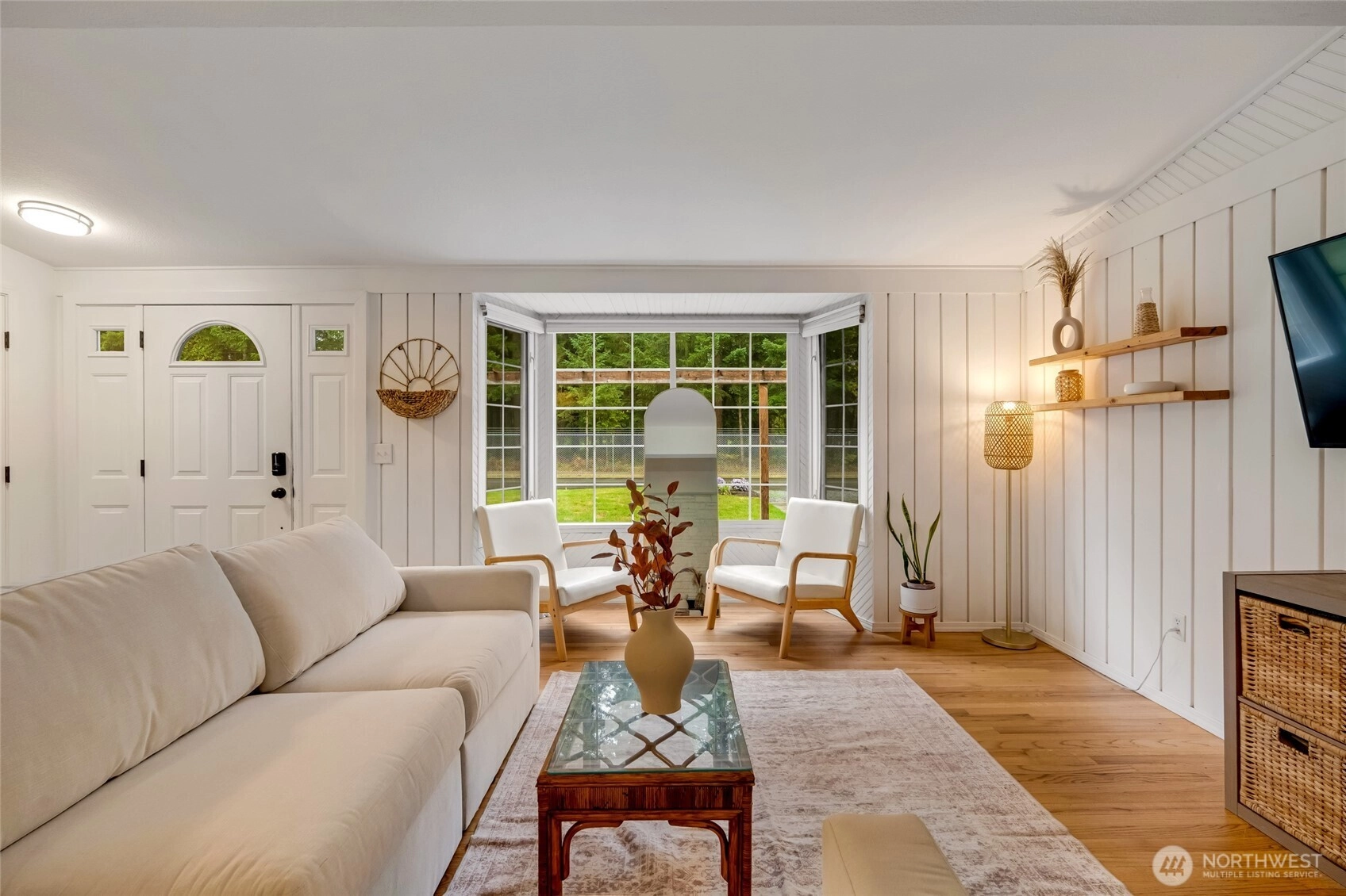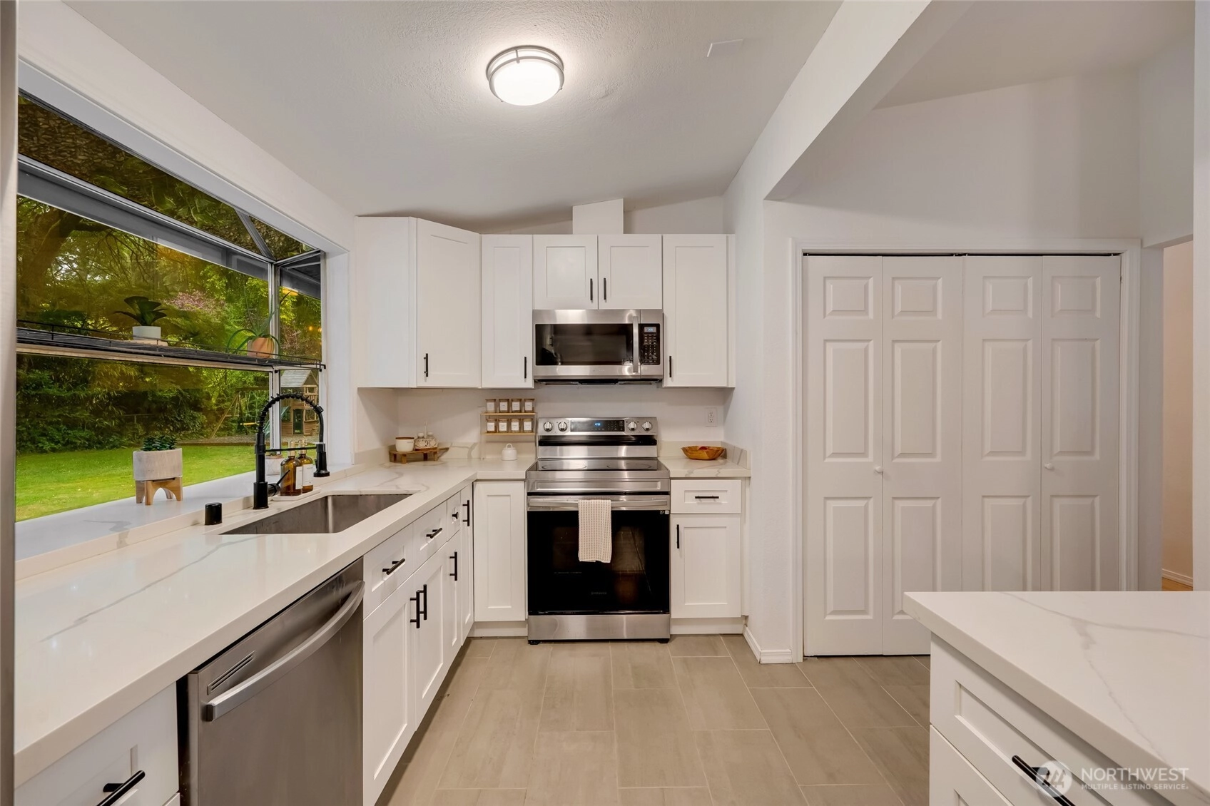 Beautifully updated rambler on a spacious ½ acre lot in the heart of Smokey Point! This 3-bedroom + office, 2.5-bath home features a bright open-concept living area with vaulted ceilings, fully remodeled kitchen and bathrooms, and modern finishes throughout. The large primary suite includes a walk-in closet and ensuite bath, while another bedroom also enjoys its own private bathroom. Recent upgrades include a newer roof, tankless water heater, and energy-efficient mini-split for updated heat & AC. Step outside to a huge covered patio, flat yard perfect for play, gardening, or space to expand. Don't miss the detached backyard office. Just minutes from shopping, dining, and I-5, this move-in ready home blends comfort, convenience, and space!