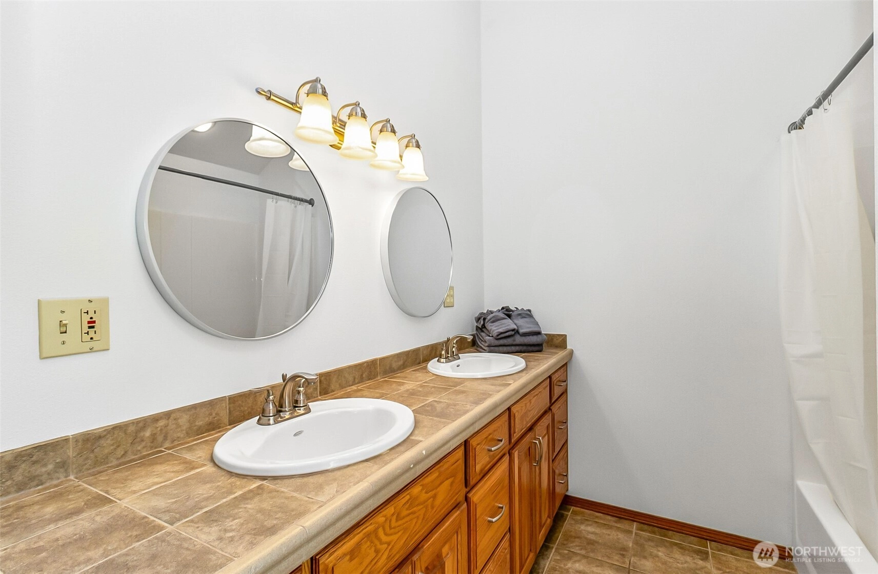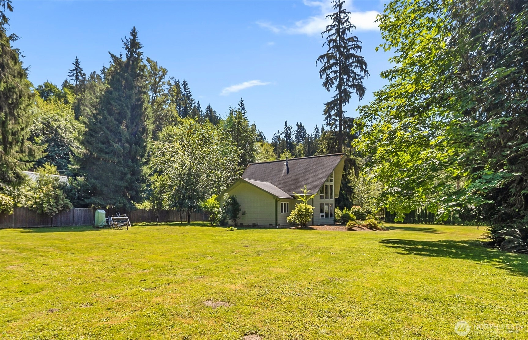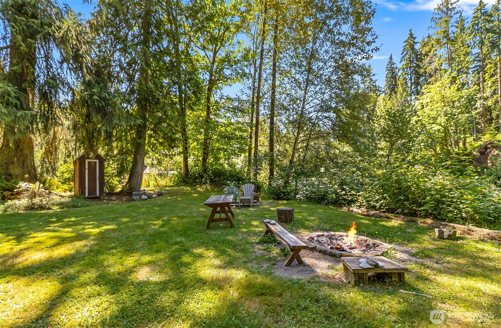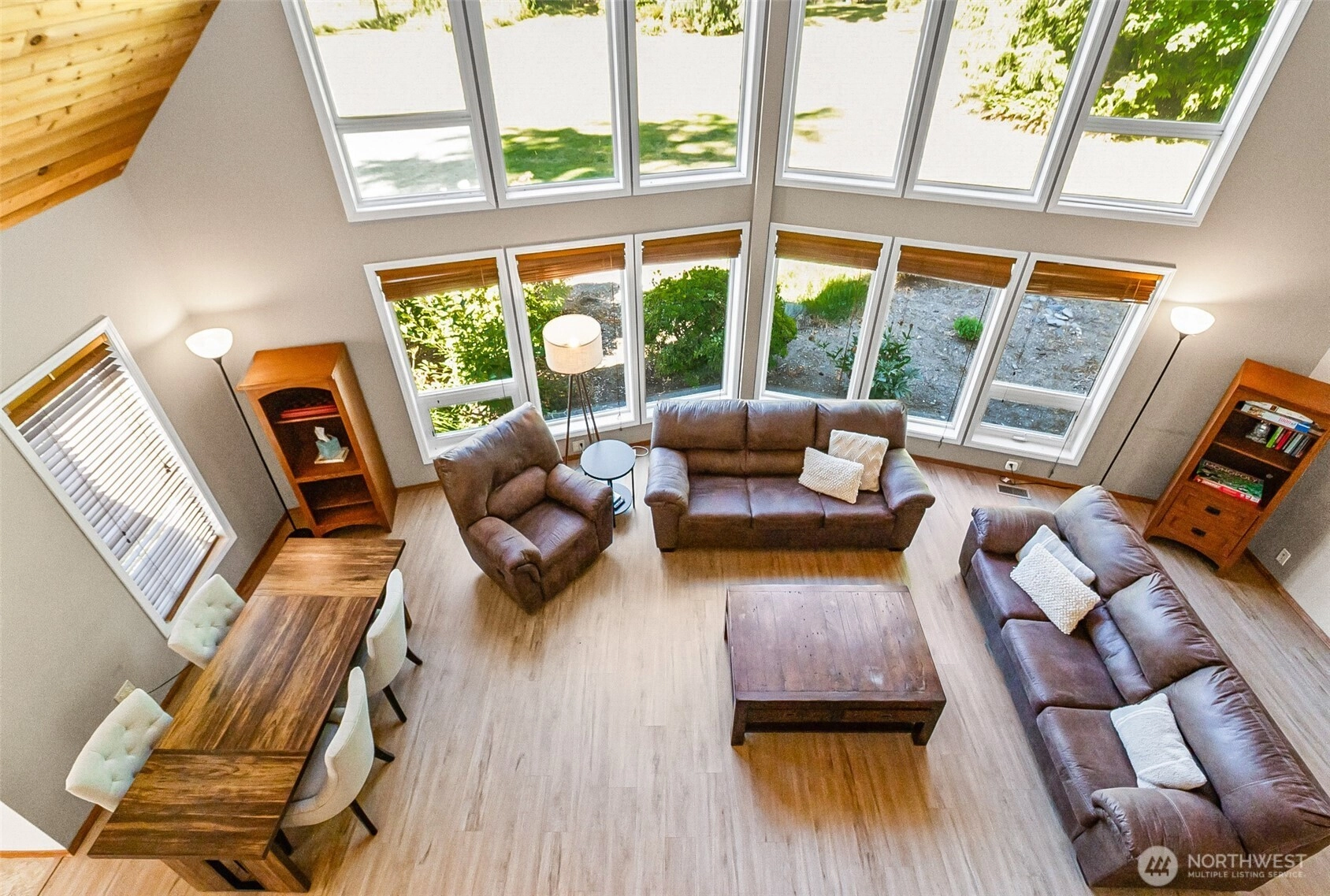 This exceptional property provides privacy, seclusion, beautiful waterfront and a gorgeous home. The tiled entry welcomes you to open spaces with vaulted ceilings, full wall of windows & gas fireplace in the fantastic living room. Holiday sized dining room opens to the covered patio w/hot tub. The kitchen is bright, open and includes quality appliances & cabinetry, gas range & breakfast bar. Two bedrooms on the main level include the primary with luxurious bath and walk-in closet. A second primary suite on the upper level also has a full bath, walk-in closet & balcony with a view of the water. Welcome natural light throughout & the view is inspiring. Level, sunny 2.3 acre lot with mature landscaping, firepit, horseshoes, generous parking.