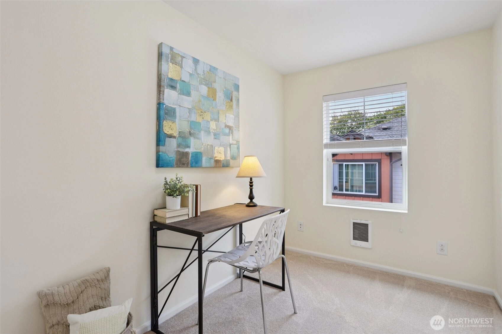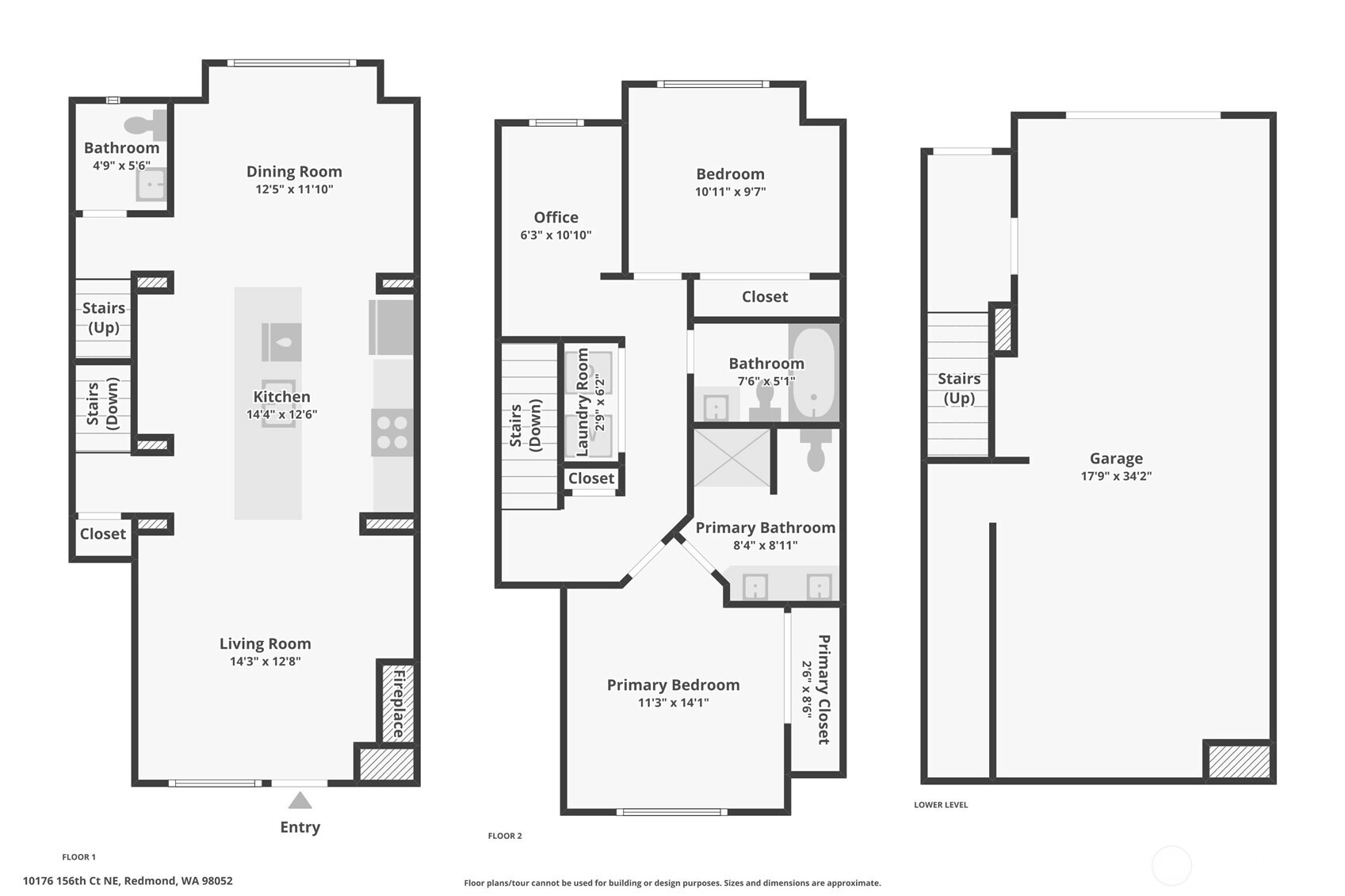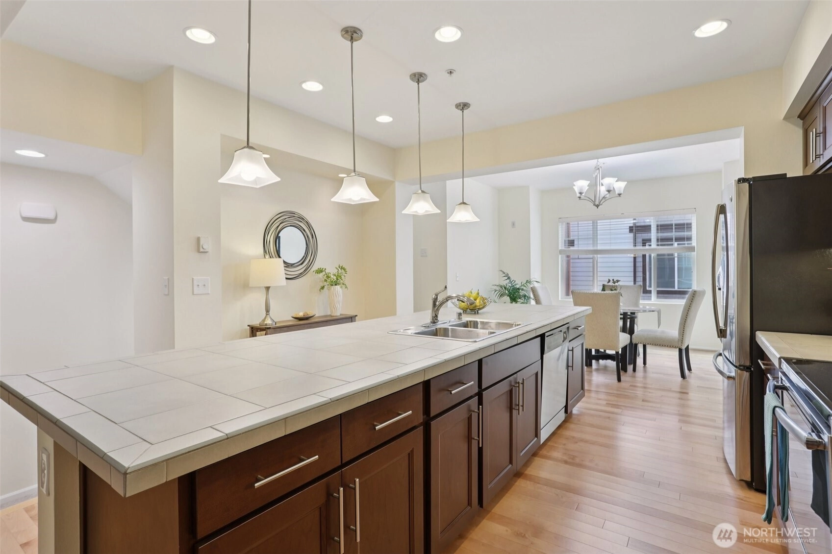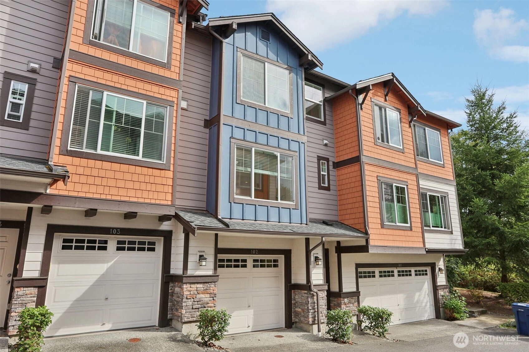Location, location, location! DT Redmond convenient to local shops, restaurants, RTC, Bella Botega and more. Freshly painted interior with brand NEW carpeting & hot water tank. This 2 bedroom townhome with den located in Villas at Mondavio next to the Sammamish River trail with main level entry has family room and fireplace, open kitchen w/ SS appliances and lots of cabinets, dining room, and a 1/2 bath. Beautifully updated with modern finishes throughout, spacious primary suite with large closet & spacious bath. 2nd bedroom with ample closet space, another full bath & laundry room complete the upper floor. 2-car tandem garage. Low HOA dues include water/sewer/earthquake ins.