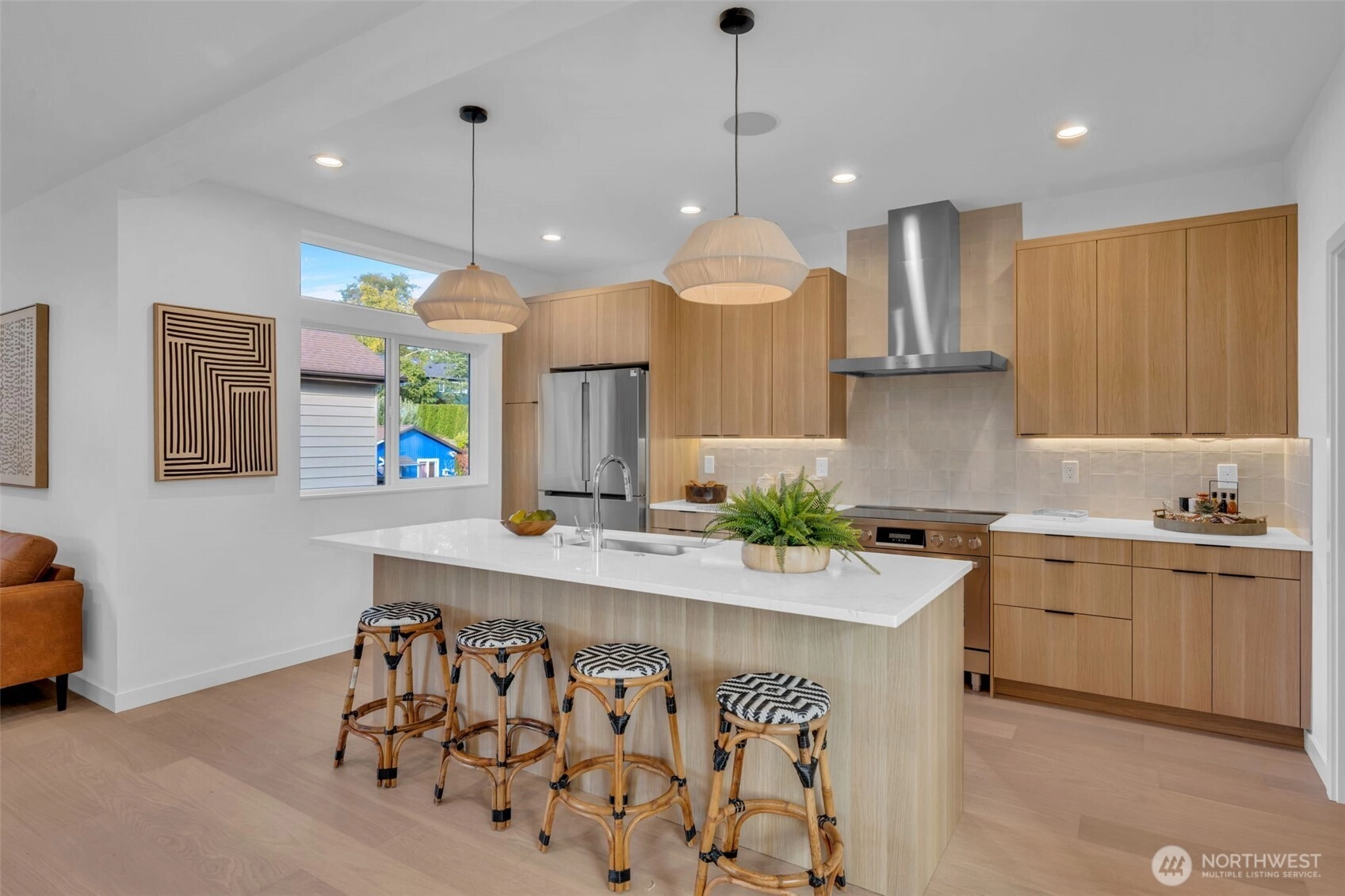 Discover your dream home in the tranquil Seaview neighborhood of West Seattle! This stunning new construction home boasts 2,291SF of thoughtfully designed living space, featuring 4 spacious bedrooms and 3.5 luxurious baths. Large Island kitchen with plenty of seating. Built-in cabinets make a great serving area off the dinning room. Covered deck off living room. Top floor primary suite has large walk-in closest. Separate laundry room upstairs. Enjoy breathtaking views of the Sound and mountains from the expansive rooftop deck, perfect for soaking in vibrant sunsets. Nestled on a peaceful street yet only a short stroll away from the bustling Alaska Junction. With a two-car attached garage, convenience meets comfort in this idyllic setting.