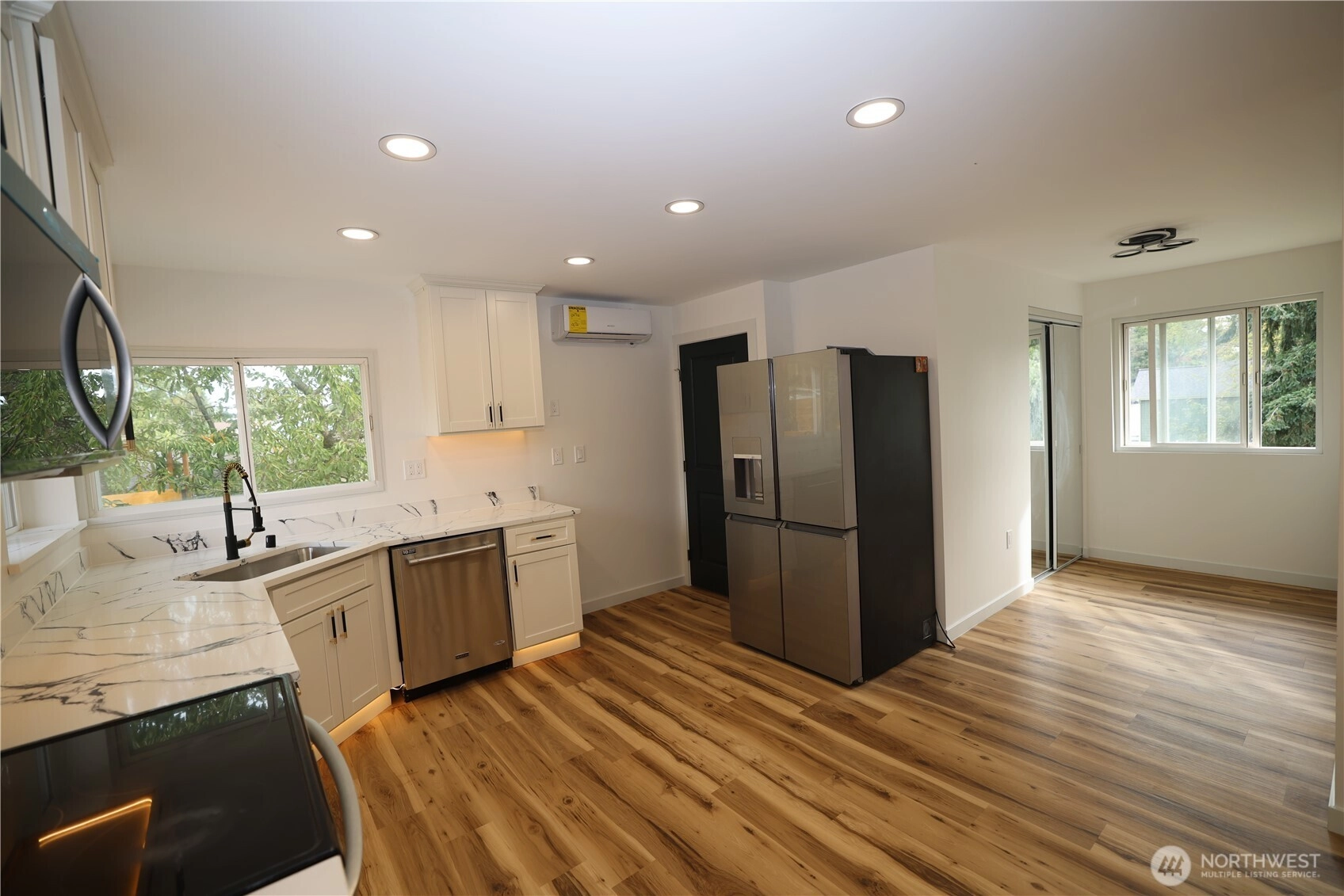 Versatile layout with instant income potential! This fully remodeled home features two separate living spaces: 2 bedrooms, 1 bath, a full kitchen, and a laundry room on the main level, and 2 bedrooms, 1 bath, a kitchen, and a washer & dryer on the lower level. Ideal for Airbnb, traveling nurses, or long-term rental, with the airport just 4 miles away and light rail nearby. Perfect for multi-generational living, enjoying privacy and independence while living together. Or you can occupy the main level and rent out the lower level, or vice versa. Minutes to parks, shopping, transit routes, and major highways. Central AC on the main level & plenty of parking in the backyard. This location offers convenience, flexibility, and strong upside.