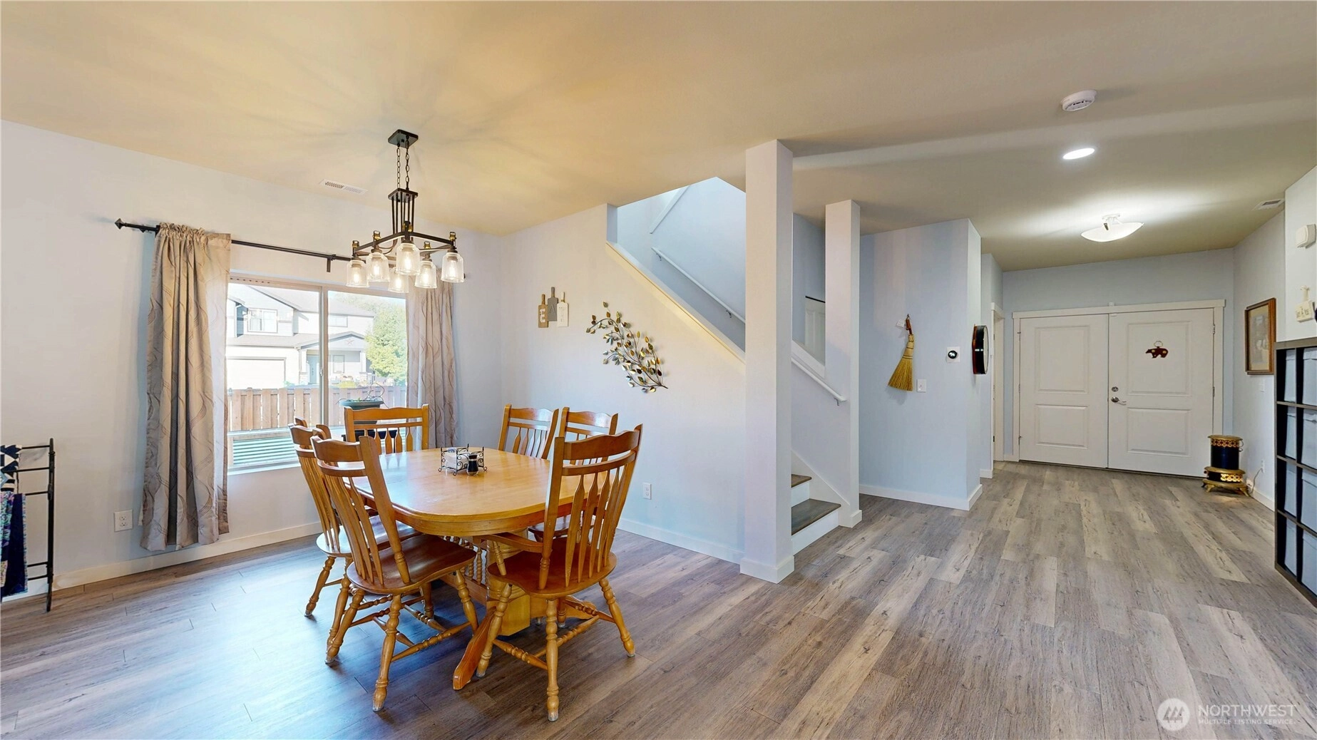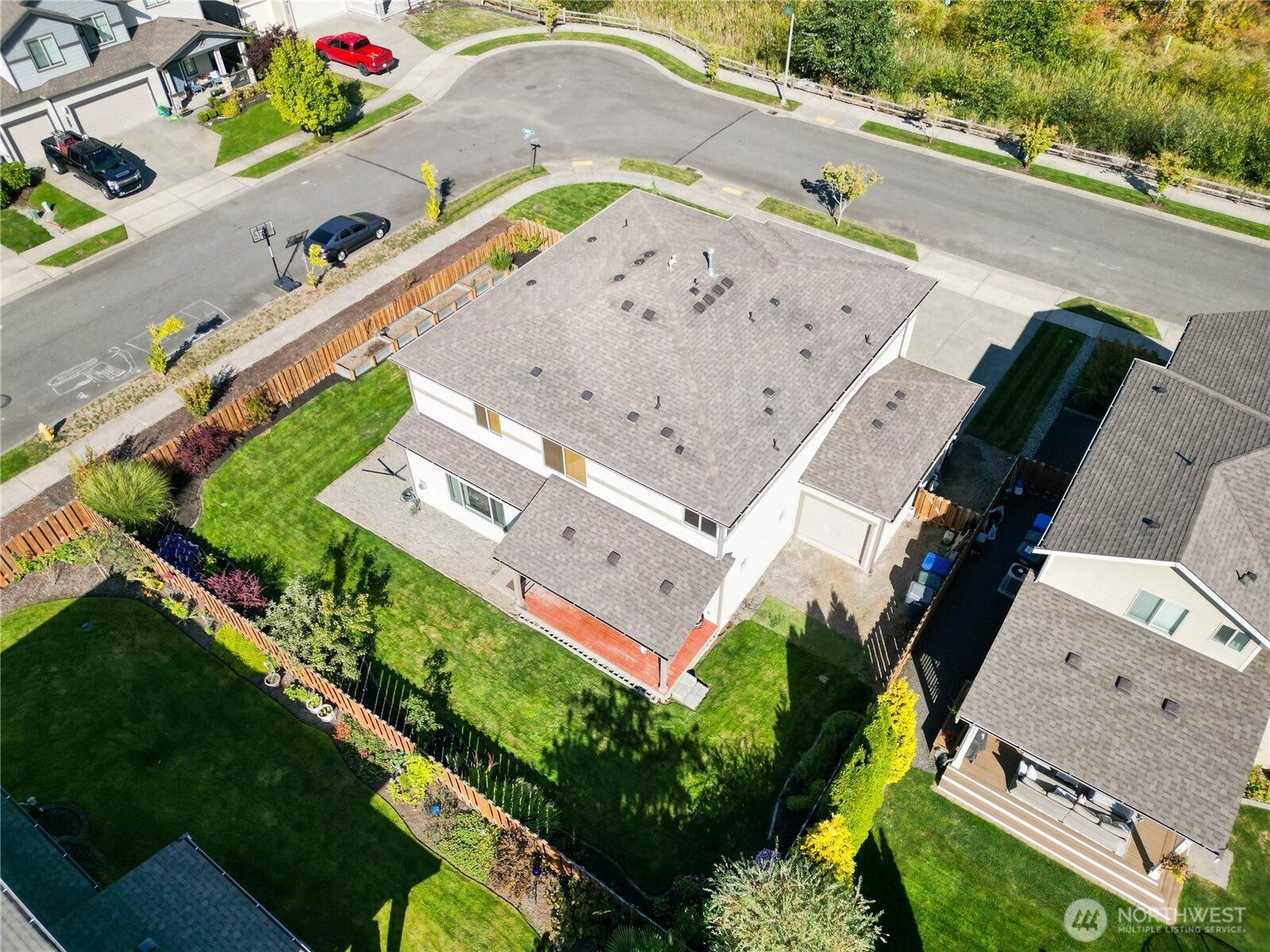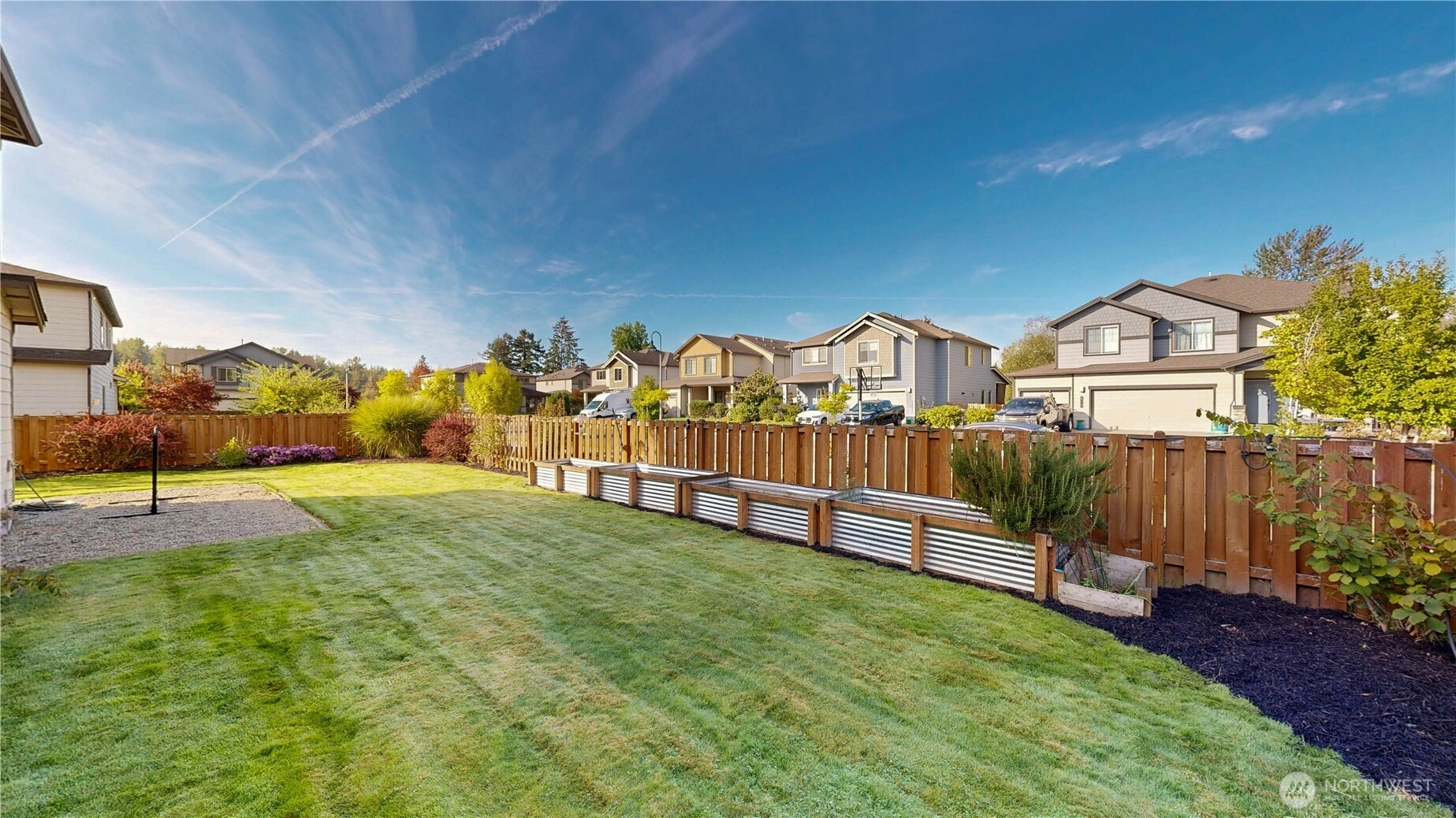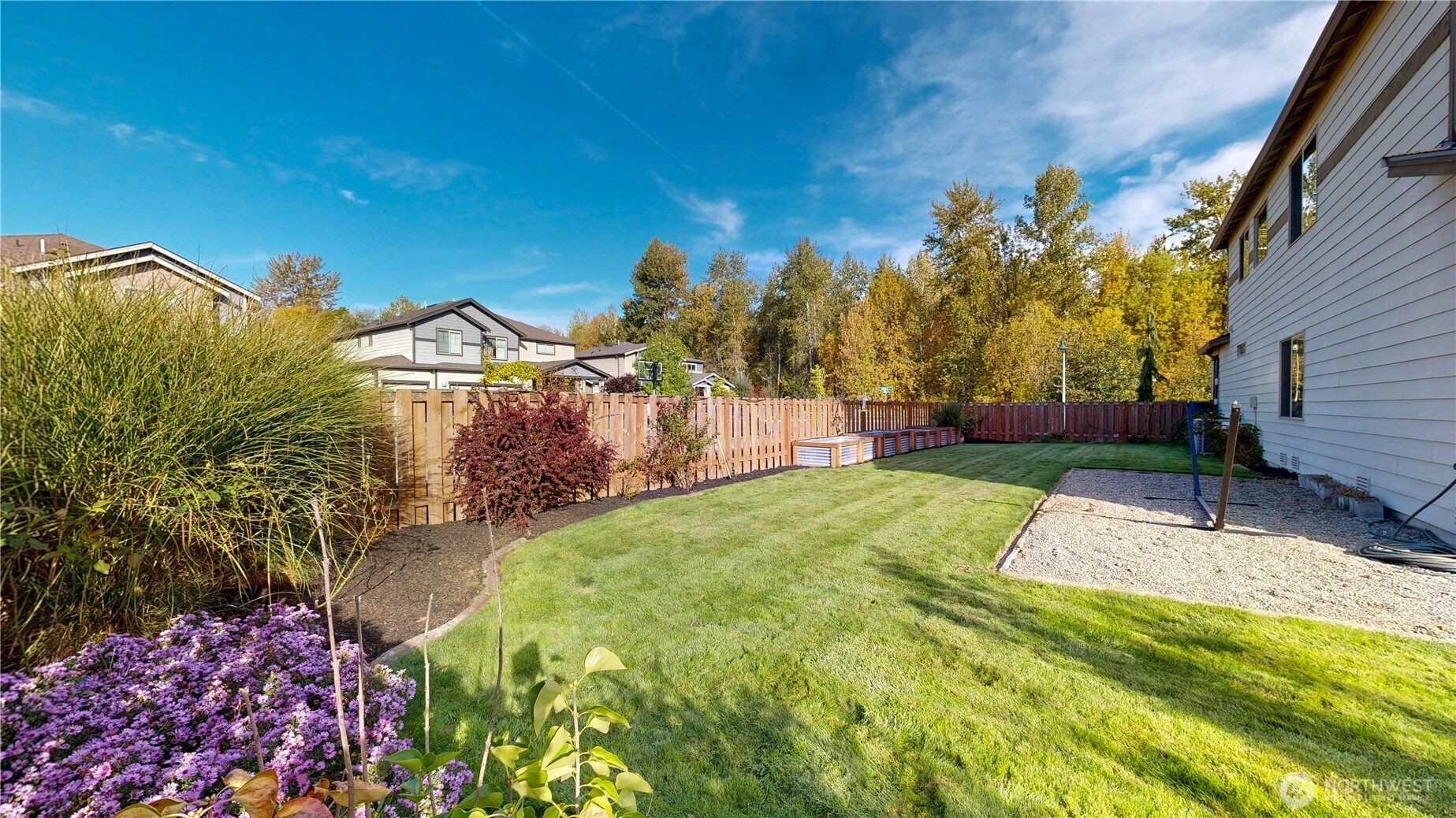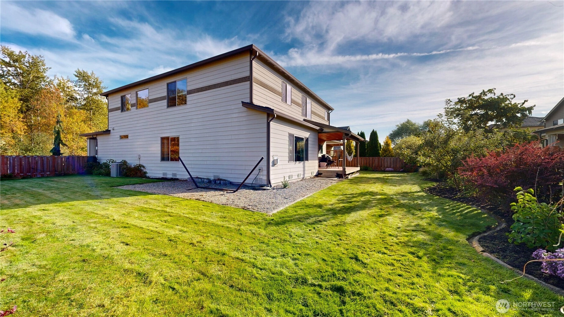 Life in Perkins Prairie, Buckley. This home is designed for space, comfort, and connection. The open-concept layout includes a gourmet kitchen with center island, quartz counters, ss appliances, & pantry, opening to the dining area & great room with cozy fireplace. Oversized bedrooms provide room for everyone. Double-door entry, LVP flooring through most of the home, and a bonus room with French doors add style and function. Upstairs, retreat to your private primary suite with sitting area, 5-piece bath, & walk-in closet. Enjoy a quiet setting across from wetlands, nearby Foothills Trail, and a covered deck. The fenced yard features raised garden beds, a 3-car garage with pass-through bay, storage, tasteful landscaping, & A/C. Welcome Home!