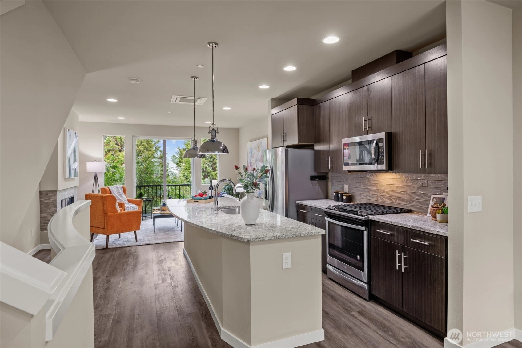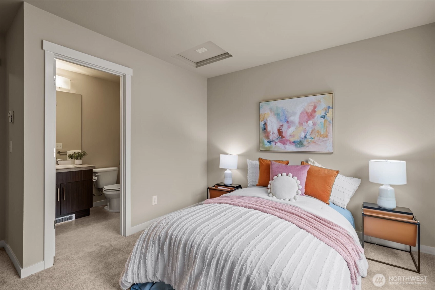 Welcome to The Parc at Creekside! This beautifully updated Urban Home features brand new paint, flooring, and window coverings throughout. The gourmet kitchen shines with granite slab counters, espresso cabinets, stainless steel appliances with 5-burner gas range, center island, and new soft-close drawers and closets. Relax by the tile-surround fireplace or retreat to bedrooms with their own private ensuite baths. Convenient upstairs laundry. Enjoy year-round comfort with climate-controlled heating and cooling. Added bonus: a 2-car garage with extra storage!