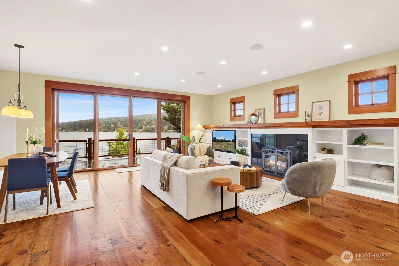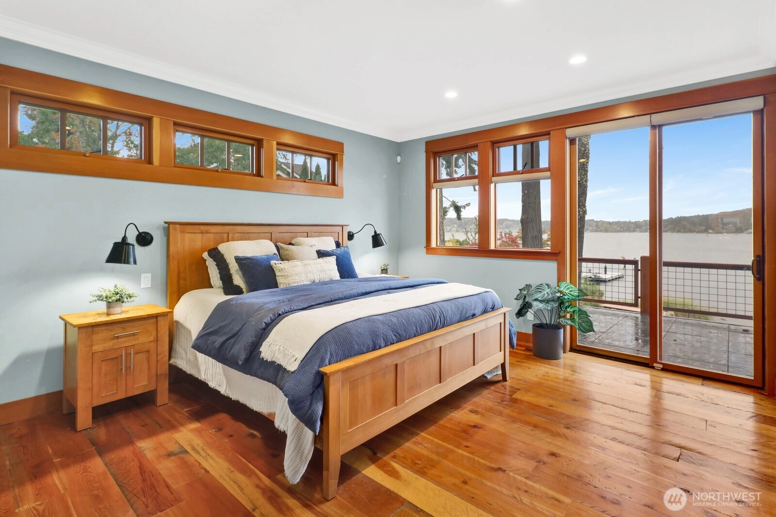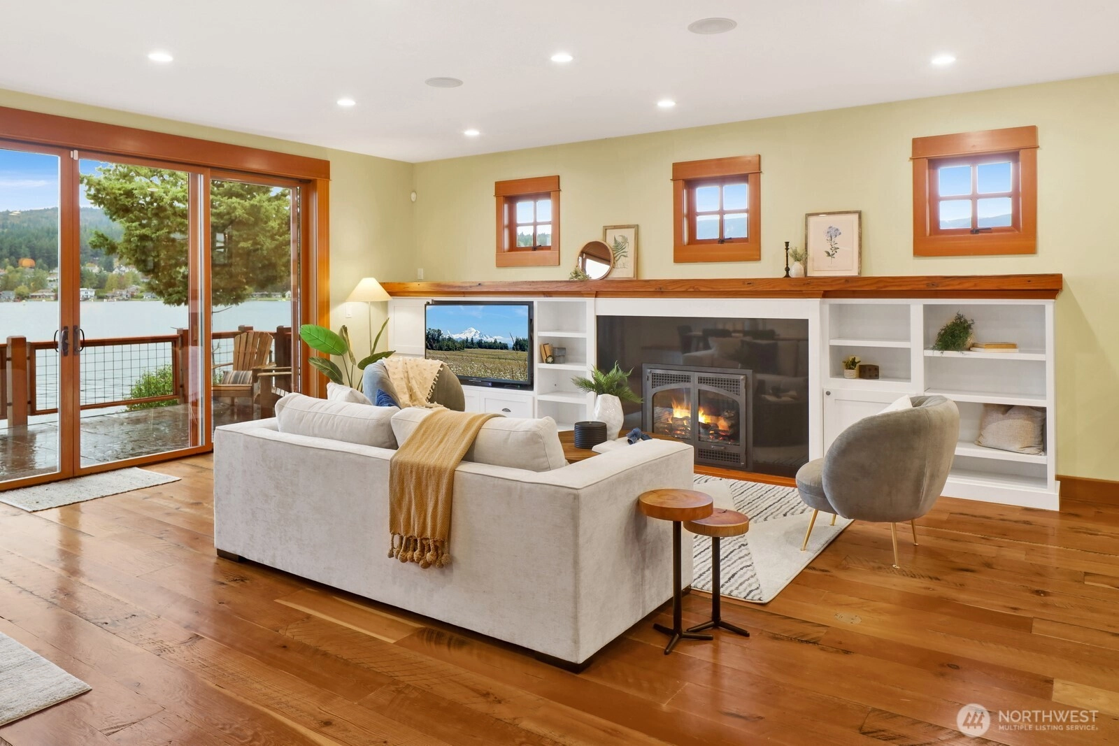Stunning Lake Whatcom Waterfront Home in Old Geneva. Located on a private non-through lane, this custom built 2010 home has quality craftsmanship & fine woodwork throughout. Vintage reclaimed wide-plank fir floors, cherry cabinetry, walnut built ins & custom fir windows & trim on every level. Thoughtfully designed Chefs kitchen & beautiful upper level family room/ double office/library. Lower level great room opens onto patio & lakeside yard w/ beach & new dock. New heat pump/ furnace/AC. Three car garage w/ charging station & vast storage above. Yard behind garage holds possible potential for another small home or DADU. Meticulously maintained and move in ready. A quiet, sunny, in-town oasis just a short walk to Geneva Elementary!