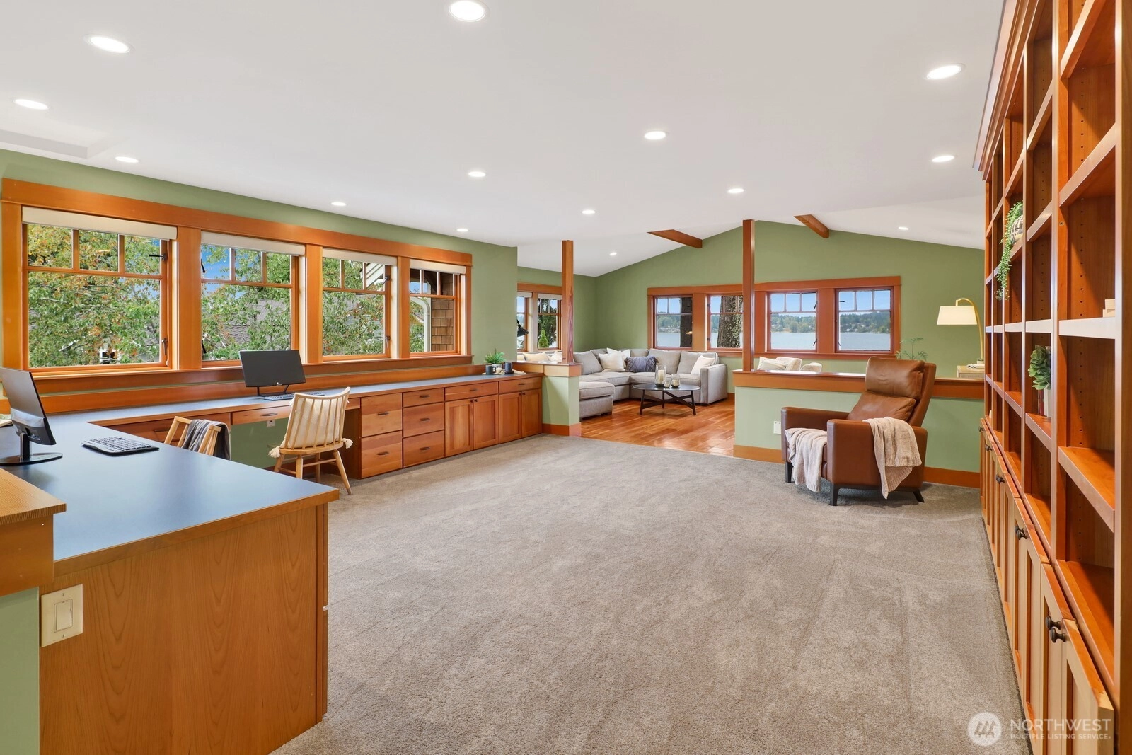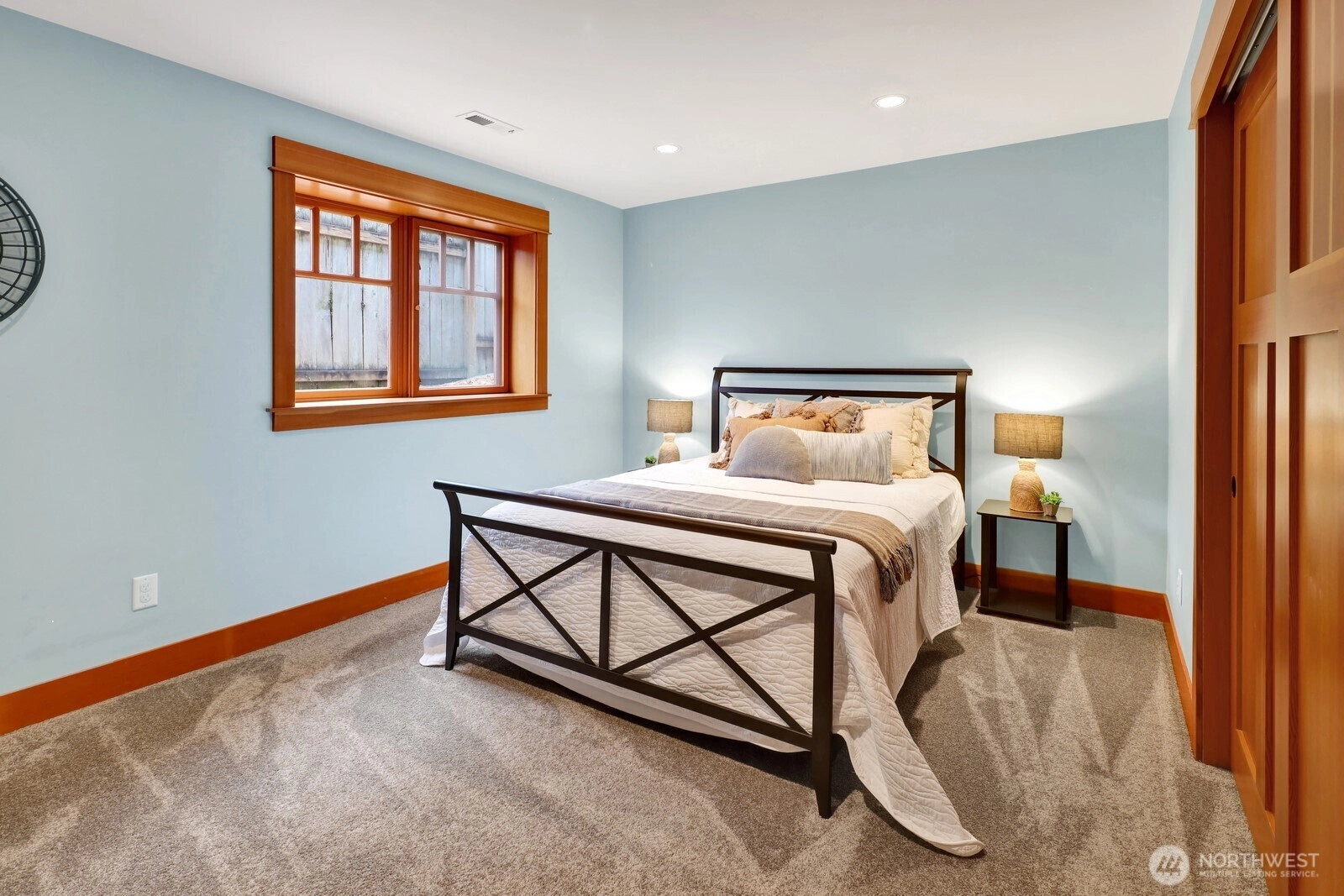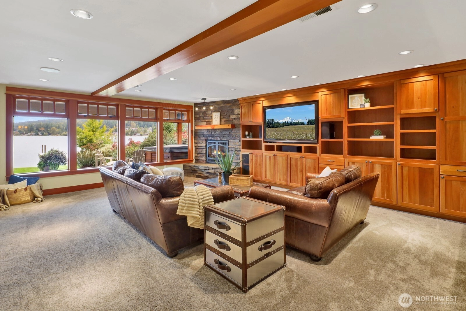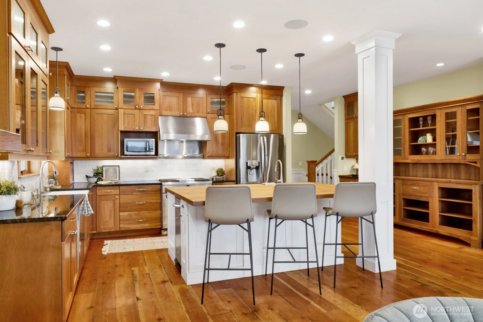 Stunning Lake Whatcom Waterfront Home in Old Geneva. Located on a private non-through lane, this custom built 2010 home has quality craftsmanship & fine woodwork throughout. Vintage reclaimed wide-plank fir floors, cherry cabinetry, walnut built ins & custom fir windows & trim on every level. Thoughtfully designed Chefs kitchen & beautiful upper level family room/ double office/library. Lower level great room opens onto patio & lakeside yard w/ beach & new dock. New heat pump/ furnace/AC. Three car garage w/ charging station & vast storage above. Yard behind garage holds possible potential for another small home or DADU. Meticulously maintained and move in ready. A quiet, sunny, in-town oasis just a short walk to Geneva Elementary!