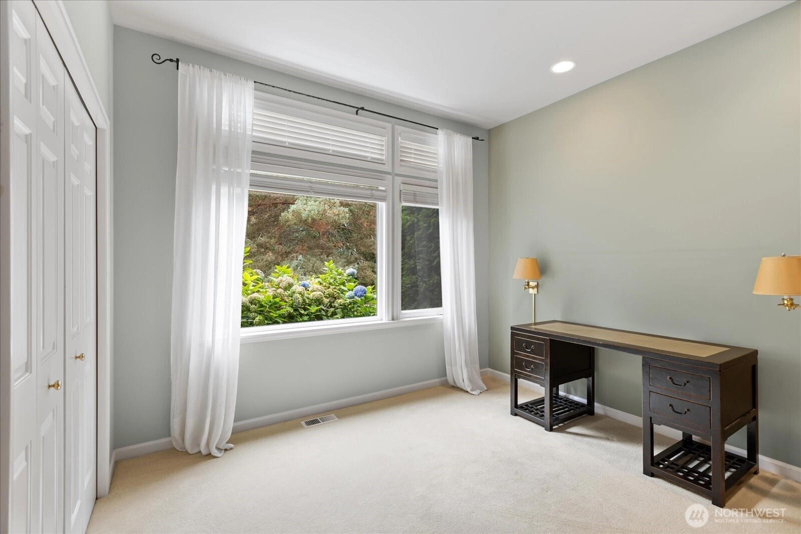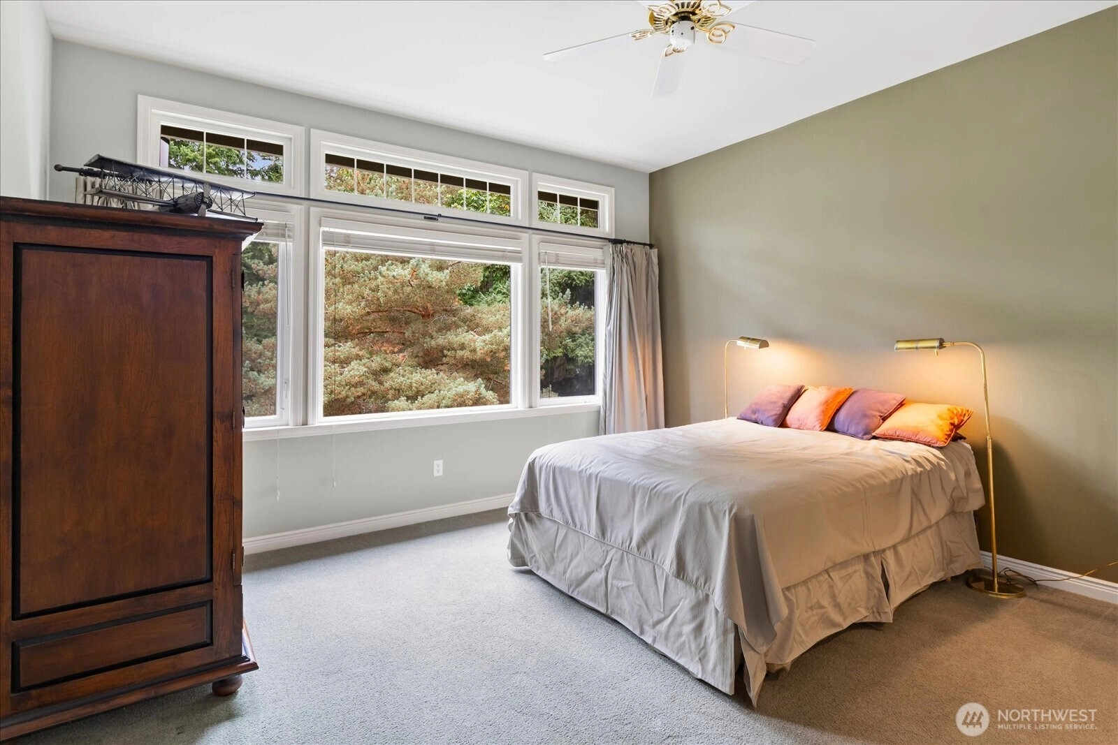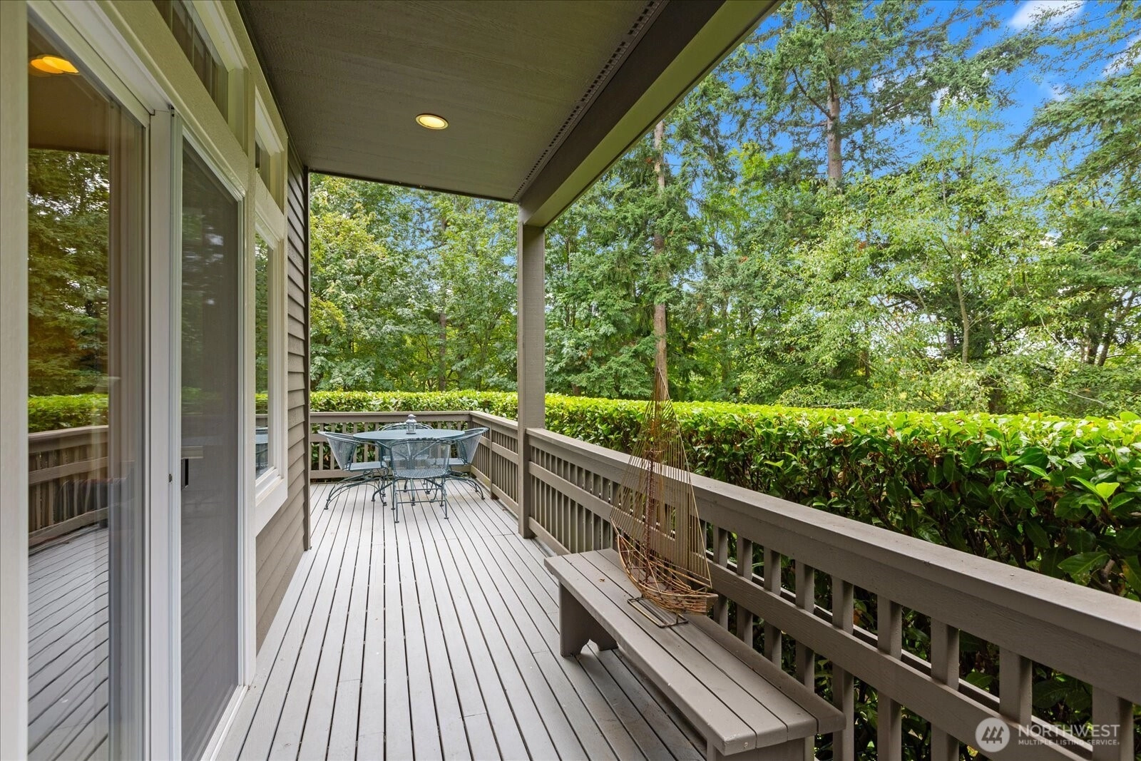 First time on market for this well-maintained single-family residence in the desirable Harbour Pointe community of Mukilteo. Buchan-built, this home offers convenient main-level living with the primary bedroom, ensuite bathroom, half bath, eat-in kitchen with gas cooktop, dining room, living room with gas fireplace, view deck, laundry, two-car garage and entry all on the first level. Downstairs is a family room, second gas fireplace and sliders to more deck and two flagstone patios. Second bedroom with full bath and slider door feels like another primary bedroom. Go through the glass-paned French doors to true third bedroom currently furnished as an office. Central A/C, gas forced-air heat. Massive storage above garage and more downstairs.