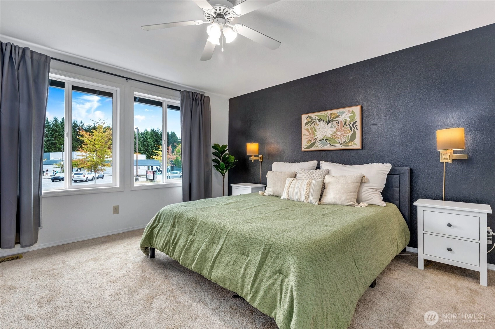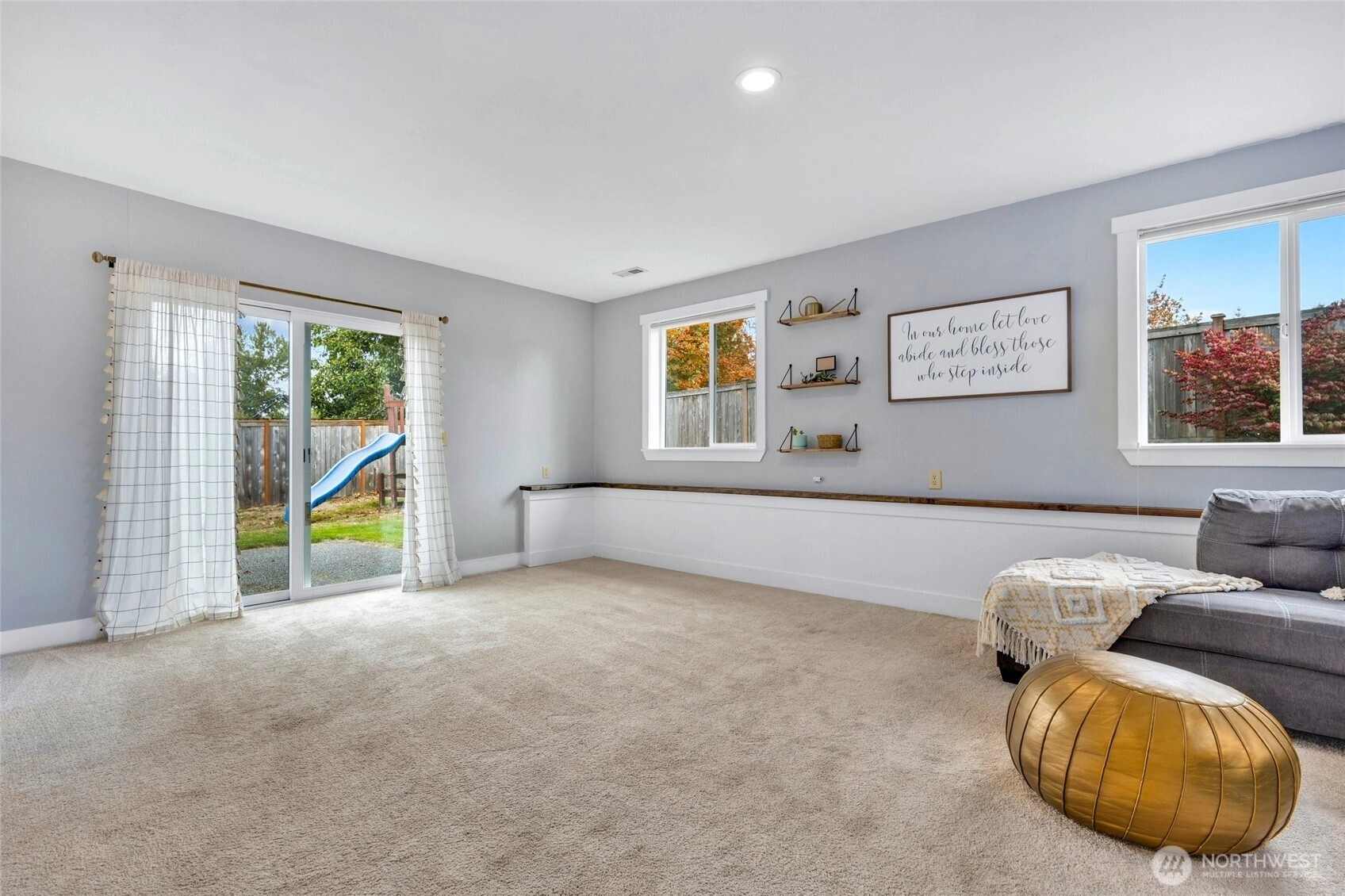Welcoming tri-level w/ 3 car garage in The Falls! Features hardwood flooring on the main floor from entry to sunken living room/dining room/kitchen area. Gorgeous updated kitchen w/ quartz countertops & island that has access to the large deck & versatile backyard. Natural light fills this home making it inviting & warm & its layout allows its square footage to live large. Primary suite w/ 5pc primary bath w/ walk-in closet. Generously sized lot w/ backyard fencing, gates & storage shed. Plenty of parking spaces in the driveway. Easy access to Snohomish schools, Willis Tucker Park & commuting highways. Situated on a quiet & friendly cul-de-sac in an amazing Snohomish location! A Must See that is move in ready & ready to be loved!