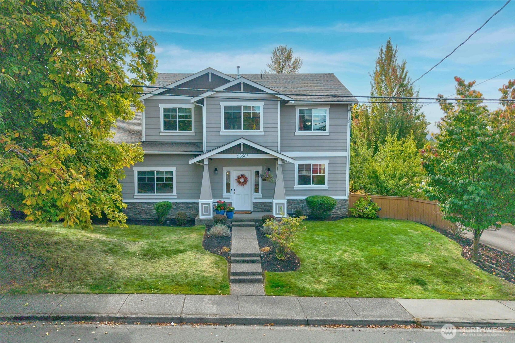 Just moments from Main Street, this 2015 home blends comfort and charm with thoughtful upgrades. Hardwood floors throughout the main floor, complemented by dark cherry cabinetry and stainless-steel appliances. Enjoy flexible living with a main floor office/flex space, bonus loft, and tall ceilings that enhance the sense of openness. Great remodel on the hallway bathroom & the upstairs laundry room features newer W/D that stay. Step out to a private sitting area and spacious yard with upgraded landscaping—perfect for relaxing or entertaining. The alley-accessed three-car garage keeps the curb appeal clean. High walkability, stroll or roll to parks, restaurants, the library, and even the beach. A home that lives beautifully, inside and out.