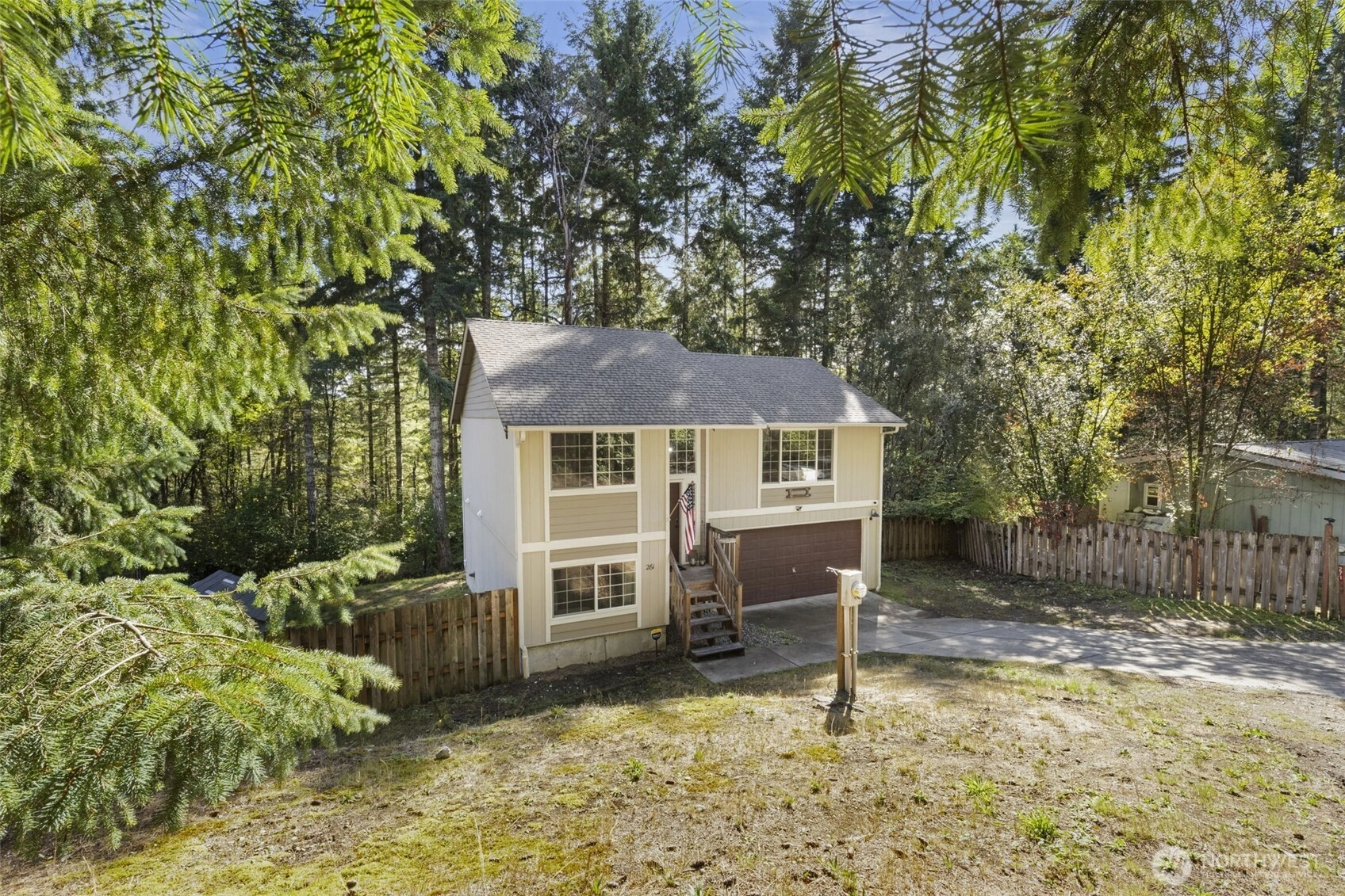 Lovely 3-bedroom home in Beards Cove! This charming split-level with a fully fenced yard offers privacy and plenty of space for gardening, plus 2-car garage with extra storage. Upper level features spacious living area, dining room, large kitchen with breakfast bar, and beautiful bamboo flooring. Plus the primary bedroom, guest bedroom and full bathroom. Lower level has a spacious family room, guest bedroom, 3/4 bath, and utility room. Beards cove Community includes a private beach, boat launch, a refreshing outdoor pool perfect for sunny days, a playground, basketball court, walking trail, picnic area & open field looking out to Hood Canal. Don't miss your chance to call this house your home!