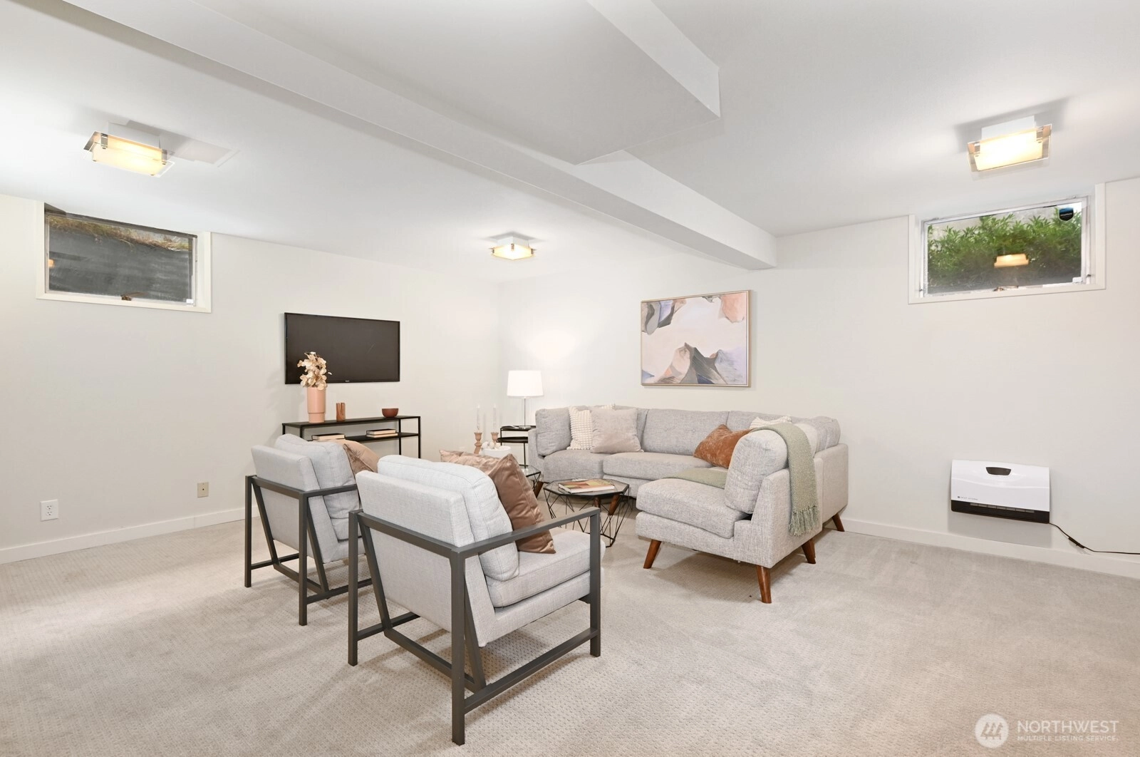 Beautiful mid-century modern home on a quiet street directly across from Soundview Park and Playfield. Park project is scheduled to be finished shortly. This ideal 2-floor layout lives like a single-family home! On the main floor, you’ll find a bright, spacious living room with fireplace, updated kitchen with stainless steel appliances and quartz counters, induction stove, plus 2 sizable bedrooms and full bathroom. Head downstairs to the oversized rec-room with laundry, 2nd bathroom and garage. Enjoy pristine oak hardwood floors, all new doors and lighting. Convenient and close to all the area has to offer, including Golden Gardens, Carkeek Park, Met Market, restaurants, great schools, plus easy access to transit, SLU, and downtown.