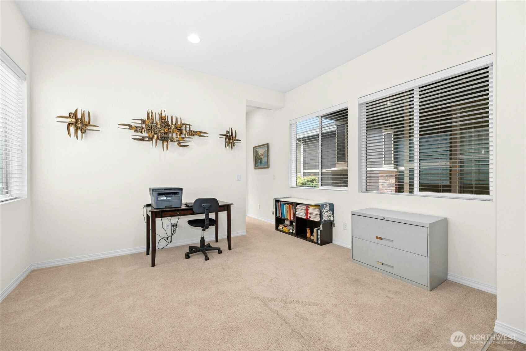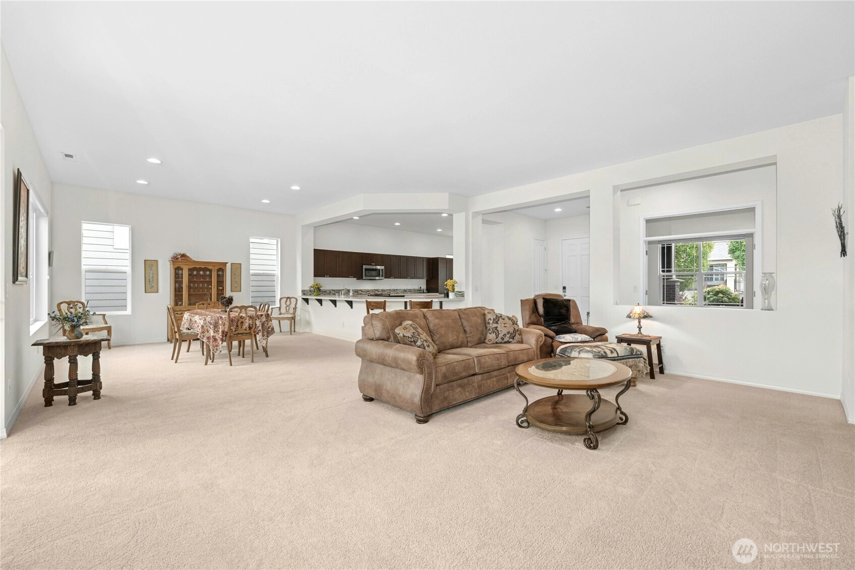 Welcome to the Messina plan residence at Whidbey Passage in Jubilee! Beautiful open plan welcomes with great-room concept offering a huge breakfast bar and spacious kitchen with tons of counter space. 10' high ceilings throughout this light and bright home with 2 bedrooms plus office through French doors. The great-room boasts a gas fireplace, formal dining and a wall of windows with greenbelt view. Enjoy the covered back patio and professionally landscaped iron-rod fenced-in backyard with irrigation. Community amenities include golf, tennis, Jubilee Lodge with indoor pool, hot-tub, fitness and activity center. Close-by Puget Sound private beach access and parks via nearby trails. Peaceful, inviting, proximity to I-5, shops and more!
