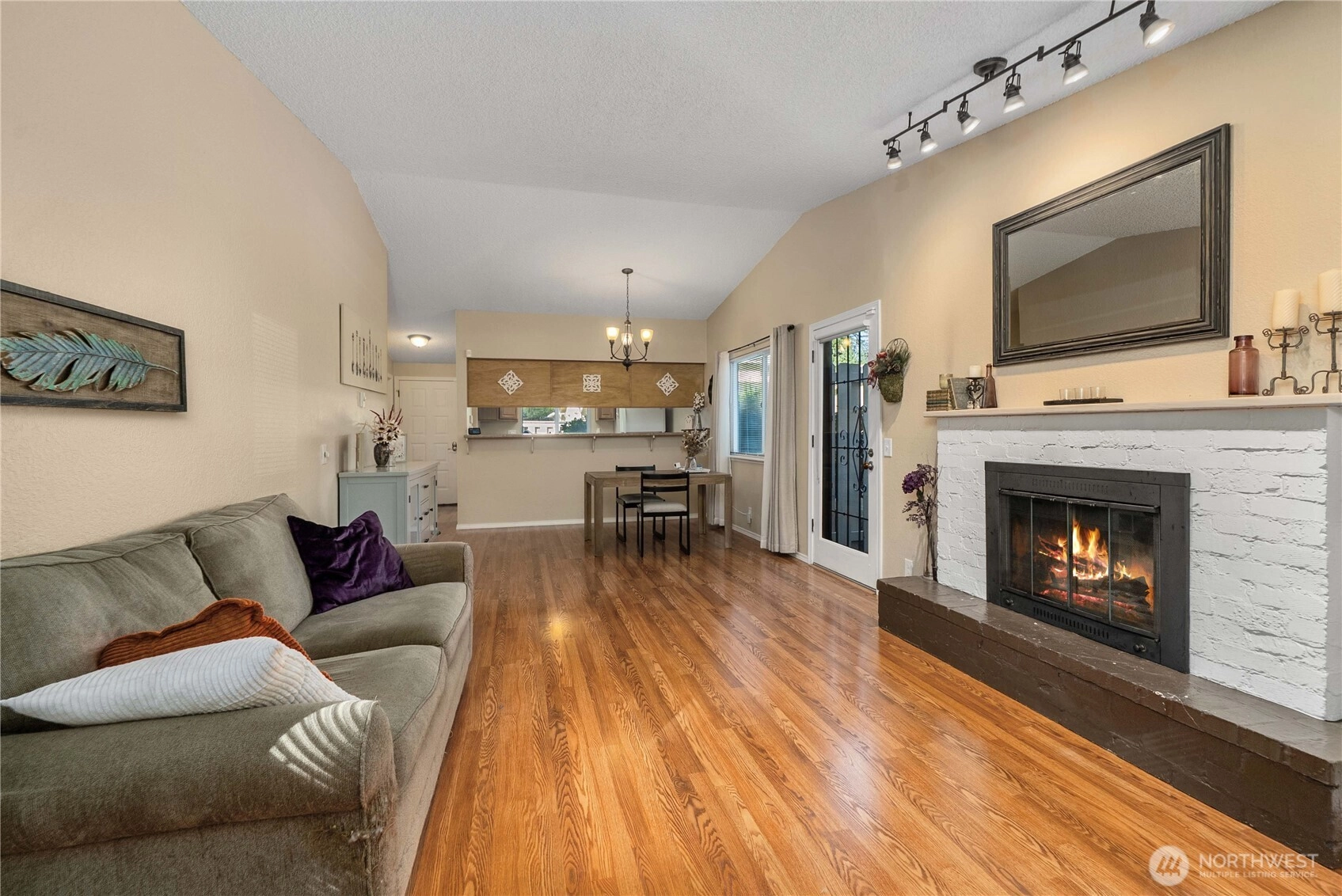 Meticulously maintained 2 bd/1.75 ba townhouse-style condo in beautiful Kent Shires. 1-level open-concept floor plan w/ vaulted ceilings and lots of natural lighting; 998 sqft lives large and bright. This cul-de-sac end-unit offers rare privacy! Back door patio opens to large grassy common area. Attached 1-car garage includes covered parking and storage space. Strong HOA maintains lawns, common areas, and building exterior. Sewer & water included in monthly dues. FHA/VA approved, pets OK (subj to restrc). Across the street from YMCA, close to schools, parks, transit, and Kent Station. Move-in ready, low maintenance, unbeatable value! Pre-inspection available.