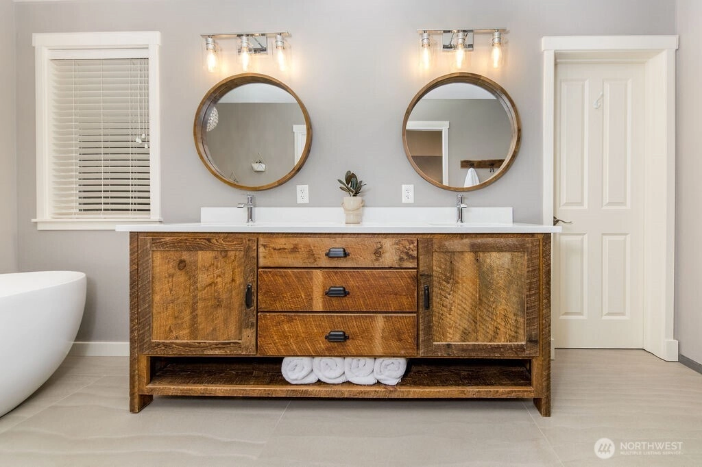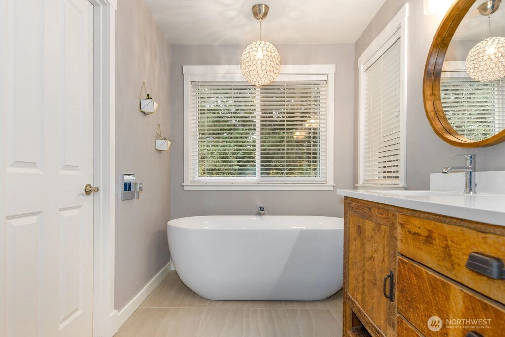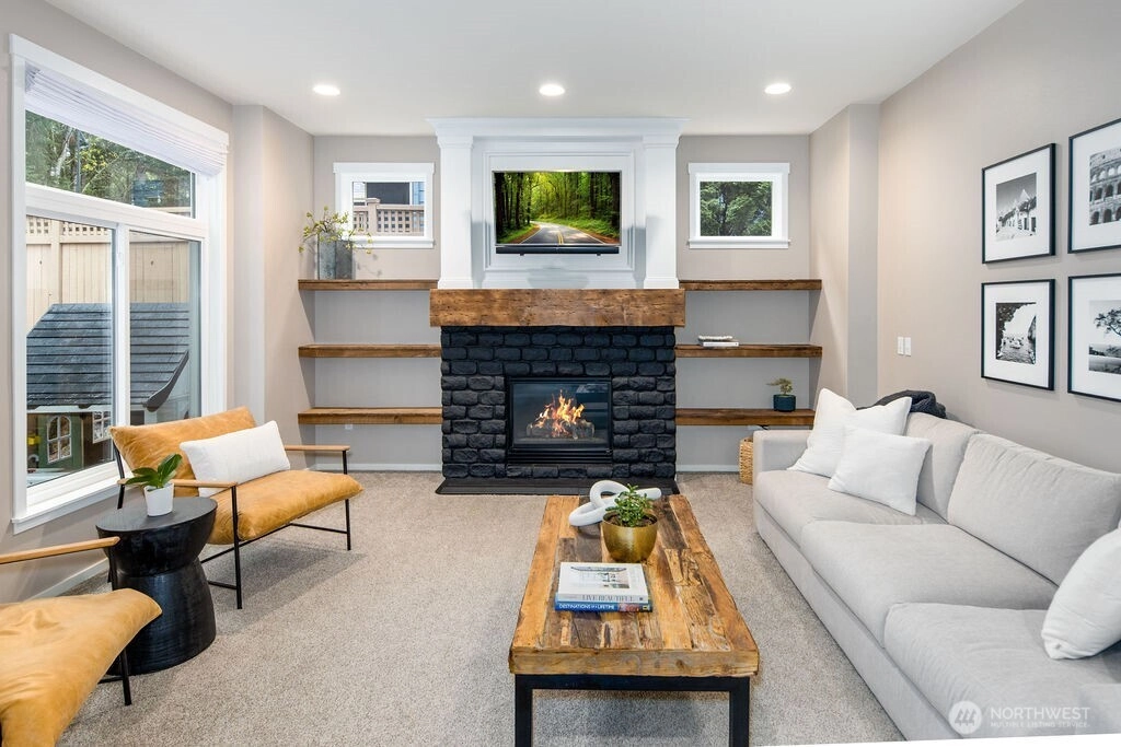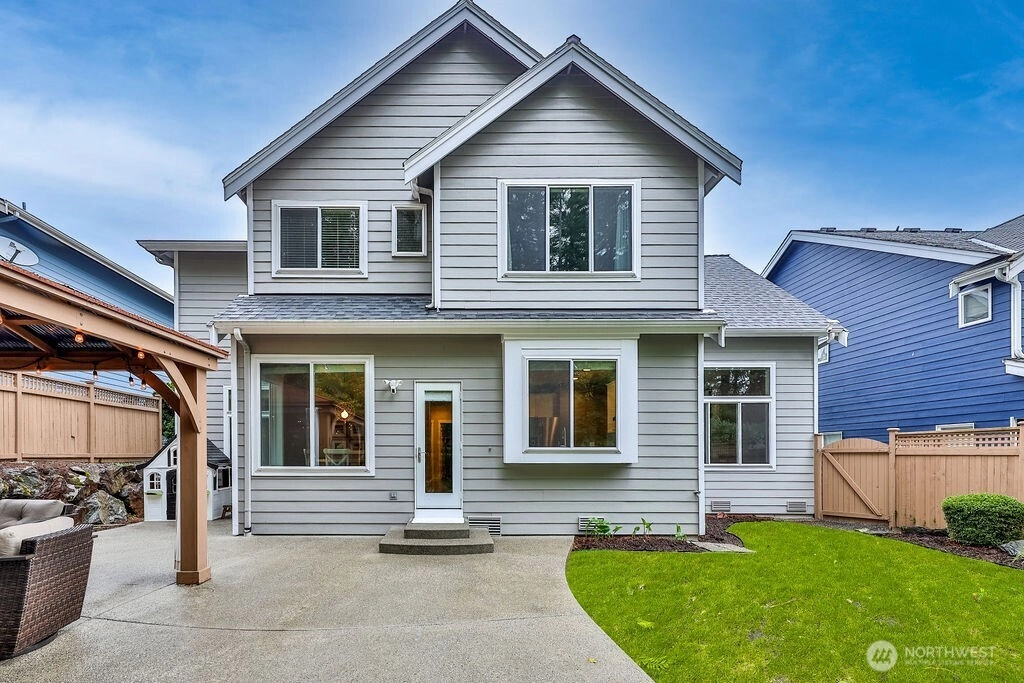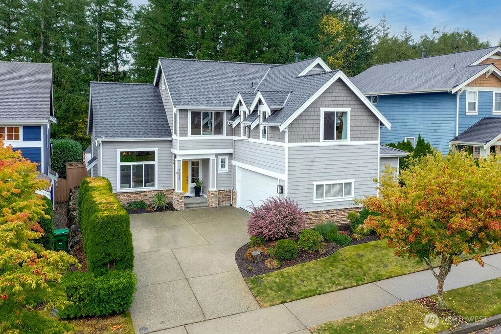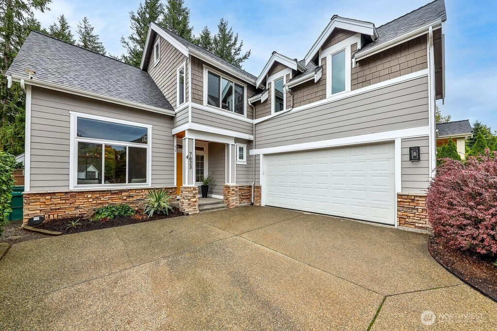 Discover this exquisite Burnstead residence, ideally positioned on a quiet street with a lush greenbelt backdrop and a beautiful park directly across the street. Soaring vaulted ceilings and expansive windows bathe the interiors in natural light, creating a seamless connection to the outdoors. The main floor offers a versatile bedroom/office, while the elegant primary suite features a spa-inspired bath with quartz vanities, freestanding tub, and oversized closet. A spacious bonus room and two additional bedrooms complete the upper level. With a 2022 roof, A/C, two fireplaces, generator wiring, and a private park-like backyard with oversized patio, this home is both luxurious and inviting—just minutes from trails and I-90.