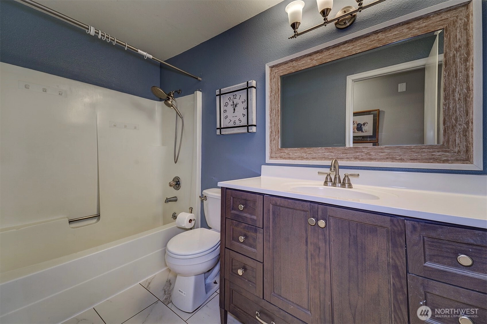 Edgewater Estates! 3 bed, 3 bath +BONUS room, fenced yard, garden beds, shed, large deck with ensuite entrance, enjoy peekaboo views of the Hood Canal and Olympic Mountains. Home has AC, generator hookup in the 2-car garage, and upstairs has new LVP flooring. Downstairs has Rec room with fireplace, separate laundry room and garage entry. Community perks include private beach access, clubhouse, recreation area and is conveniently located near HWY 3, Naval Base, hospital, schools, move-in ready, this home has it all!