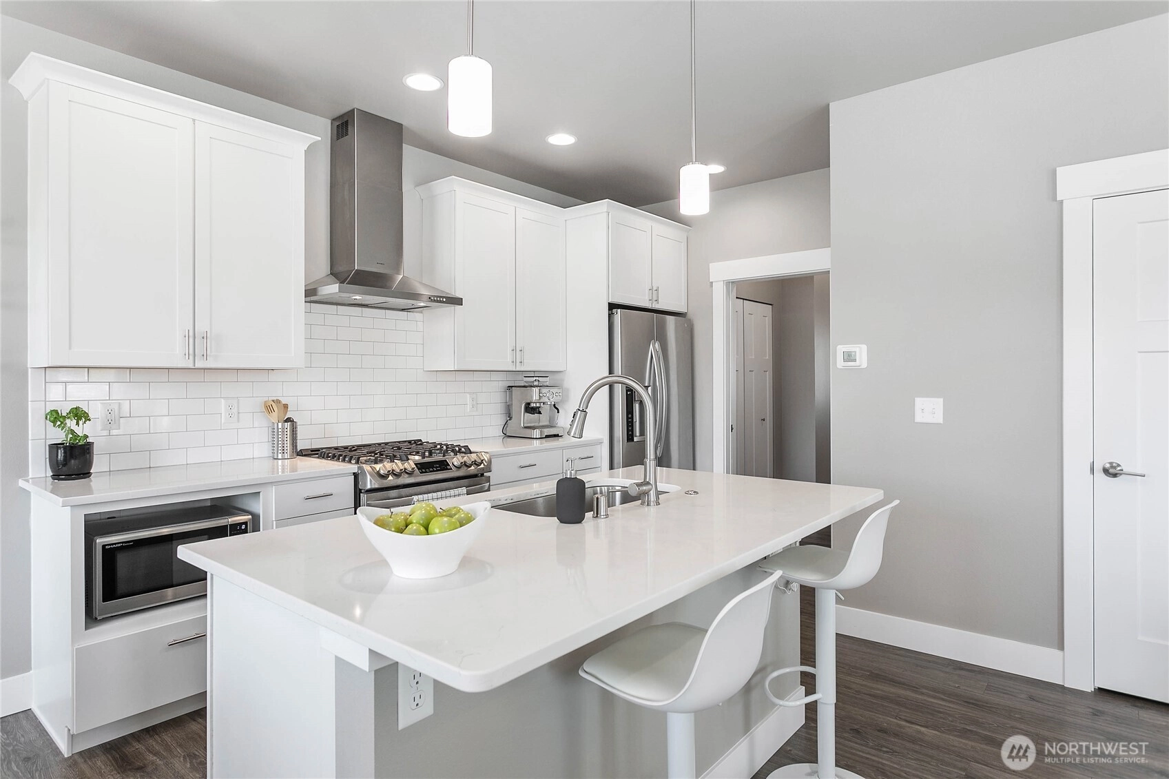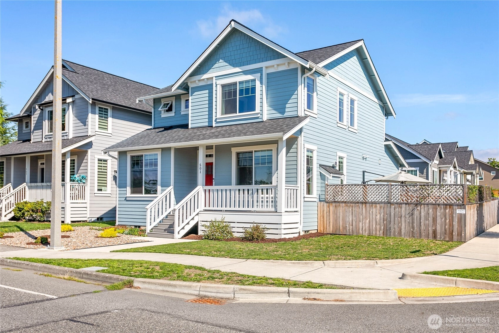 Charming home in a Growing Bellingham Neighborhood! Located in a vibrant and up-and-coming neighborhood, this beautifully maintained 3-bedroom, 2.25-bath home offers the perfect blend of modern design & everyday comfort—just minutes from Bellingham’s premier shopping & dining destinations. Step inside to a bright, open floor plan filled with natural light. Expansive windows & open floor plan create an airy, inviting atmosphere, while sleek finishes, including quartz countertops, add a touch of sophistication throughout. The prominent corner lot features a fully fenced yard, ideal for entertaining, pets, or simply relaxing outdoors. With meticulous upkeep and the fresh feel of newer construction, this home delivers both style & substance.