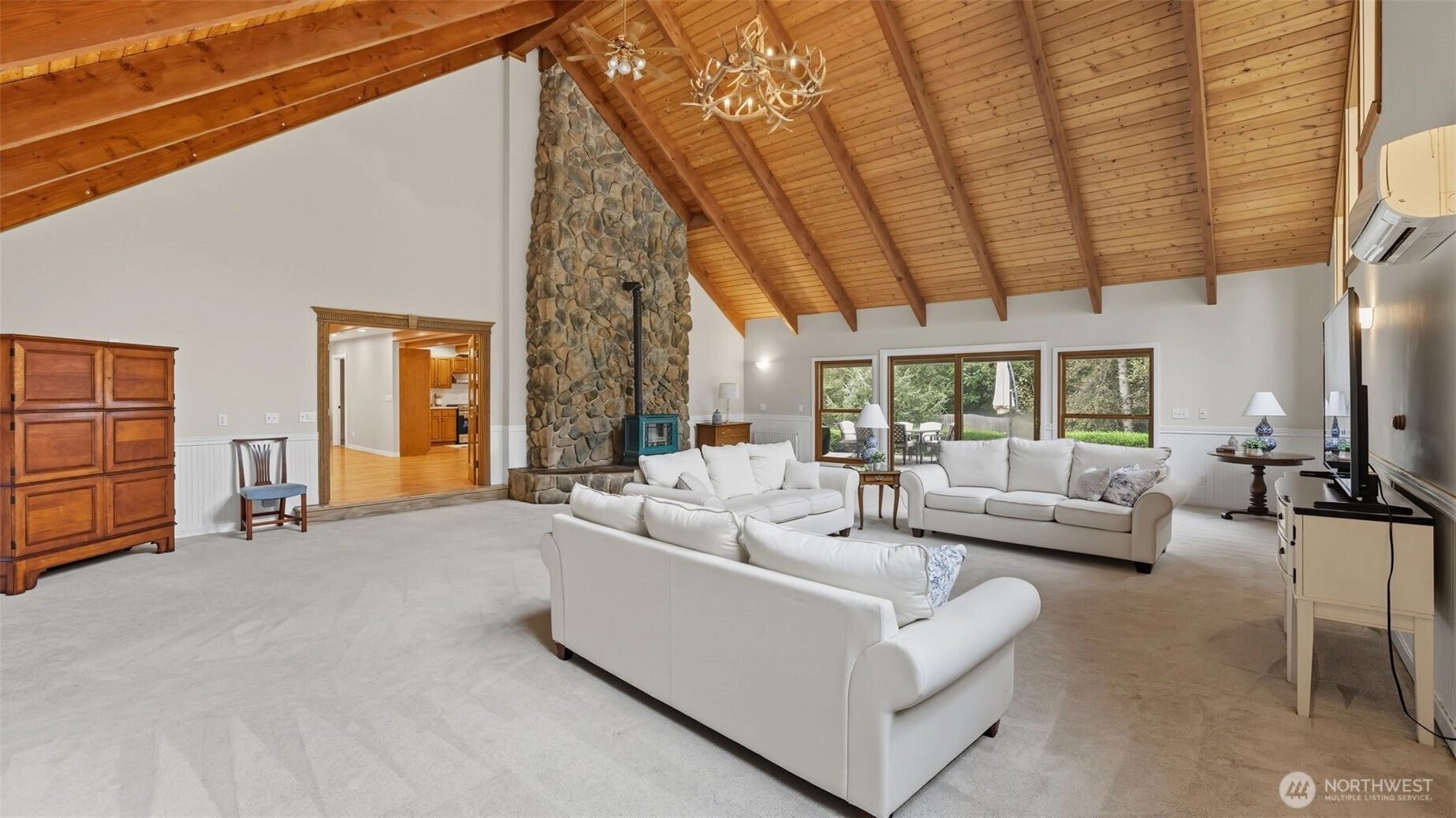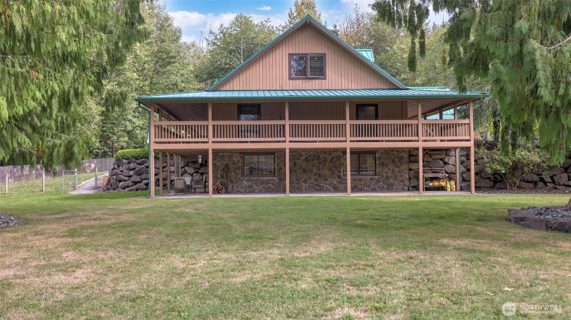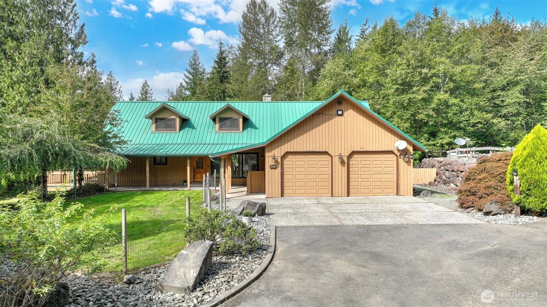 Experience Northwest living at its best in this private custom mountain lodge style home on 1.43 acres. Gather in the great room under soaring cathedral ceilings by the river rock fireplace, or retreat to the main floor primary suite. A finished lower level offers space for play, work, guests, this attached ADU can provide additional income or a perfect multigenerational living space. Enjoy evenings on the wrap-around porch, a garden pond, sports court & chicken coop. Room for every lifestyle—with space to grow, relax & create memories.