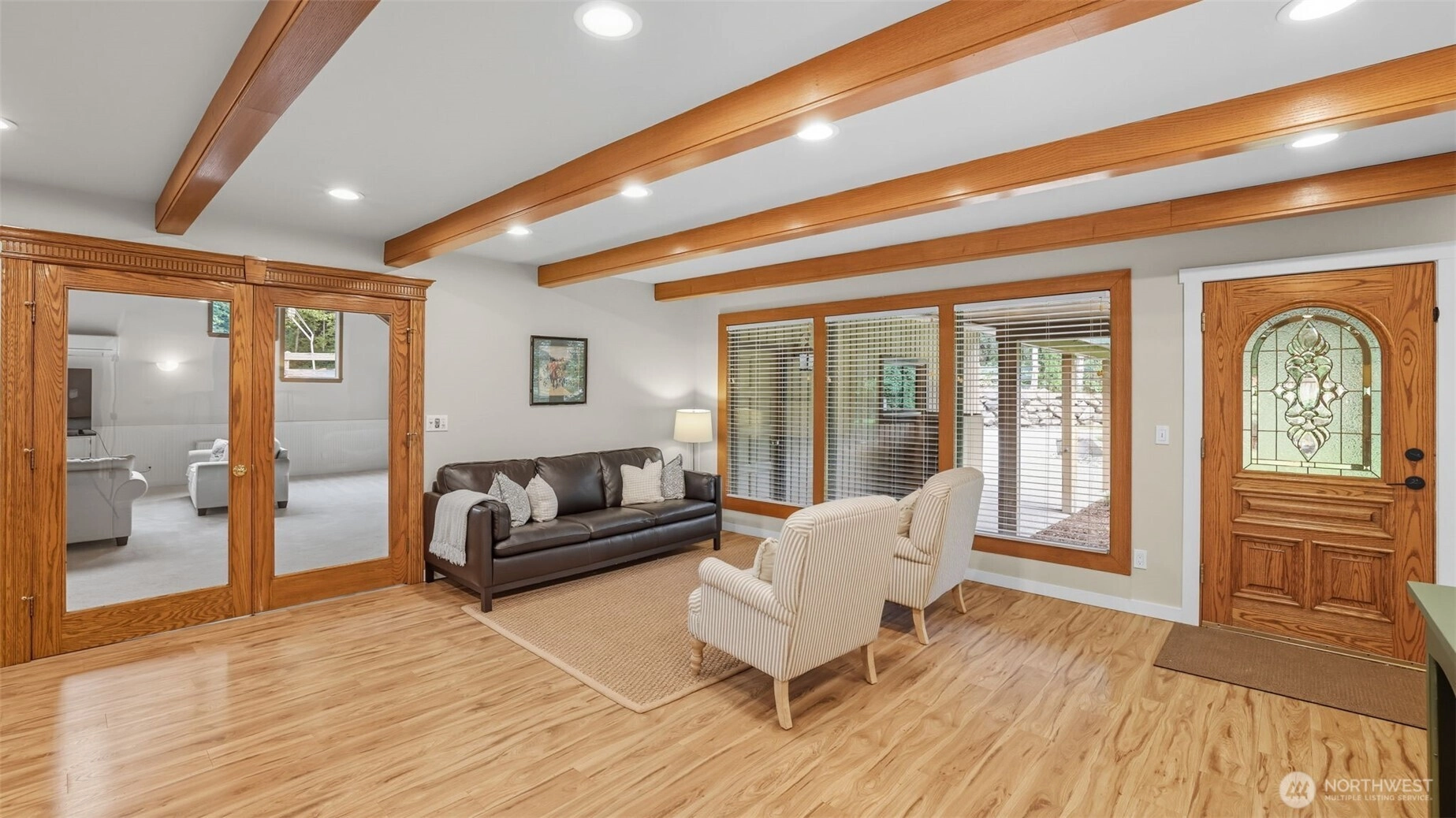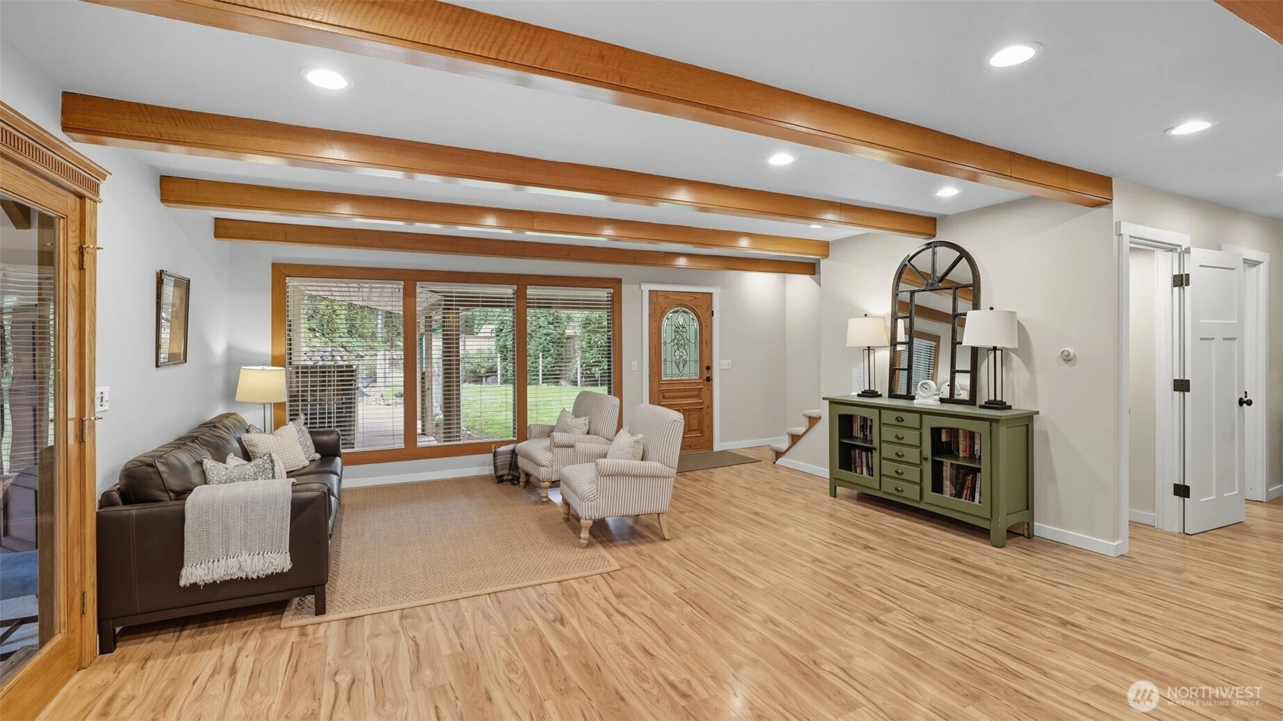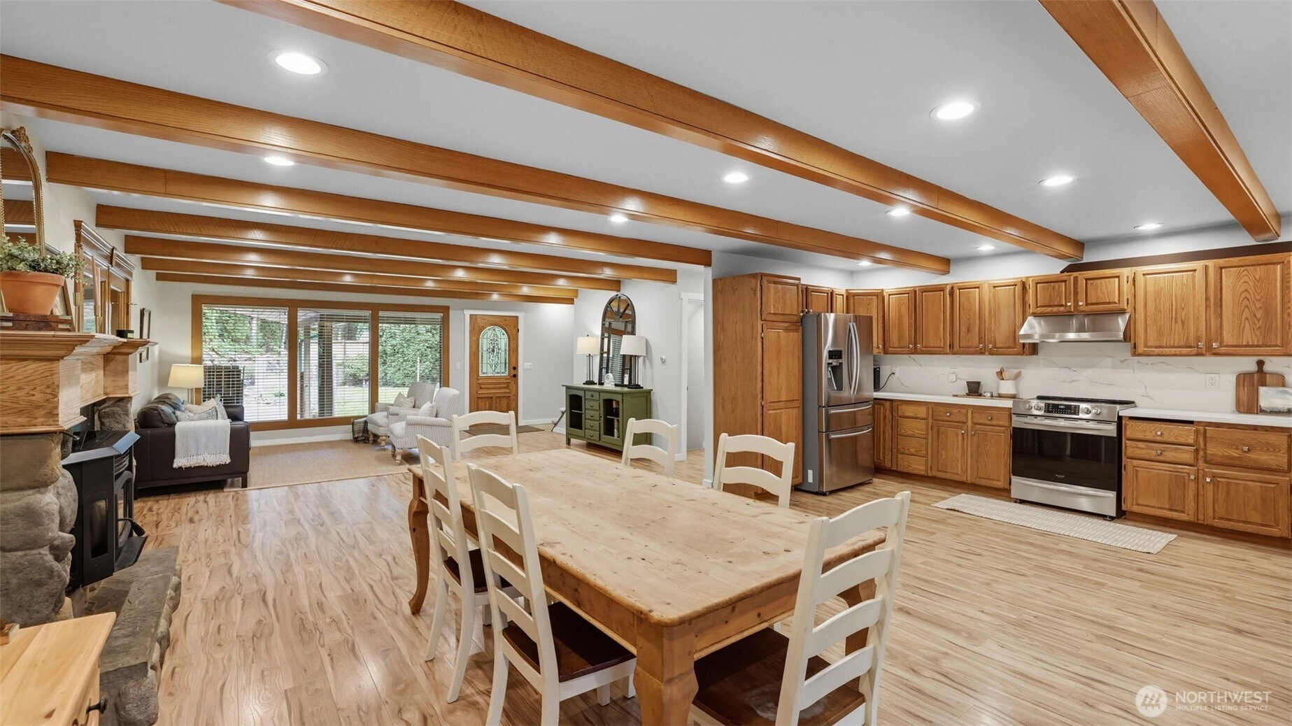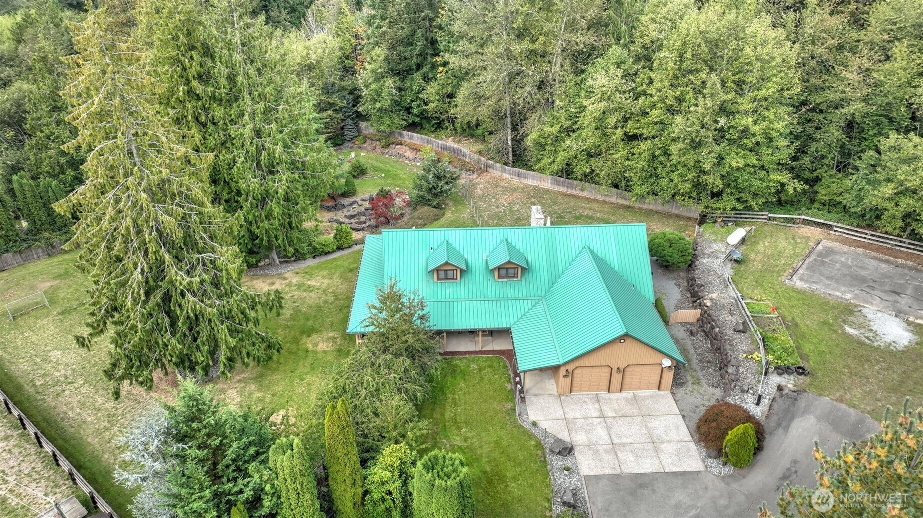 Experience Northwest living at its best in this private custom mountain lodge style home on 1.43 acres. Gather in the great room under soaring cathedral ceilings by the river rock fireplace, or retreat to the main floor primary suite. A finished lower level offers space for play, work, guests, this attached ADU can provide additional income or a perfect multigenerational living space. Enjoy evenings on the wrap-around porch, a garden pond, sports court & chicken coop. Room for every lifestyle—with space to grow, relax & create memories.