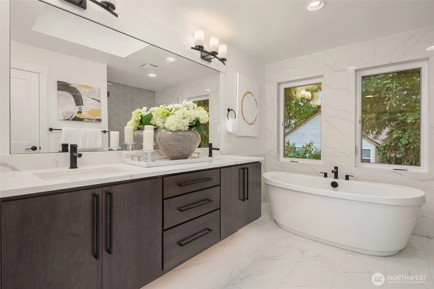 BRAND NEW CONSTRUCTION! Luxurious dream home. Grand Entrance. 4 bedrooms, 2.75 bathes, Jr. suite main floor, dining room. patio/w fireplace. Cafe kitchen appliances, beautiful quartz countertops throughout home. Open floor plan. Designer light fixtures and wood wrap windows throughout home. Engineered hardwood floors; main floor. Great room w/fireplace; Fabricated metal Railing staircase. Linear Natural Gas Fireplace with Exterior stone in covered patio. Professional landscaping; fenced & irrigated. 2 car garage. No HOA dues. Walk to schools, shopping, restaurants, Starbucks, etc. Highly sought after Lake Washington School Dist. 5 minutes access to I 405, downtown Kirkland amenities. Look no further because you’ll love this amazing home.
