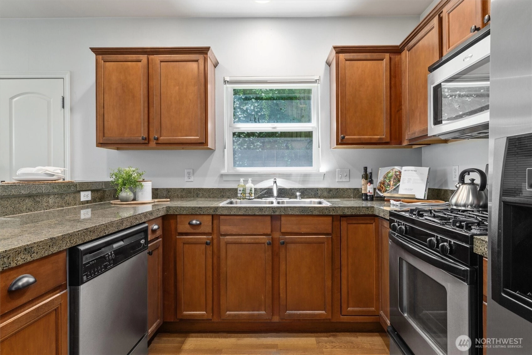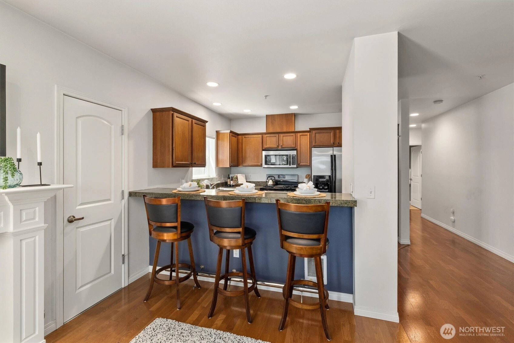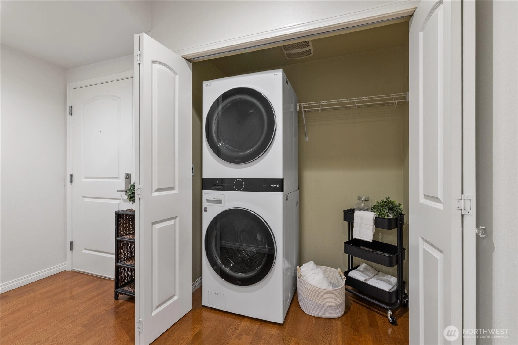 Welcome to Avalon Place! A boutique 18-unit community just blocks from the Alaska Junction. This spacious 2 bedroom, 2 bathroom home features hdwd floors throughout, sun-filled spaces & primary suite w/walk-in closet and a luxurious ensuite bath. The generously sized 2nd bedroom offers an oversized closet- perfect for guests, WFH office, or both. Seamless indoor/outdoor living awaits with an exceptional ~410 sq ft private deck, complete with peek-a-boo views of the city and Mt. Rainier, ideal for relaxing, entertaining, or dining al fresco! Enjoy controlled entry and garage, 2 deeded side-by-side parking stalls, & secure storage. Prime location near TJ's, Whole Foods, transit, DT Seattle & Alki. Experience the best of West Seattle living!