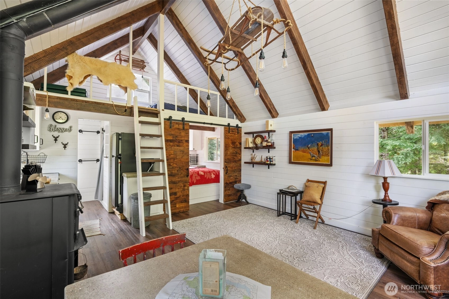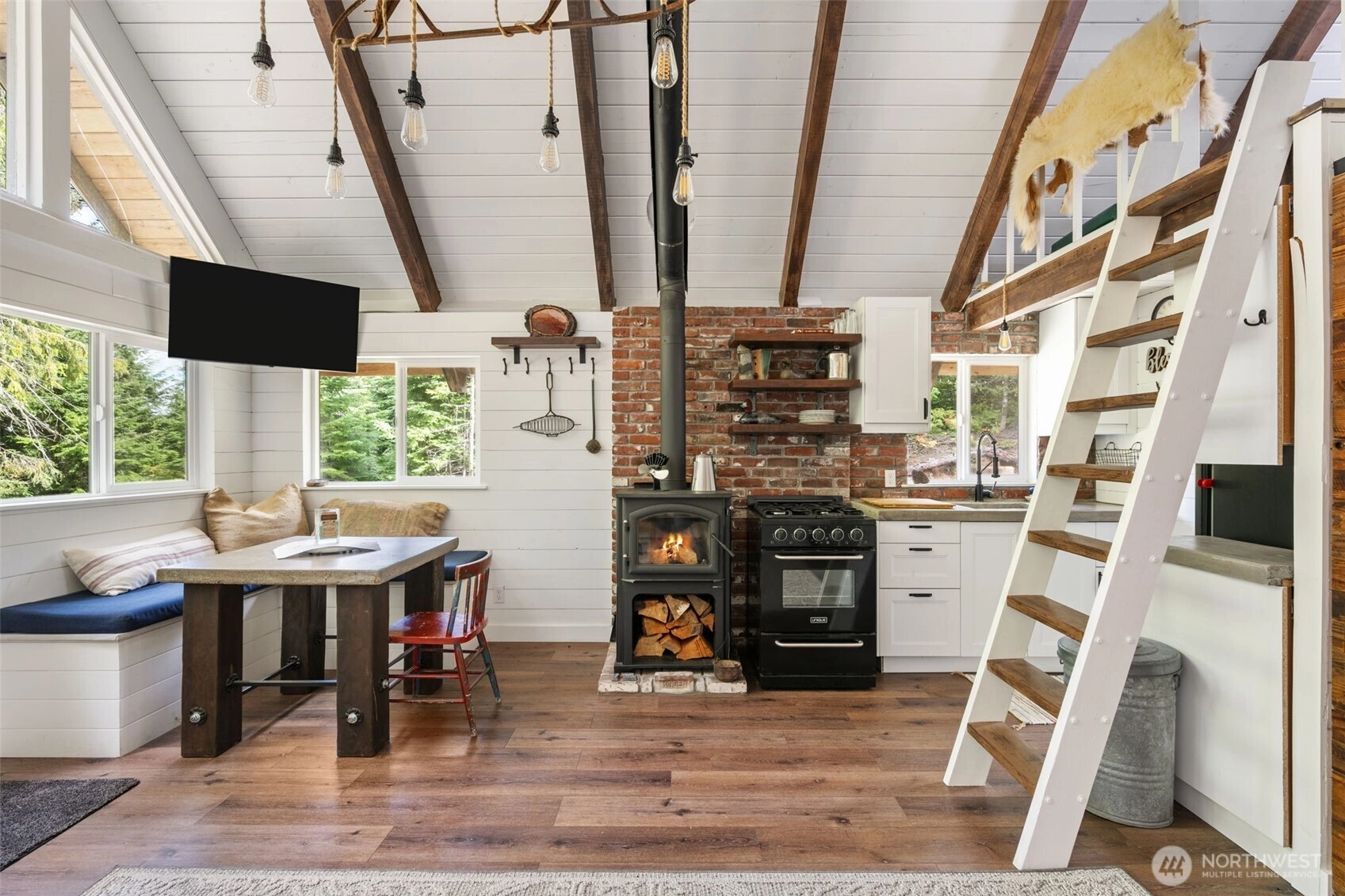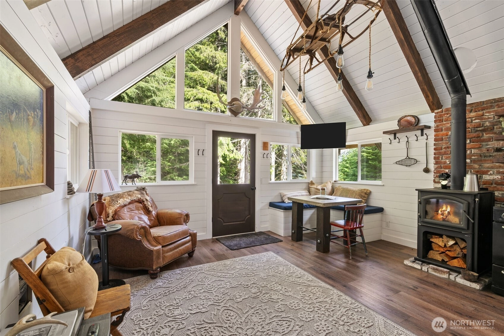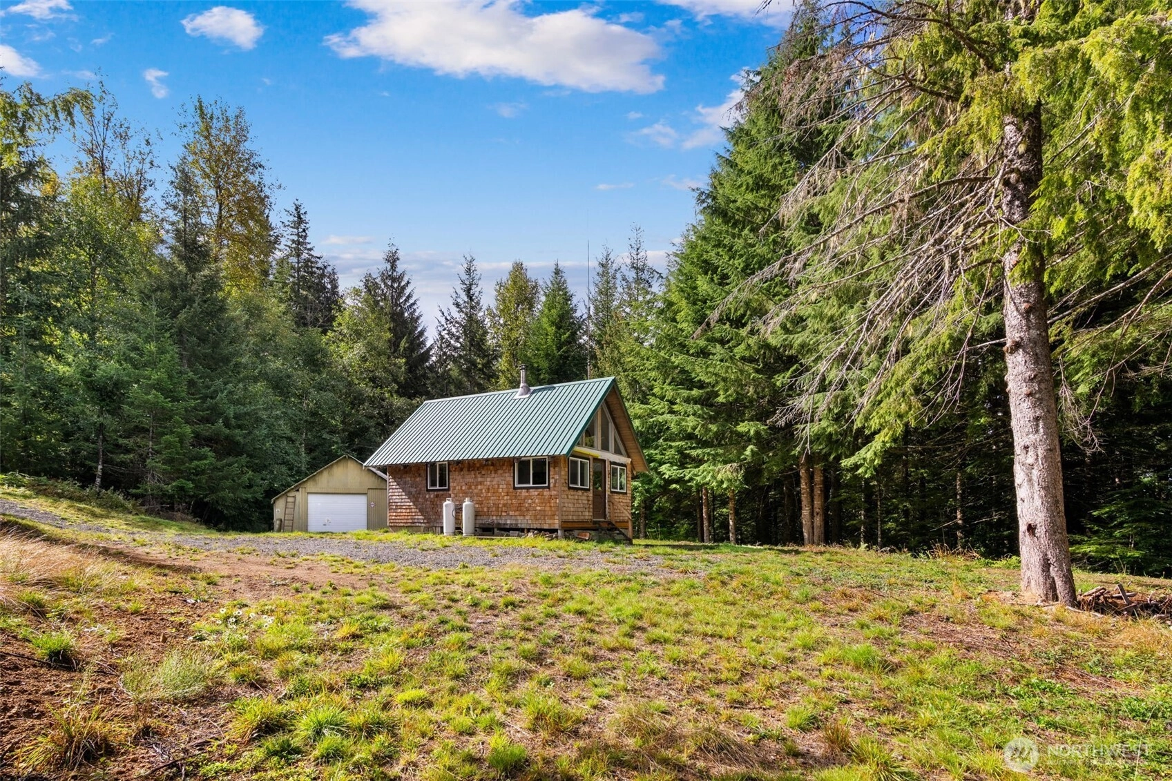 Nestled in the foothills of Mt. St. Helens, this cozy 1-bed, 1-bath cabin with loft has been beautifully renovated and crafted with detail throughout. Offering just under 500 sq. ft. of off-grid comfort, the vaulted ceiling, wood stove, and propane appliances make it feel both rustic and refined. Outside you’ll find a shop, fire pit, and even two secret underground bunkers. Set on 5 private acres of merchantable timber with unmatched seclusion, this turnkey retreat connects you directly to snowmobile trails, hiking, fishing, hunting, reservoirs, Ape Caves, and the Lewis River Recreation Area.