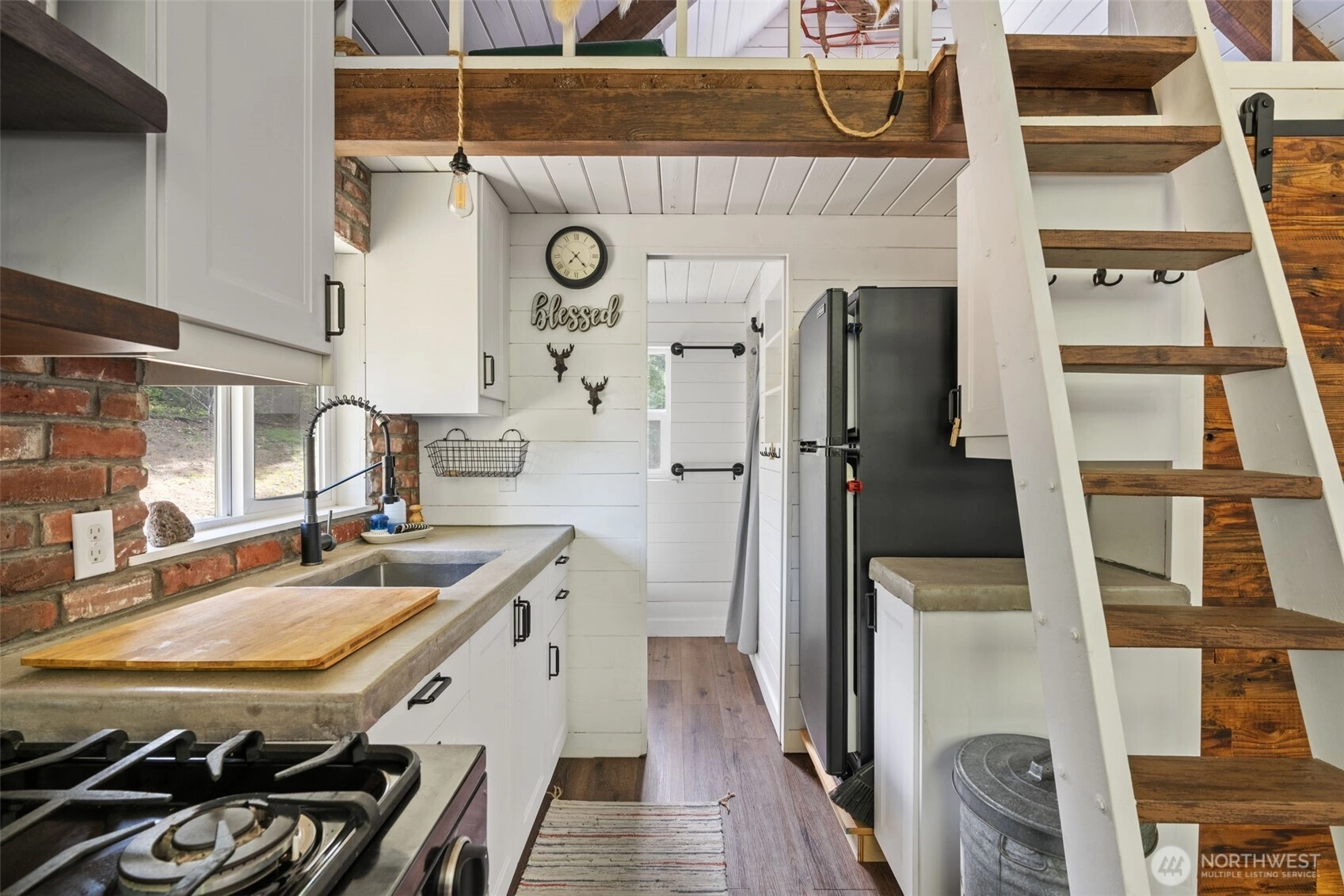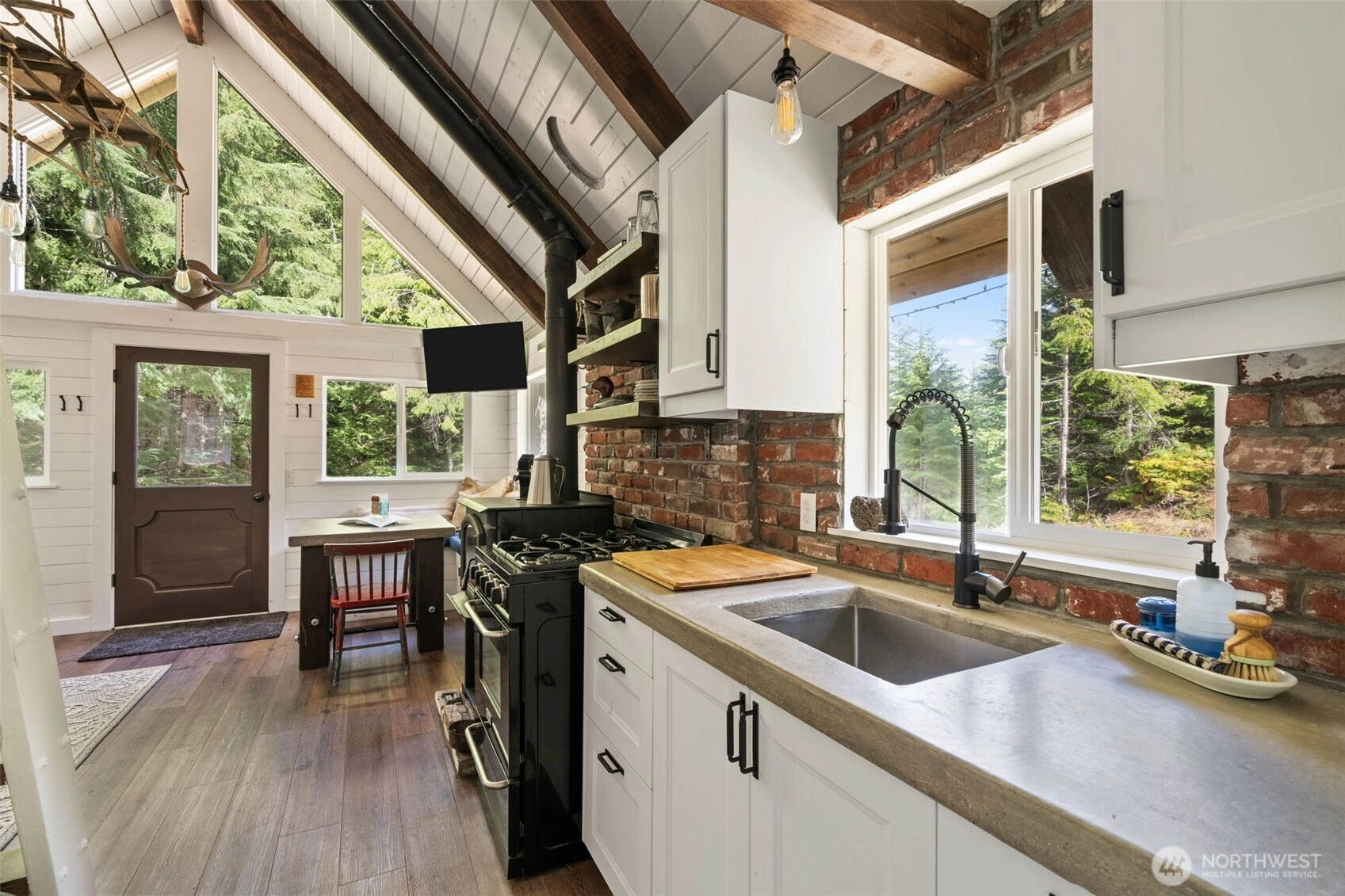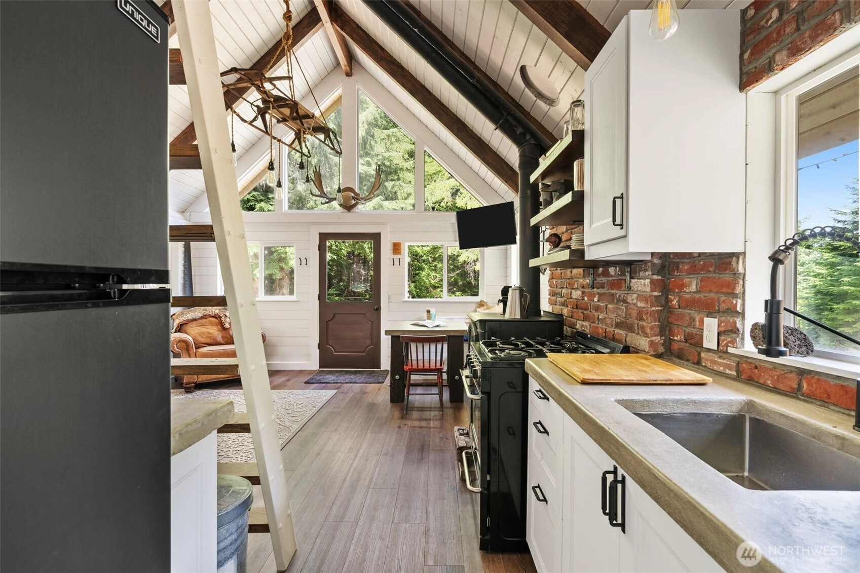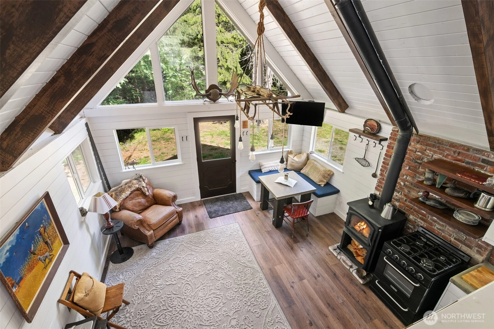 Nestled in the foothills of Mt. St. Helens, this cozy 1-bed, 1-bath cabin with loft has been beautifully renovated and crafted with detail throughout. Offering just under 500 sq. ft. of off-grid comfort, the vaulted ceiling, wood stove, and propane appliances make it feel both rustic and refined. Outside you’ll find a shop, fire pit, and even two secret underground bunkers. Set on 5 private acres of merchantable timber with unmatched seclusion, this turnkey retreat connects you directly to snowmobile trails, hiking, fishing, hunting, reservoirs, Ape Caves, and the Lewis River Recreation Area.