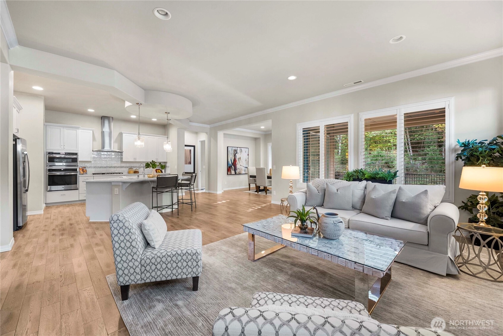 Experience upscale living in Trilogy at Tehaleh’s premier 55+ resort community. This desirable Genova floor plan offers style and comfort just steps from Seven Summits Lodge, featuring a pool, fitness center, pickleball, restaurant, and bar. The private backyard is low-maintenance, while the HOA cares for the front and side yards, leaving you more time to relax and enjoy. A fully finished oversized garage adds valuable convenience and storage. Explore 30+ miles of scenic trails from your front door and immerse yourself in a vibrant community where wellness, adventure, and social connection are part of everyday life. This home is more than a residence—it’s an invitation to live your best life in Trilogy, where luxury meets community.