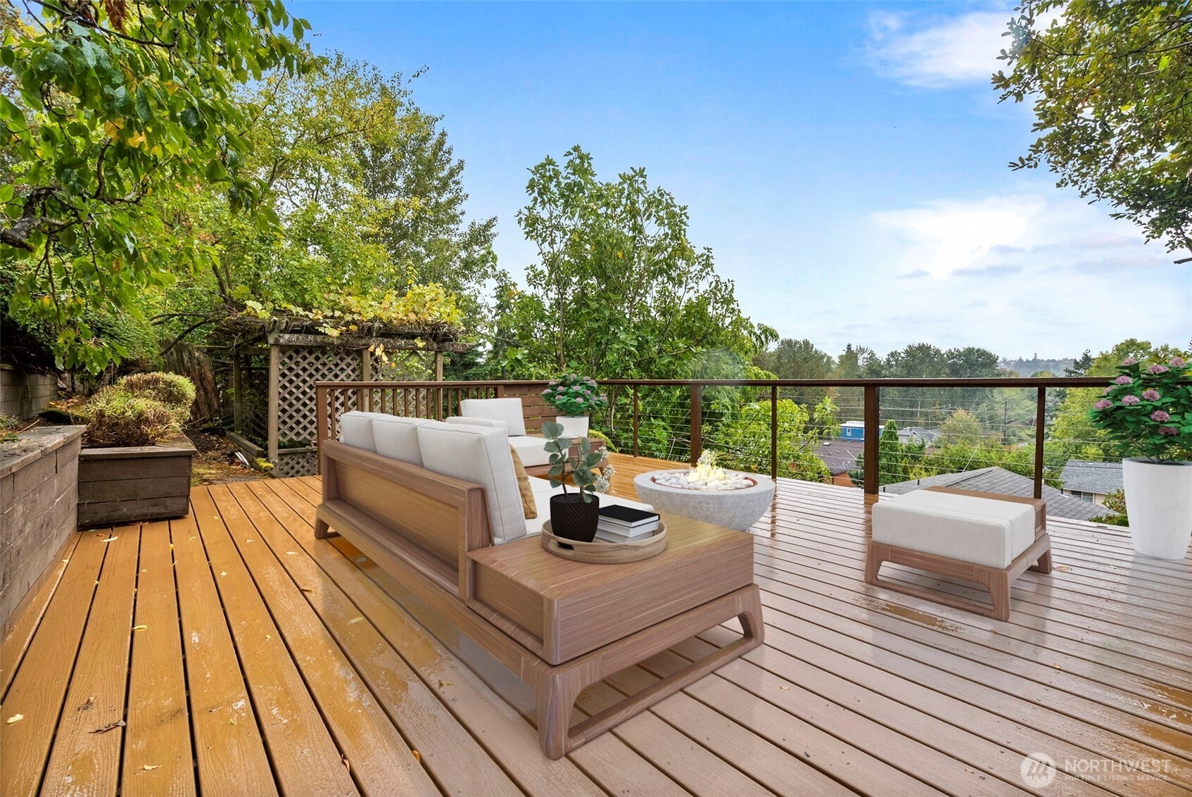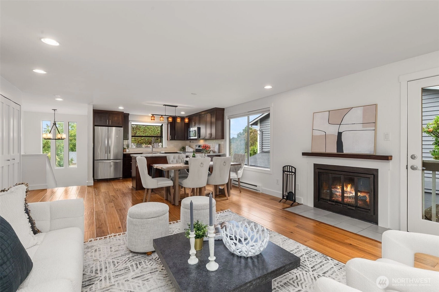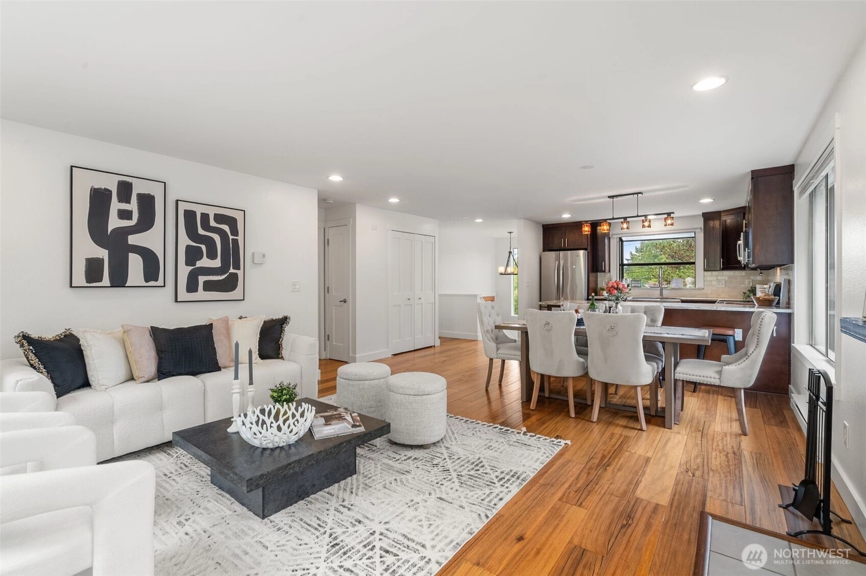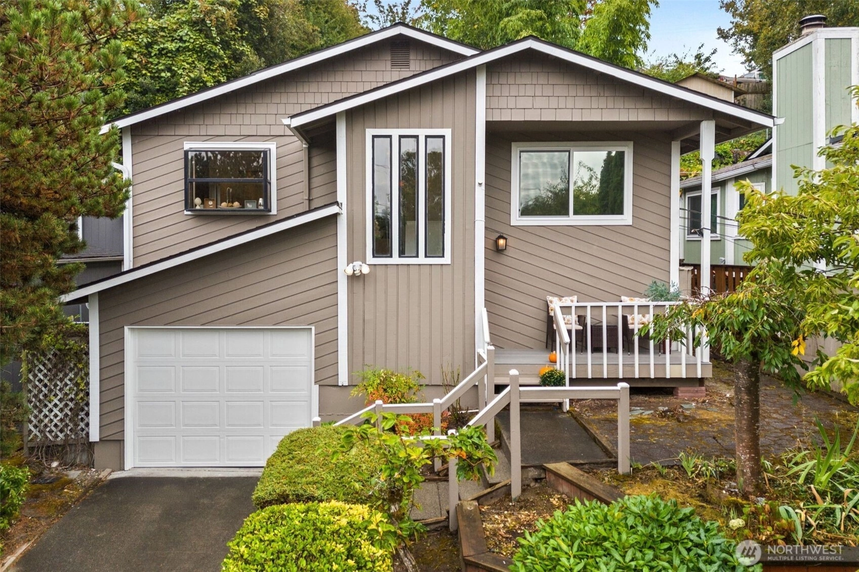 Welcome to this beautiful West Seattle home offering the perfect blend of comfort, style & convenience. Features 3 beds & 2 baths, an open-concept layout with an updated kitchen that flows seamlessly into the dining & living areas. Step outside to your upper deck & take in stunning western-facing sunsets over the Olympic mountains—grab your favorite beverage & unwind while watching the sky change colors. You'll love starting each day with coffee or tea on the private & serene back porch. The lower level offers a 2nd living room & a separate nook perfect for an office, exercise or playroom. Includes low maintenance hard surface flooring & a 1 car garage. Located close to amazing amenities—parks, the beach, dining & access to downtown Seattle