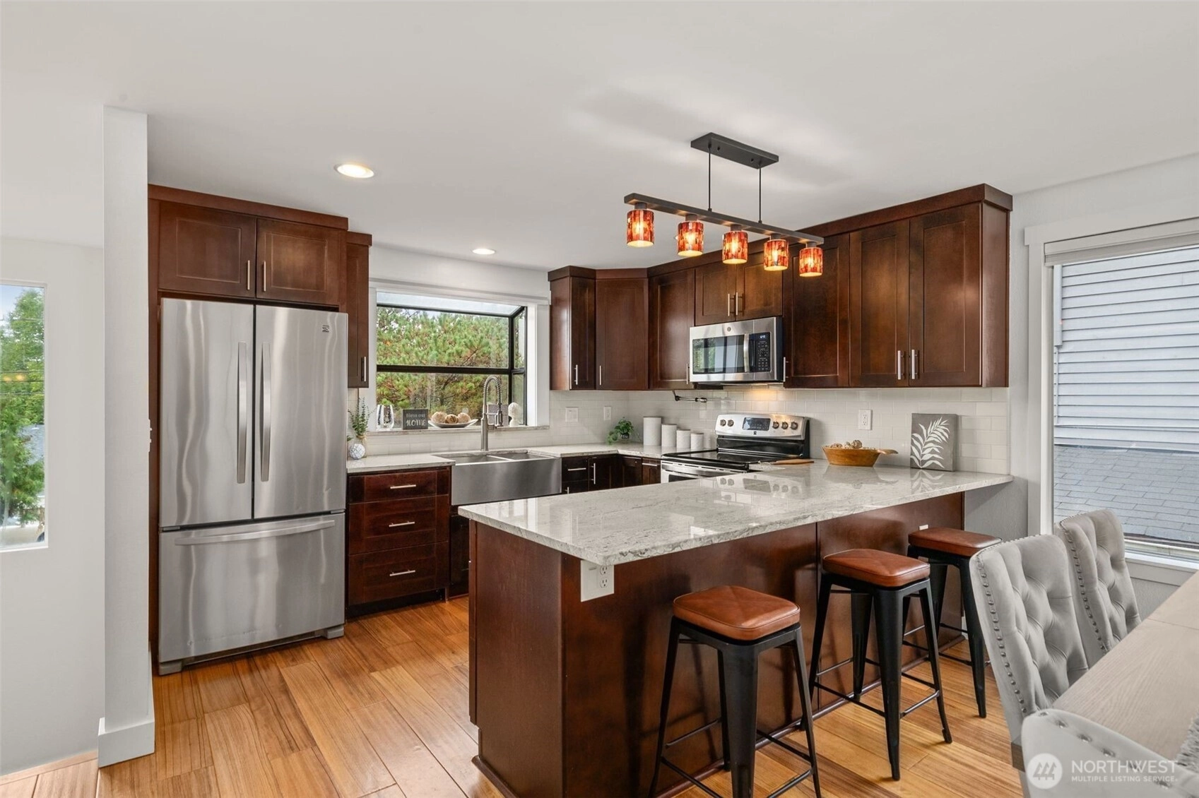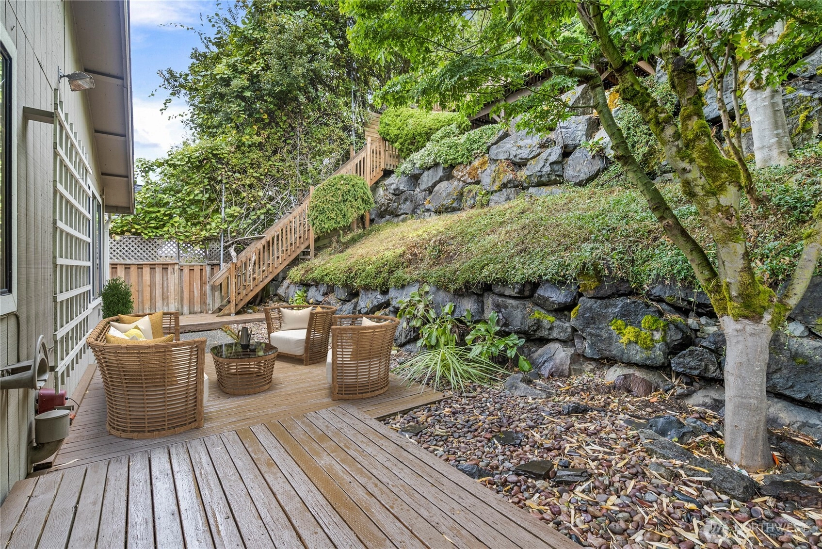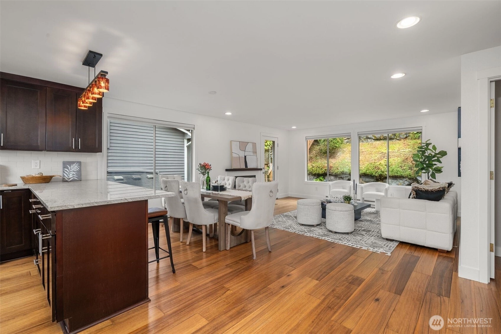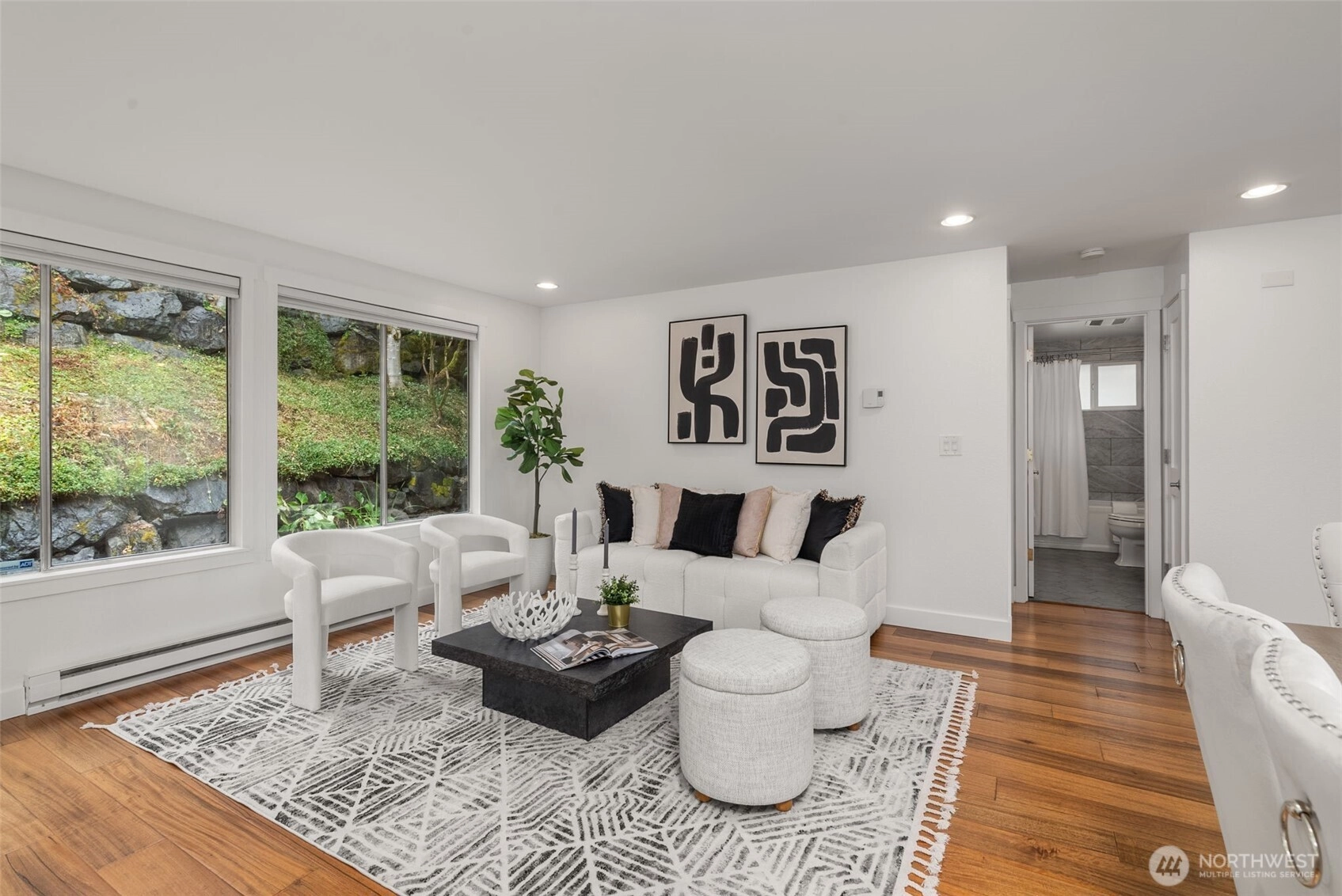 Welcome to this beautiful West Seattle home offering the perfect blend of comfort, style & convenience. Features 3 beds & 2 baths, an open-concept layout with an updated kitchen that flows seamlessly into the dining & living areas. Step outside to your upper deck & take in stunning western-facing sunsets over the Olympic mountains—grab your favorite beverage & unwind while watching the sky change colors. You'll love starting each day with coffee or tea on the private & serene back porch. The lower level offers a 2nd living room & a separate nook perfect for an office, exercise or playroom. Includes low maintenance hard surface flooring & a 1 car garage. Located close to amazing amenities—parks, the beach, dining & access to downtown Seattle