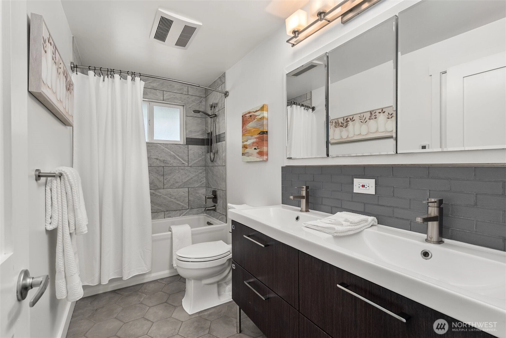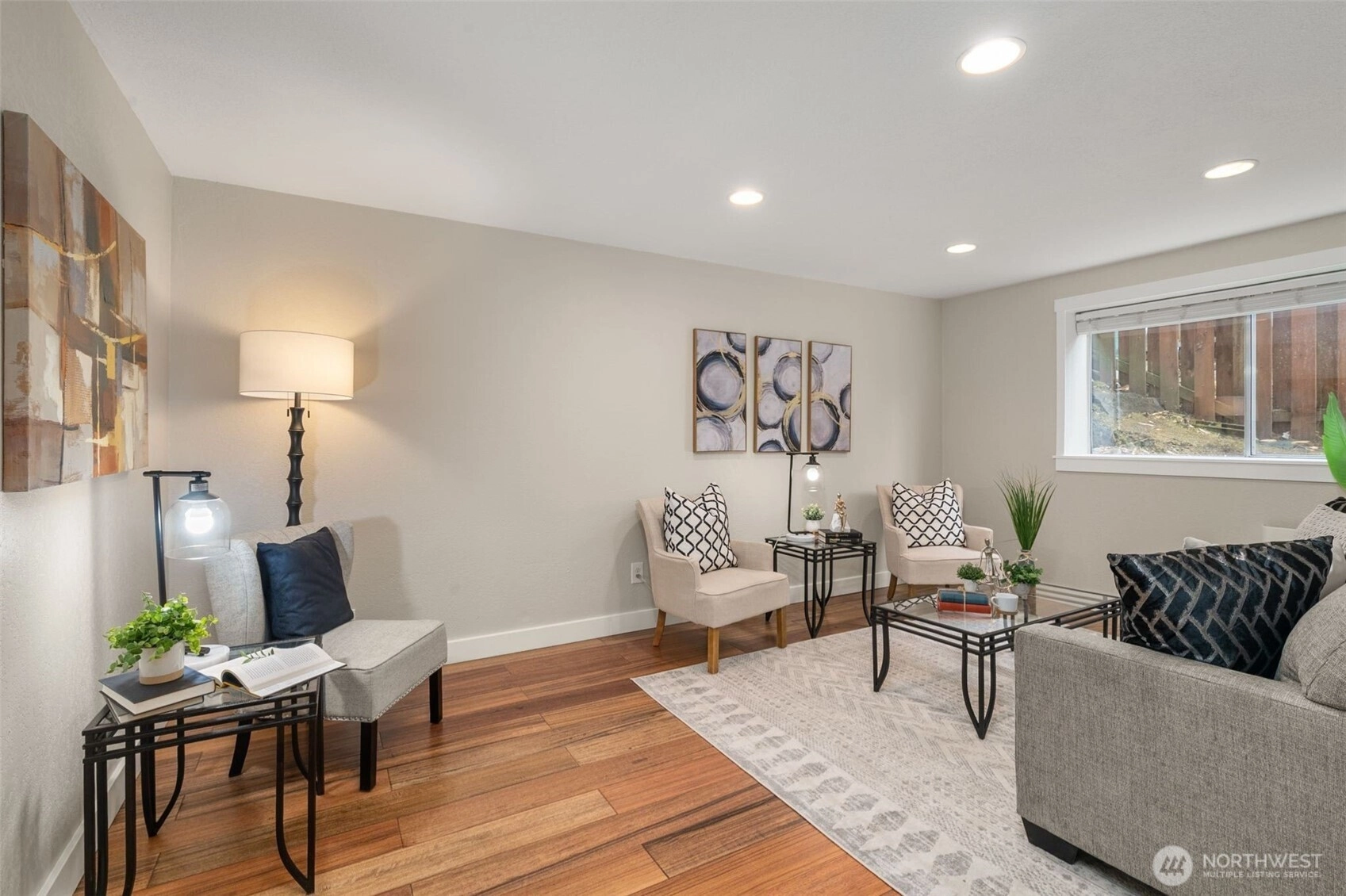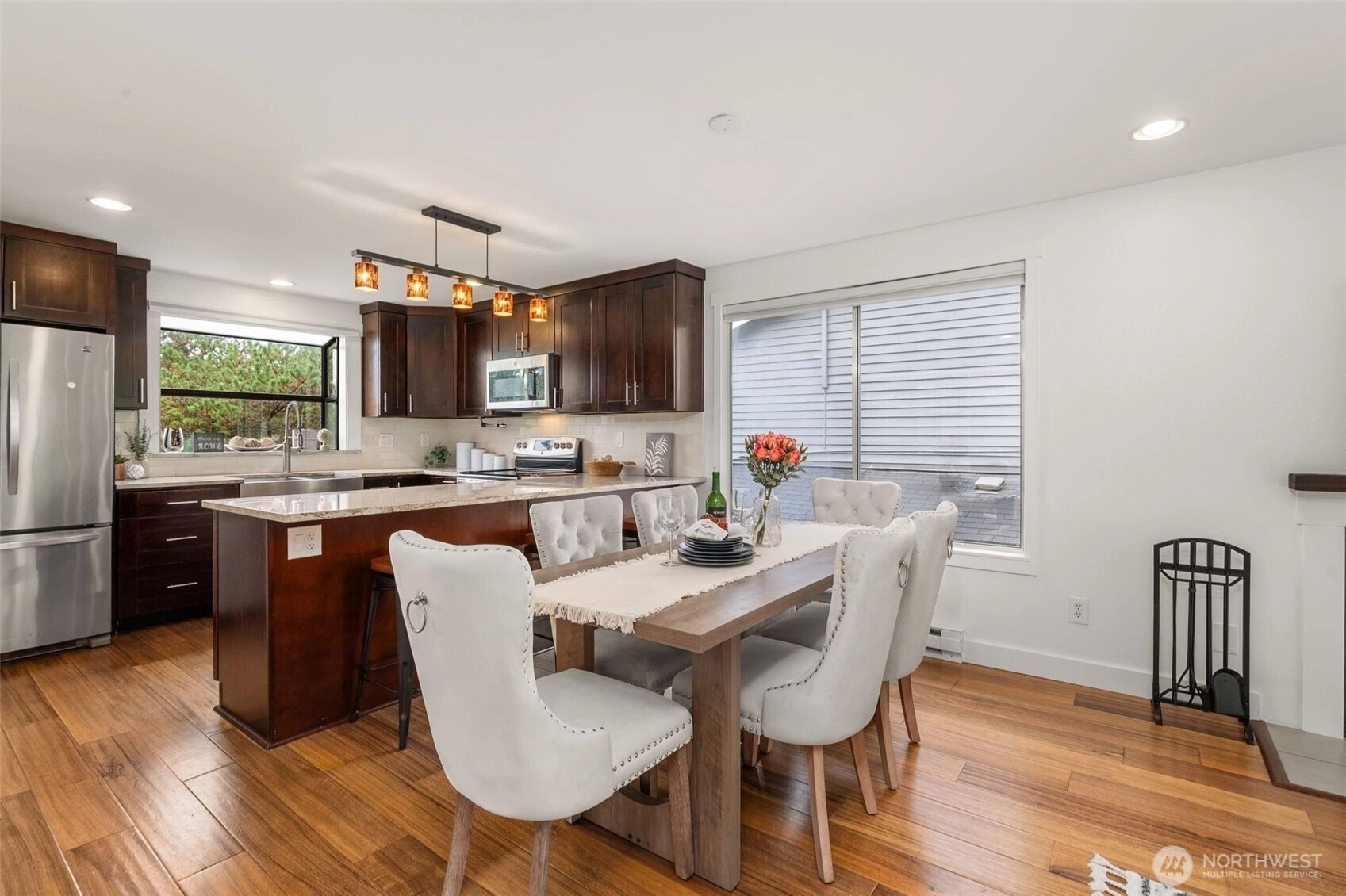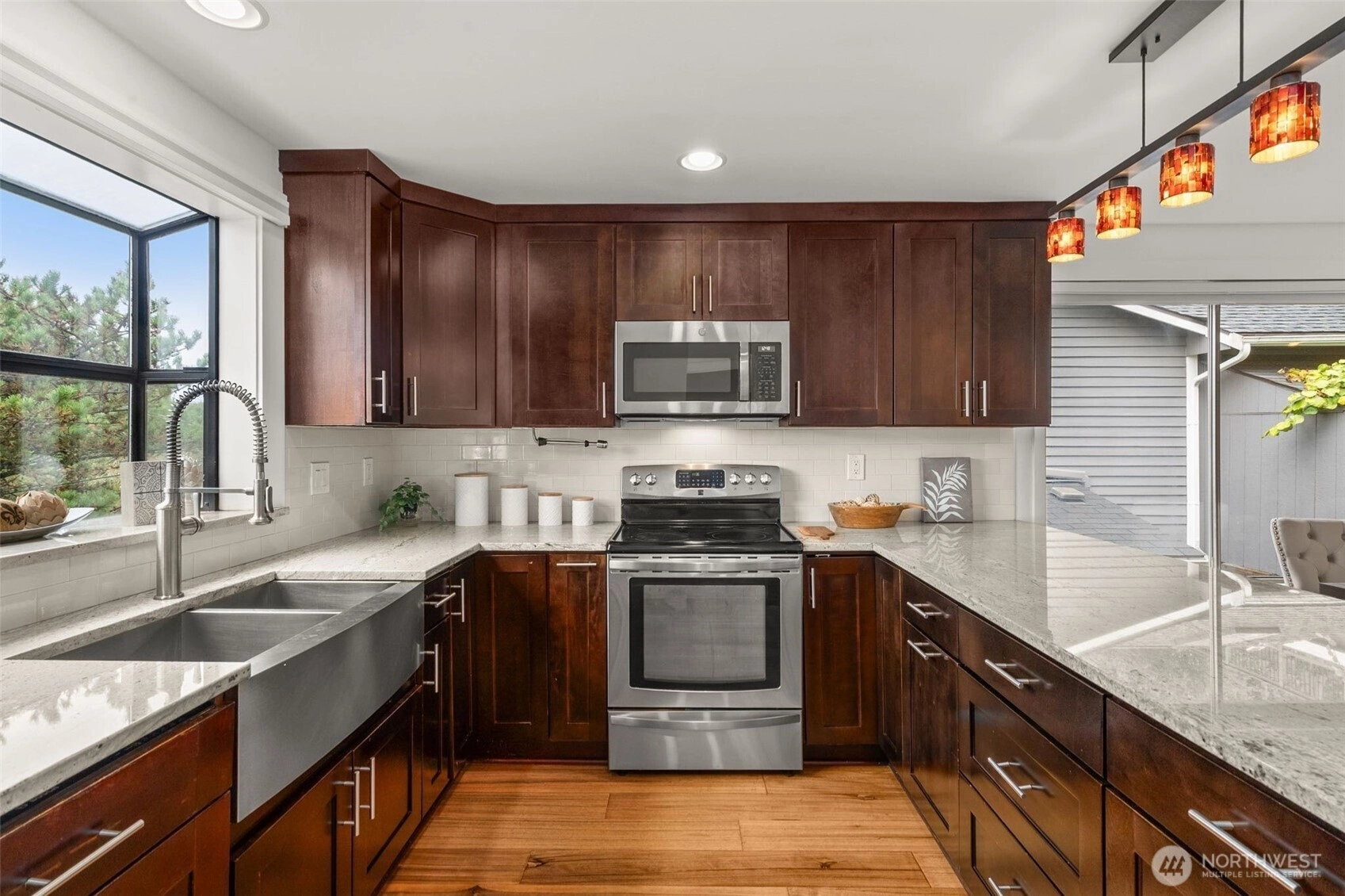 Welcome to this beautiful West Seattle home offering the perfect blend of comfort, style & convenience. Features 3 beds & 2 baths, an open-concept layout with an updated kitchen that flows seamlessly into the dining & living areas. Step outside to your upper deck & take in stunning western-facing sunsets over the Olympic mountains—grab your favorite beverage & unwind while watching the sky change colors. You'll love starting each day with coffee or tea on the private & serene back porch. The lower level offers a 2nd living room & a separate nook perfect for an office, exercise or playroom. Includes low maintenance hard surface flooring & a 1 car garage. Located close to amazing amenities—parks, the beach, dining & access to downtown Seattle