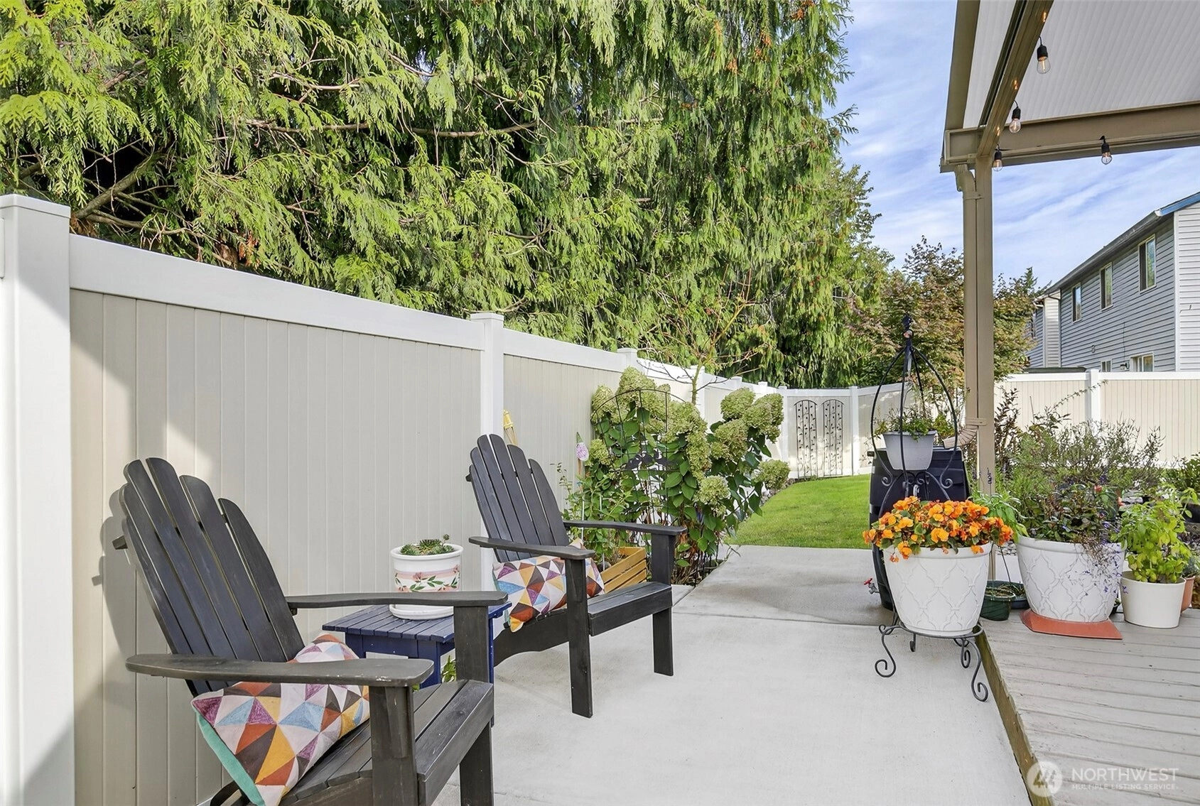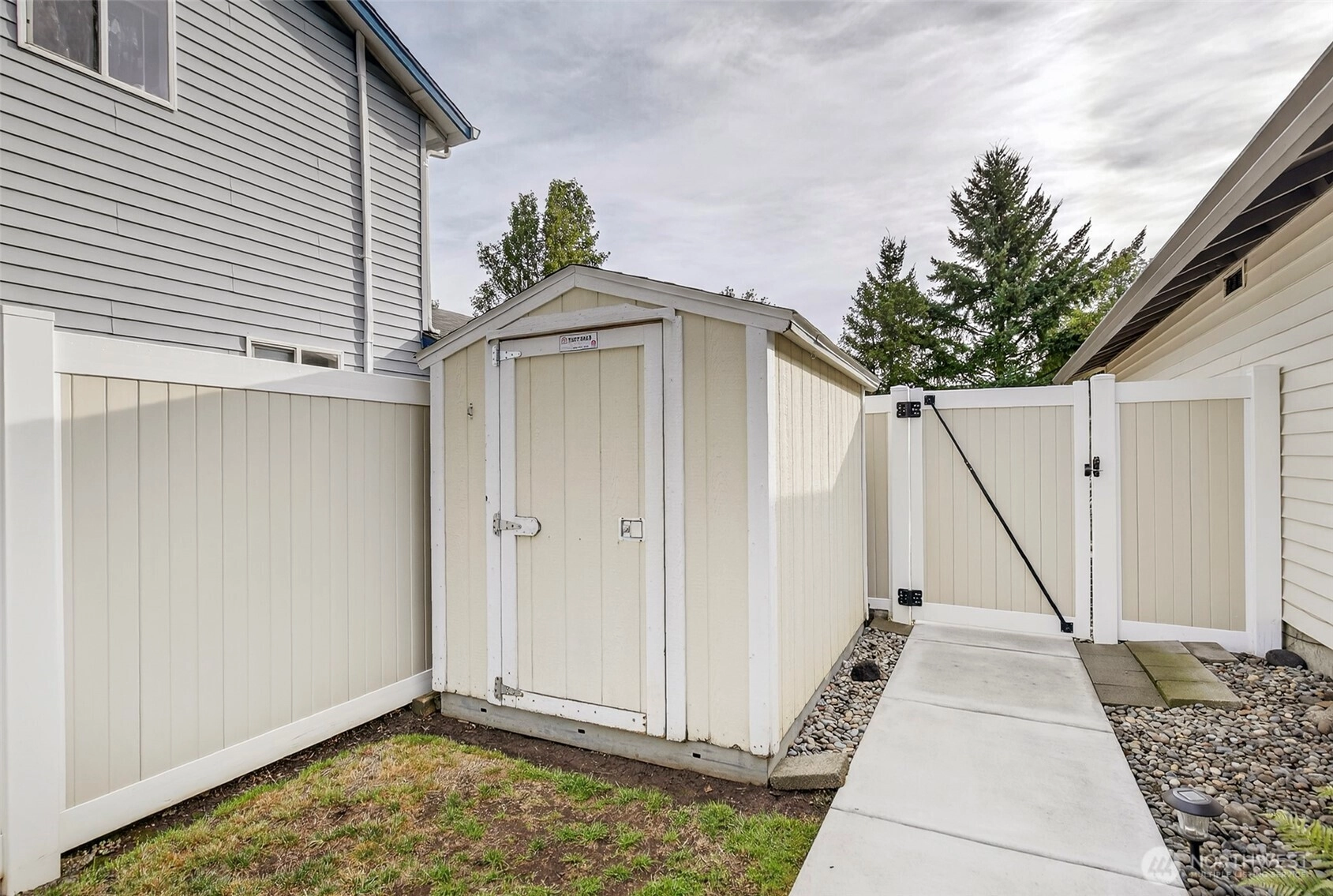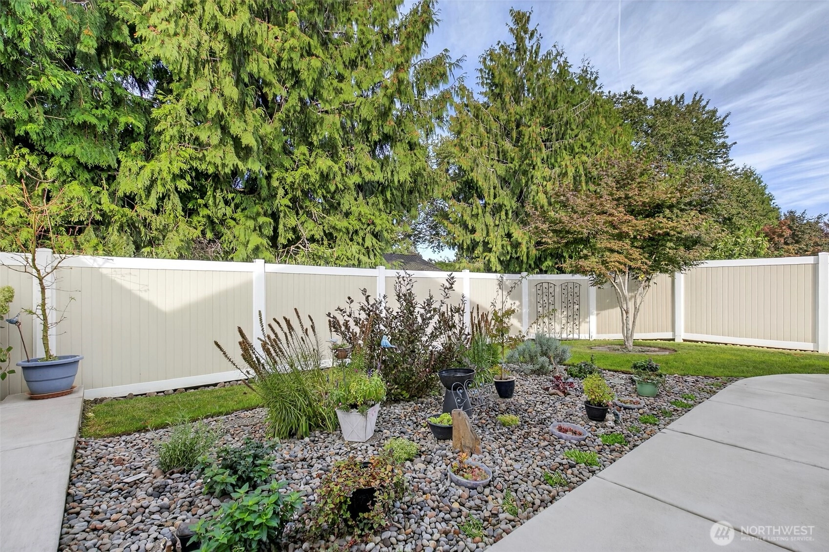 Move-in ready home with thoughtful updates inside and out, including Newer Milgard double pane windows, newer paint! Spacious living room with wall-to-wall newer carpet, and custom blinds. Kitchen features stainless steel appliances, quartz counters, vaulted ceiling, recessed lights, and dining area with slider to backyard. Primary suite offers walk-in closet and remodeled bath with glass shower. Two additional bedrooms plus updated hall bath. Smart thermostat, gas furnace with A/C, and newer gas water heater. Backyard is perfect for entertaining with covered composite deck, acrylite cover, extensive concrete work, and Tuff shed. Roof approx. 10 yrs. Garage includes shelving, opener with keypad.