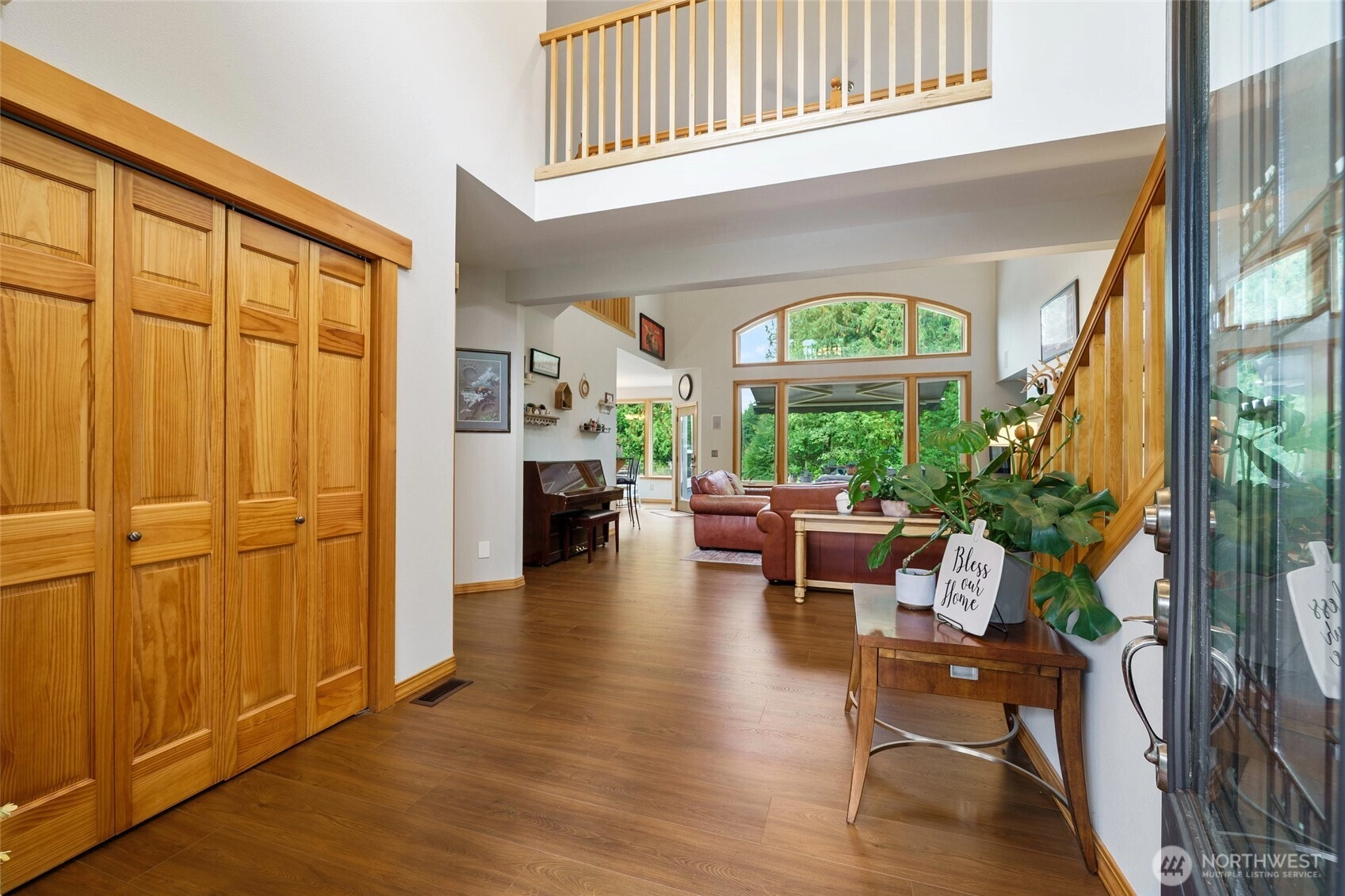 Stunning 3,642 sq ft Craftsman-style home on just shy of 22 acres in gated McKenna Forest Reserve, a 4,400-acre community divided into six neighborhoods, including Jackson Forest. Sunlight fills vaulted ceilings and spacious living areas. Dual primary suites: primary with sitting area and jetted tub, main-floor junior suite with walk-in shower and accessible bath. Main-floor office, upper-level guest room, and bonus room. Kitchen with stainless appliances, walk-in pantry, and eating bar; dining area with backyard views. Forest/mountain views, 3-car garage, two powered shops, built-in vacuum, tankless water heater, Central AC, fruit trees, pond, deck, ATV/horse trails, lake access. Community offers boat launch, park, and playground.