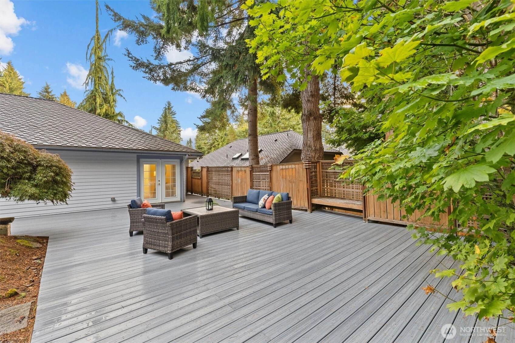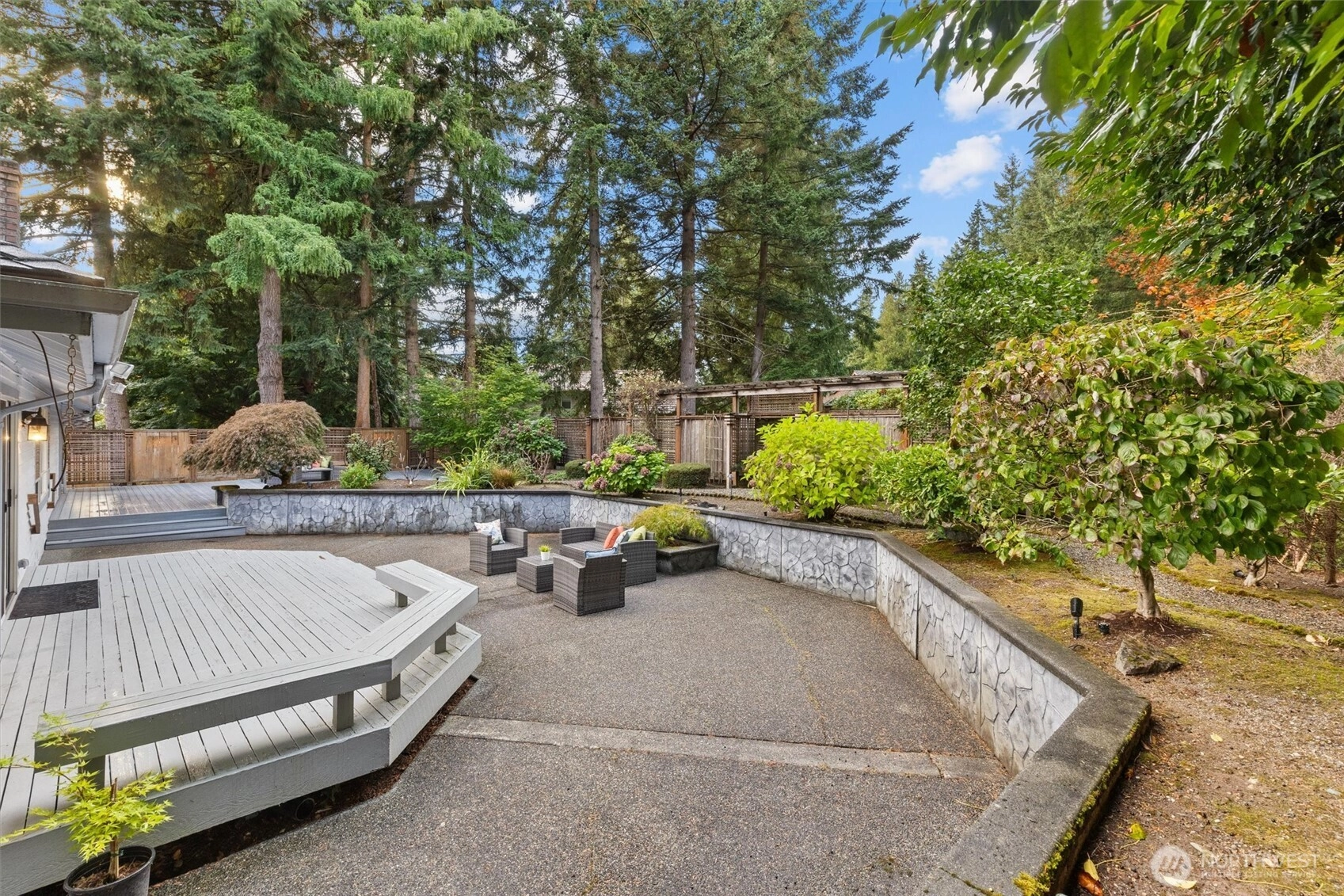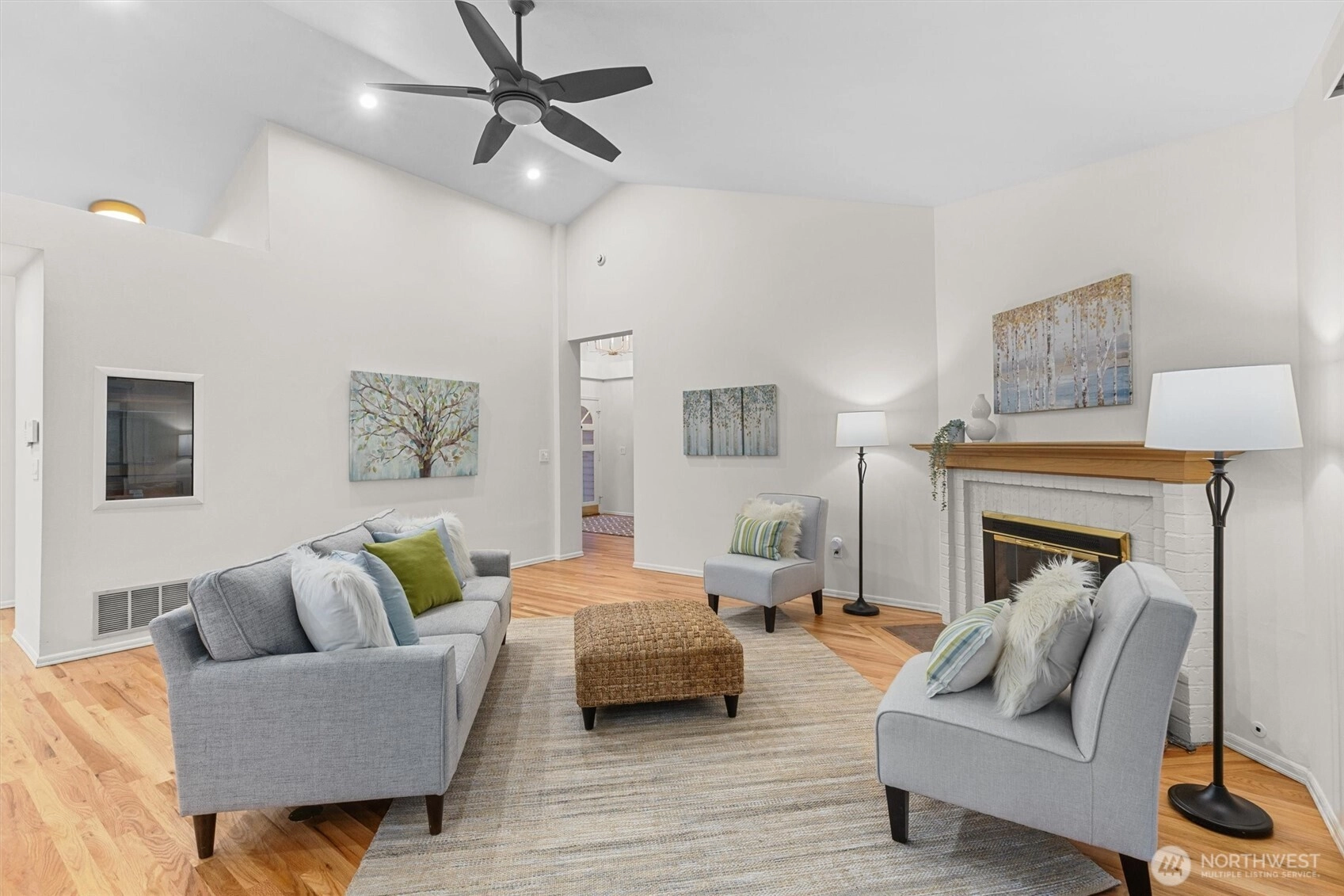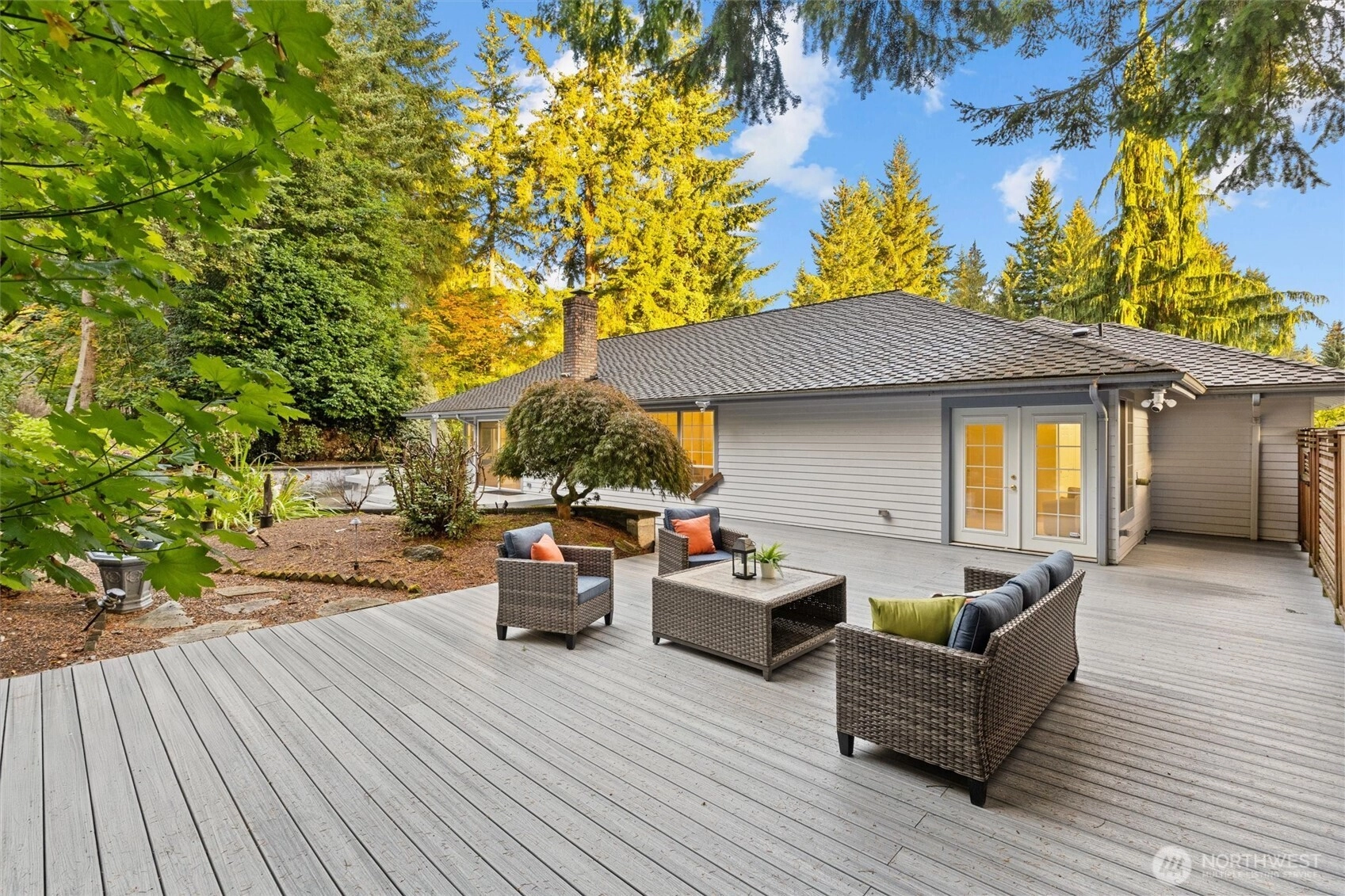Move-in ready, stylishly updated rambler in the desirable Douglas Fir neighborhood! Recent updates include a new deck, refinished hardwoods, new carpet, updated hardware, lighting & plumbing fixtures & 1 year old furnace, heat pump (A/C) & water heater. Fantastic floor plan w/ only 1-step to the front door boasts living & dining rooms, family room w/cozy gas fireplace, kitchen w/ pantry, island and breakfast nook, and primary suite w/deck access, vaulted ceilings, walk-in closet & 5-piece bath. Beautiful backyard is ¾ fenced w/permit obtained for fencing along Trillium. Ideally located near Mill Creek Town Center, schools, golf & tennis clubs, aquatic center, Arena Sports, scenic nature trails, parks, SWIFT Transit Line, Park & Ride & more.