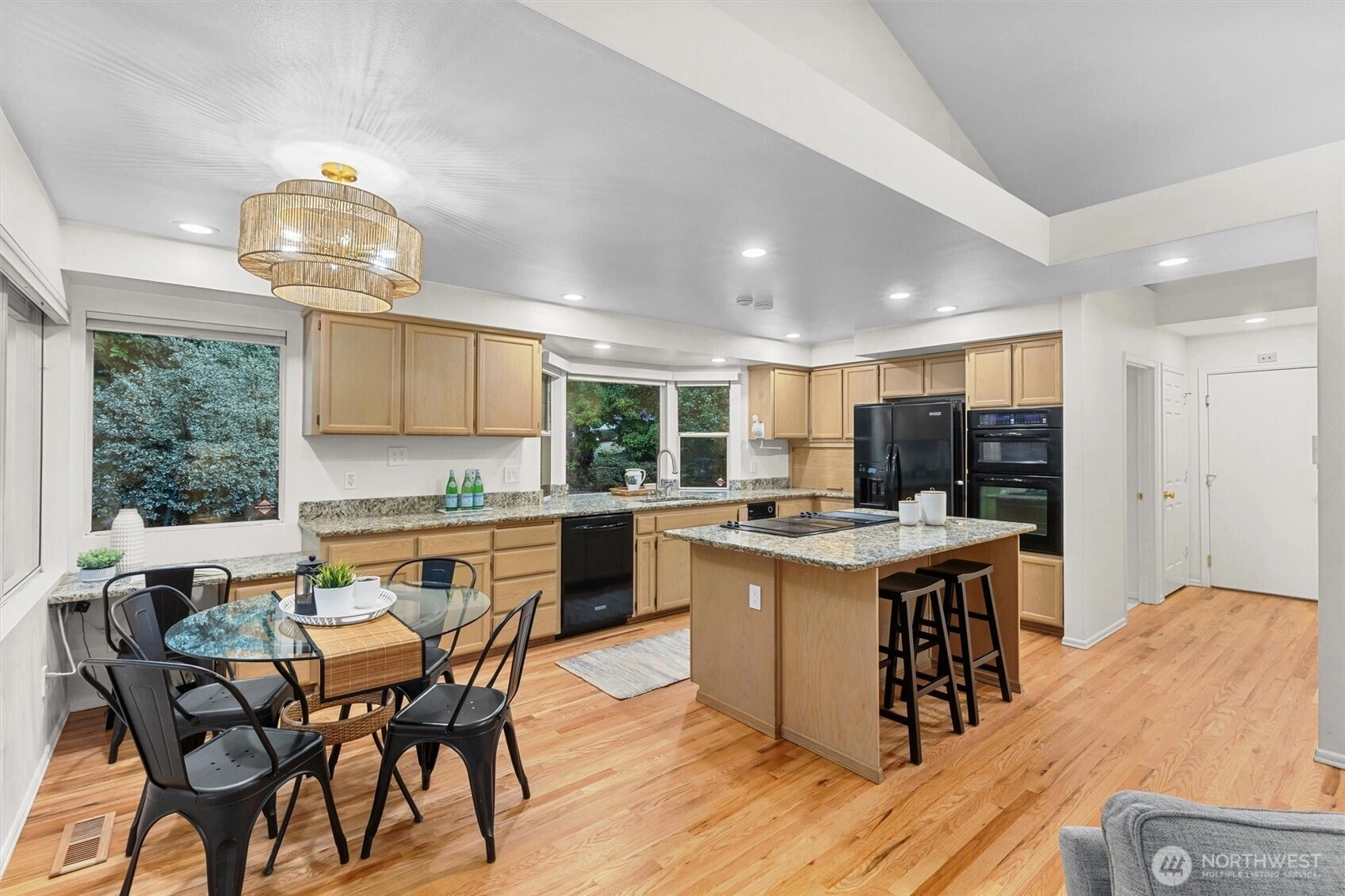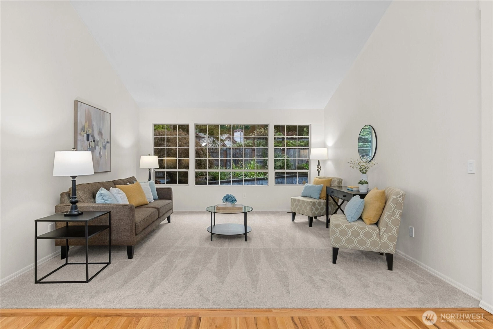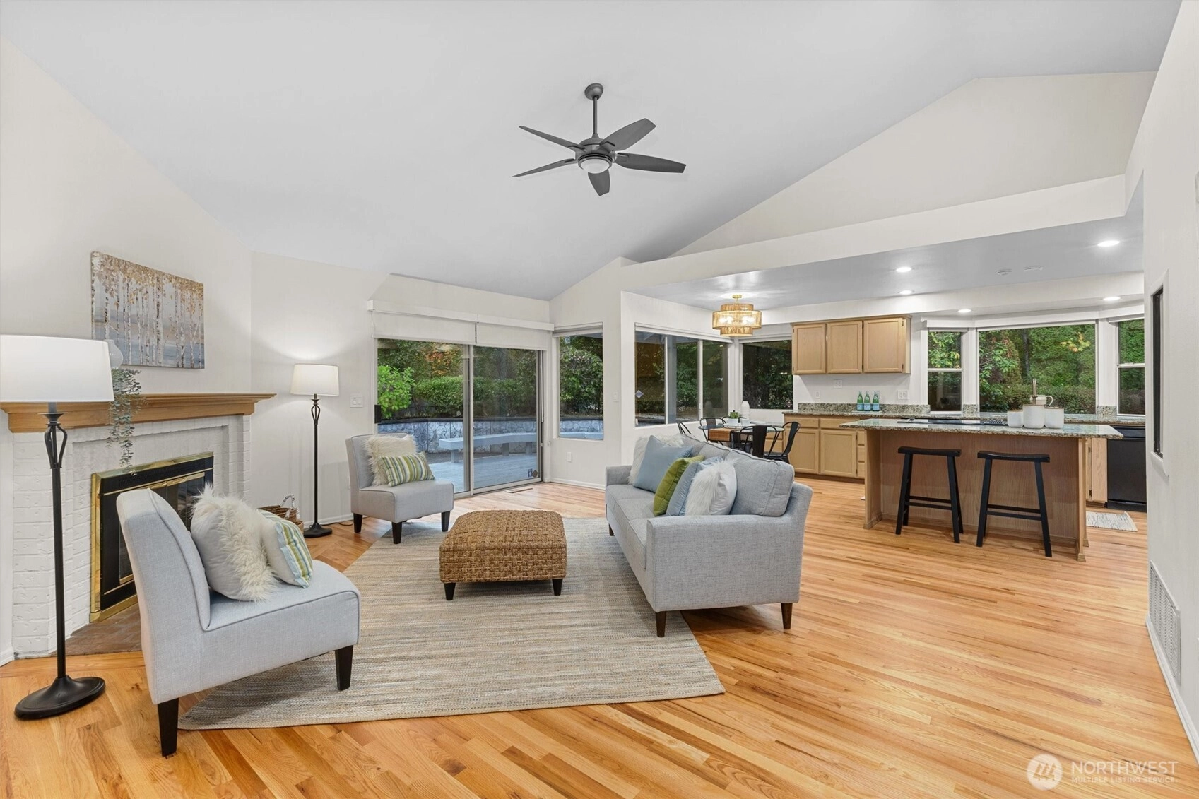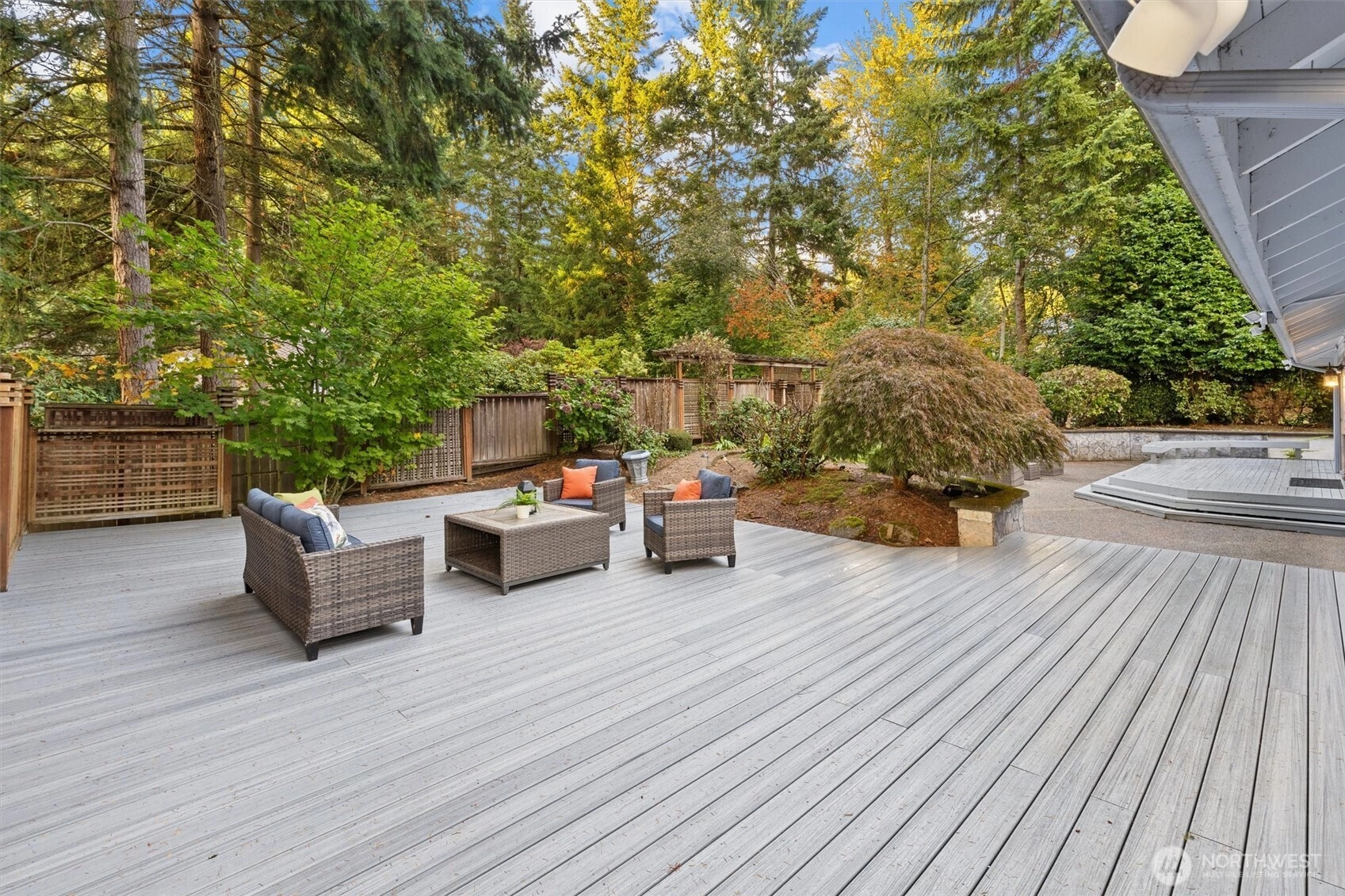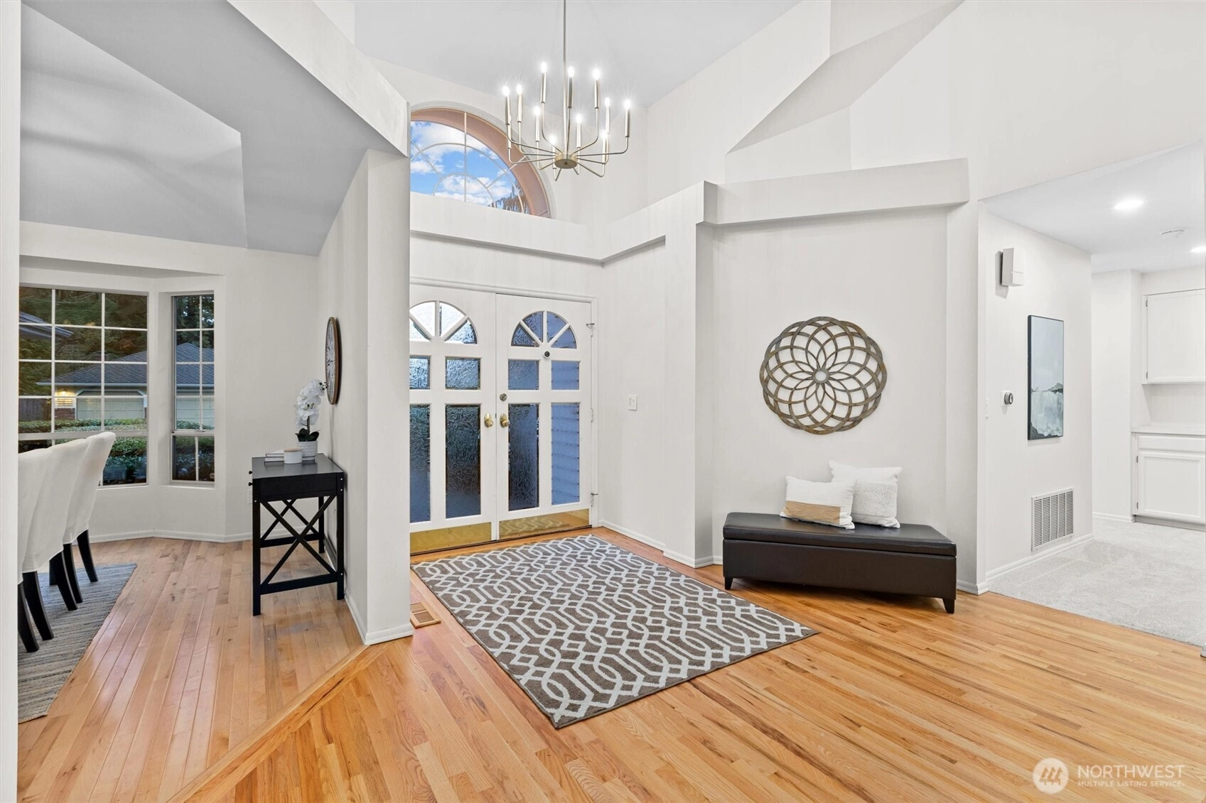 Move-in ready, stylishly updated rambler in the desirable Douglas Fir neighborhood! Recent updates include a new deck, refinished hardwoods, new carpet, updated hardware, lighting & plumbing fixtures & 1 year old furnace, heat pump (A/C) & water heater. Fantastic floor plan w/ only 1-step to the front door boasts living & dining rooms, family room w/cozy gas fireplace, kitchen w/ pantry, island and breakfast nook, and primary suite w/deck access, vaulted ceilings, walk-in closet & 5-piece bath. Beautiful backyard is ¾ fenced w/permit obtained for fencing along Trillium. Ideally located near Mill Creek Town Center, schools, golf & tennis clubs, aquatic center, Arena Sports, scenic nature trails, parks, SWIFT Transit Line, Park & Ride & more.