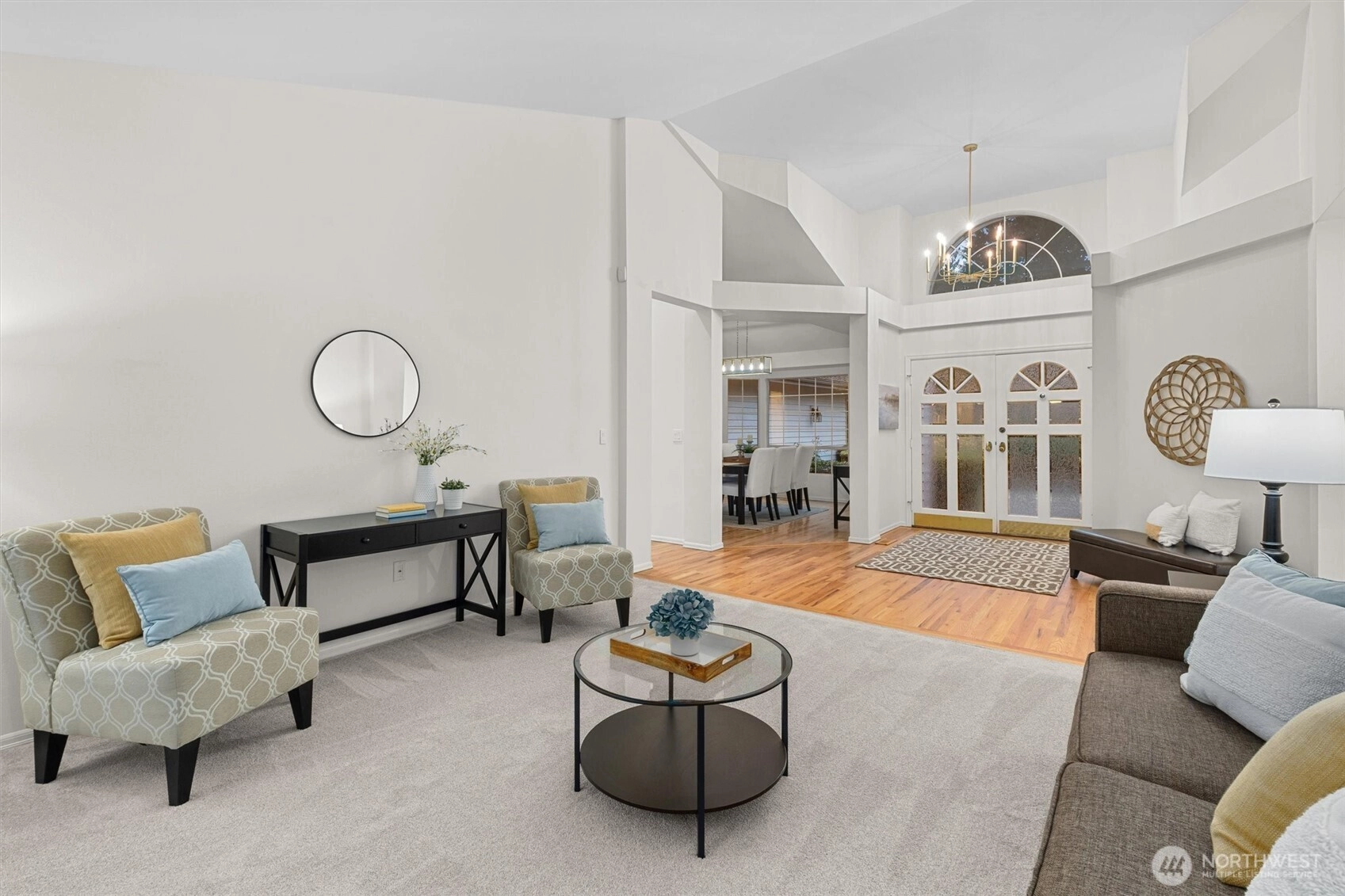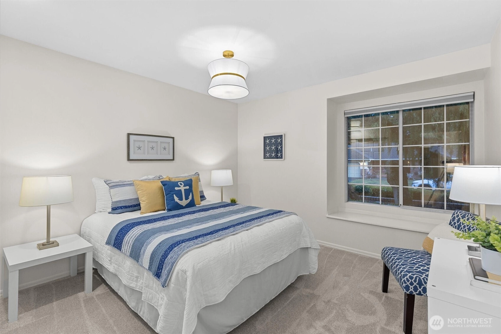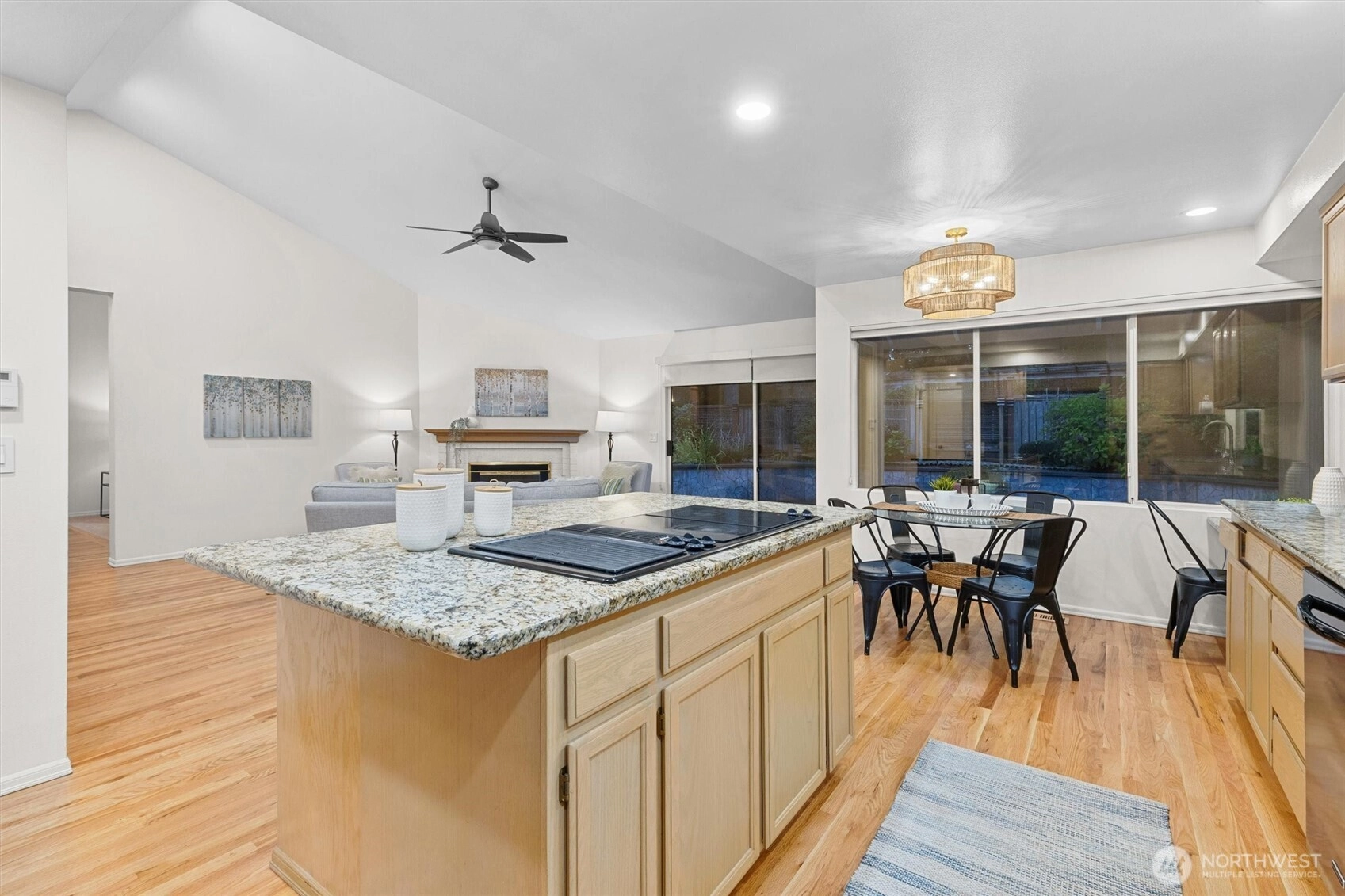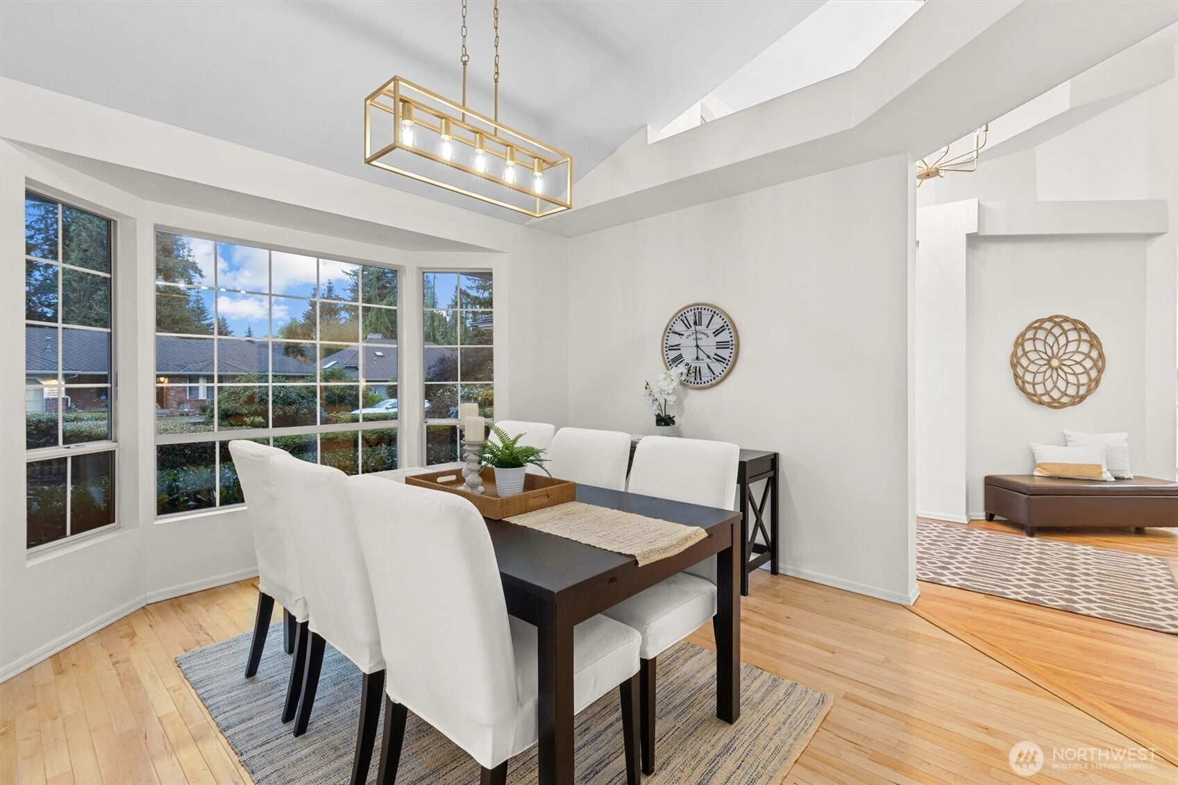 Move-in ready, stylishly updated rambler in the desirable Douglas Fir neighborhood! Recent updates include a new deck, refinished hardwoods, new carpet, updated hardware, lighting & plumbing fixtures & 1 year old furnace, heat pump (A/C) & water heater. Fantastic floor plan w/ only 1-step to the front door boasts living & dining rooms, family room w/cozy gas fireplace, kitchen w/ pantry, island and breakfast nook, and primary suite w/deck access, vaulted ceilings, walk-in closet & 5-piece bath. Beautiful backyard is ¾ fenced w/permit obtained for fencing along Trillium. Ideally located near Mill Creek Town Center, schools, golf & tennis clubs, aquatic center, Arena Sports, scenic nature trails, parks, SWIFT Transit Line, Park & Ride & more.