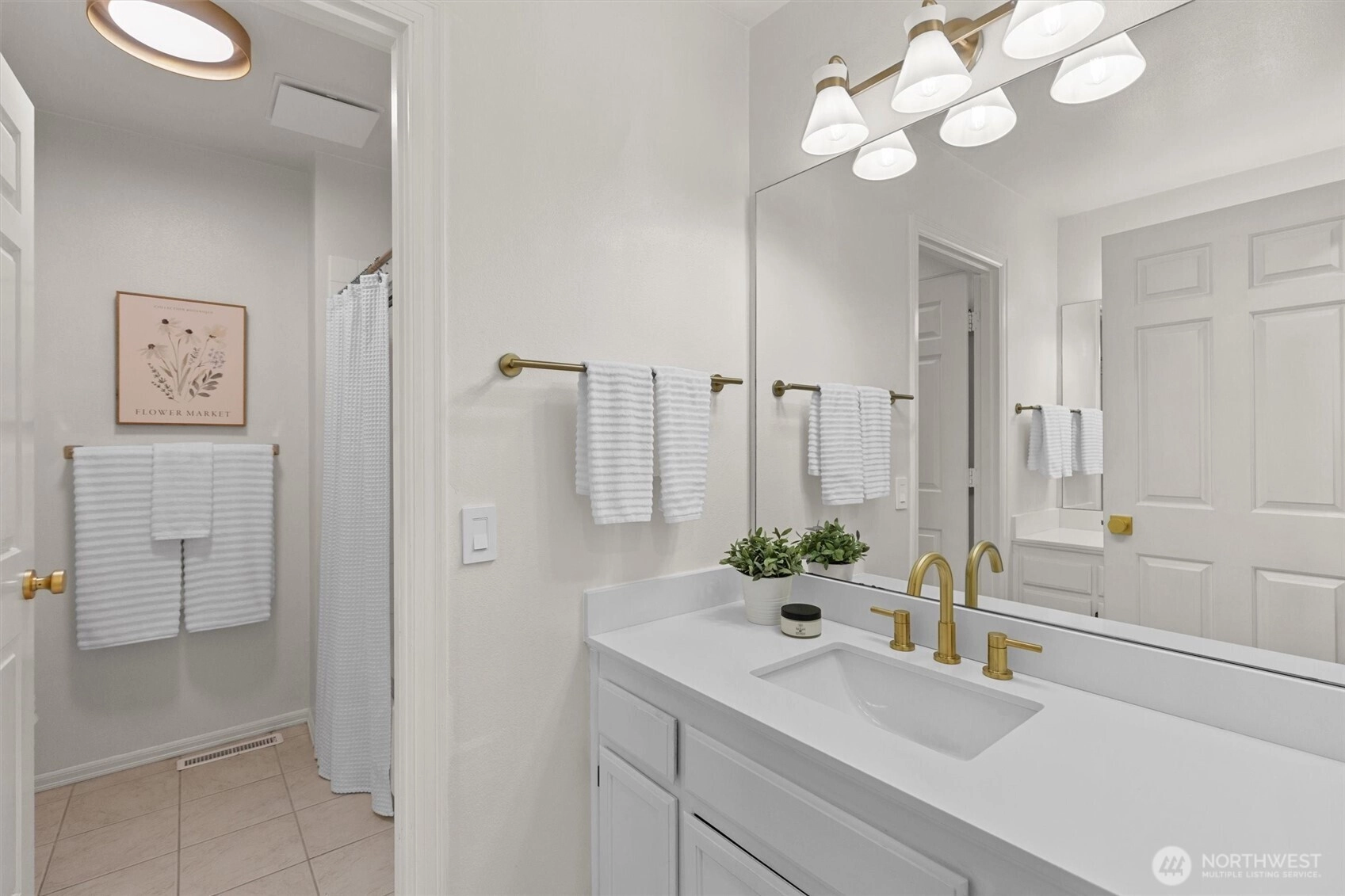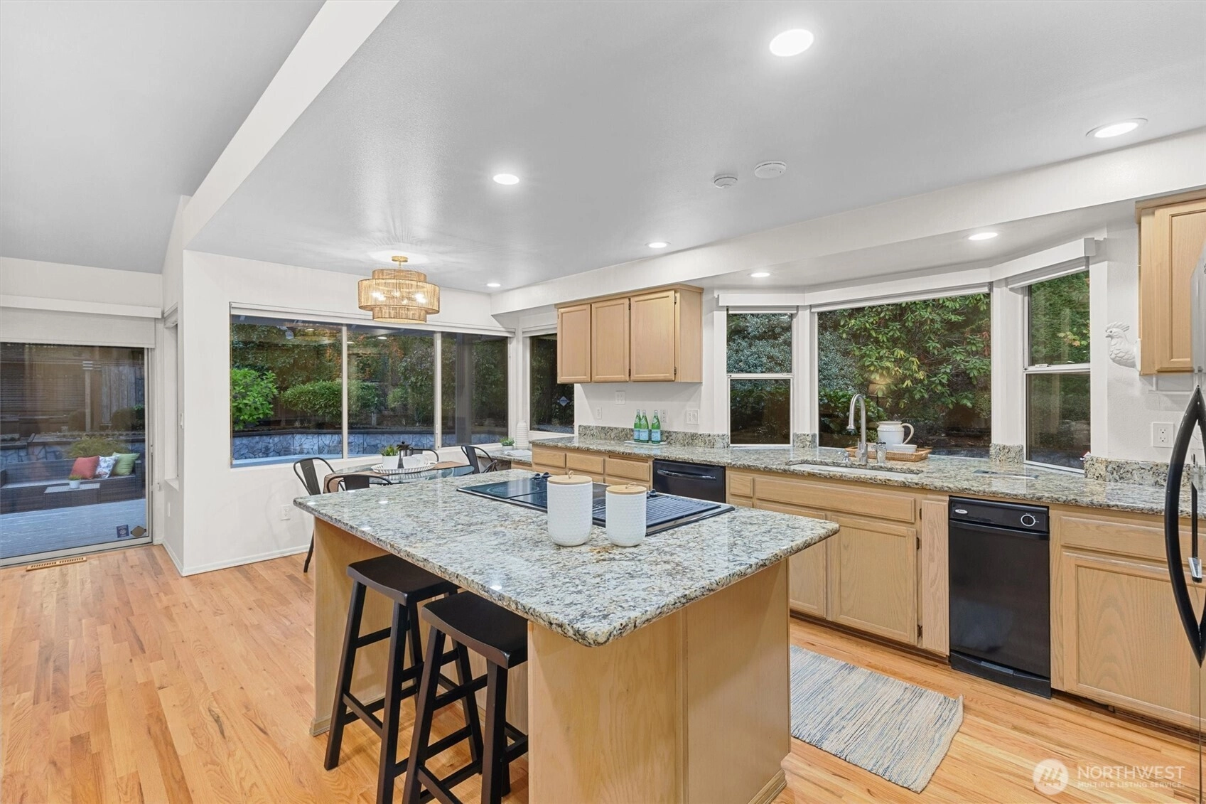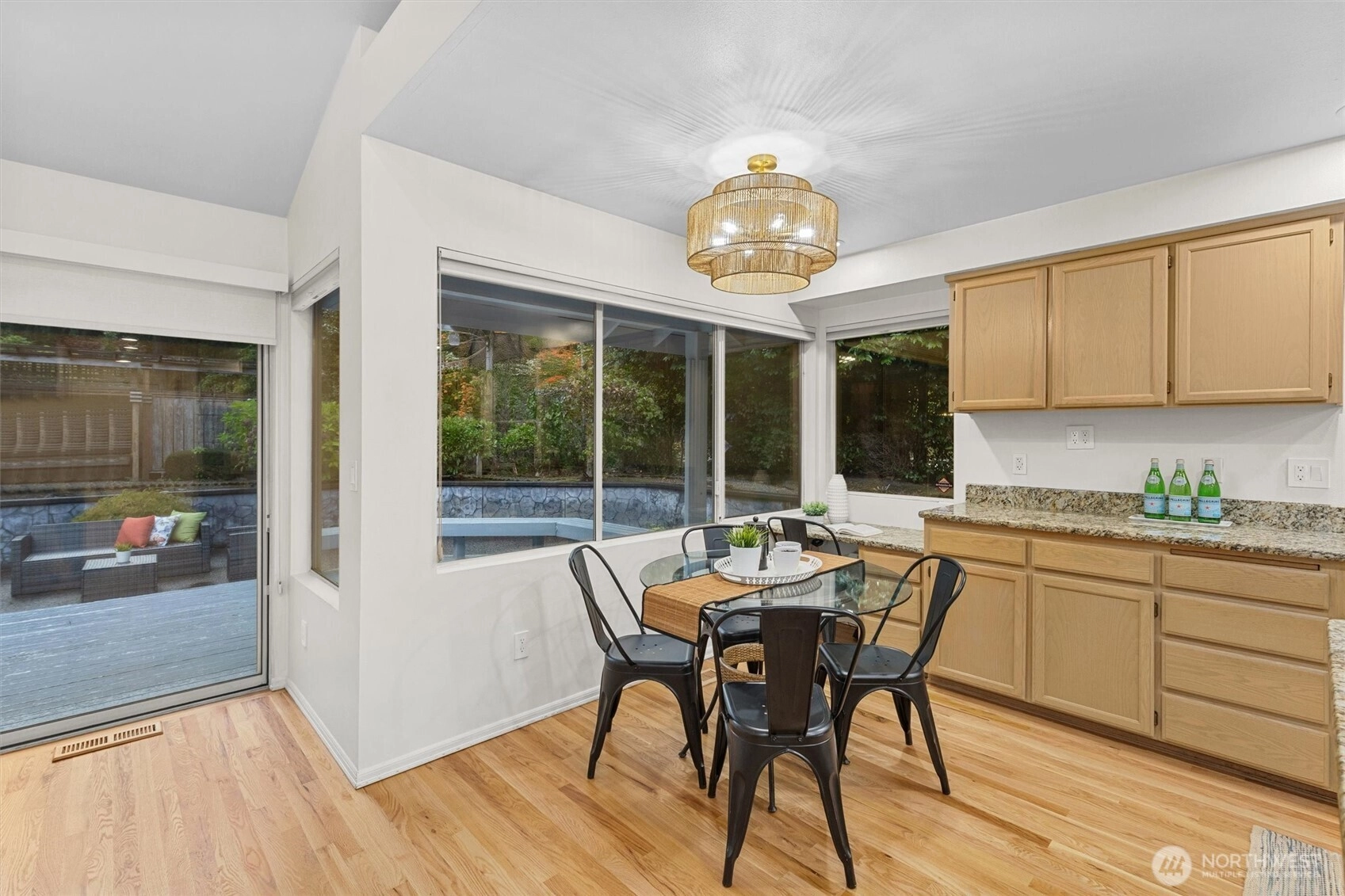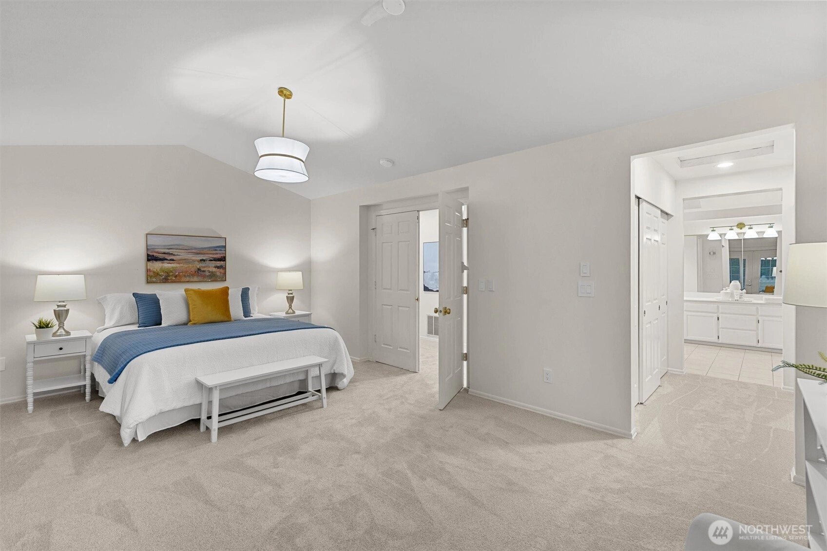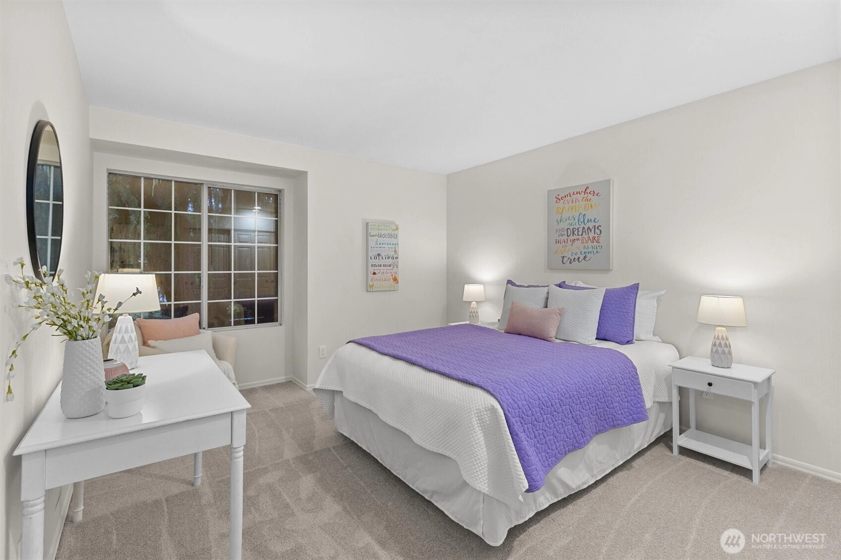Move-in ready, stylishly updated rambler in the desirable Douglas Fir neighborhood! Recent updates include a new deck, refinished hardwoods, new carpet, updated hardware, lighting & plumbing fixtures & 1 year old furnace, heat pump (A/C) & water heater. Fantastic floor plan w/ only 1-step to the front door boasts living & dining rooms, family room w/cozy gas fireplace, kitchen w/ pantry, island and breakfast nook, and primary suite w/deck access, vaulted ceilings, walk-in closet & 5-piece bath. Beautiful backyard is ¾ fenced w/permit obtained for fencing along Trillium. Ideally located near Mill Creek Town Center, schools, golf & tennis clubs, aquatic center, Arena Sports, scenic nature trails, parks, SWIFT Transit Line, Park & Ride & more.