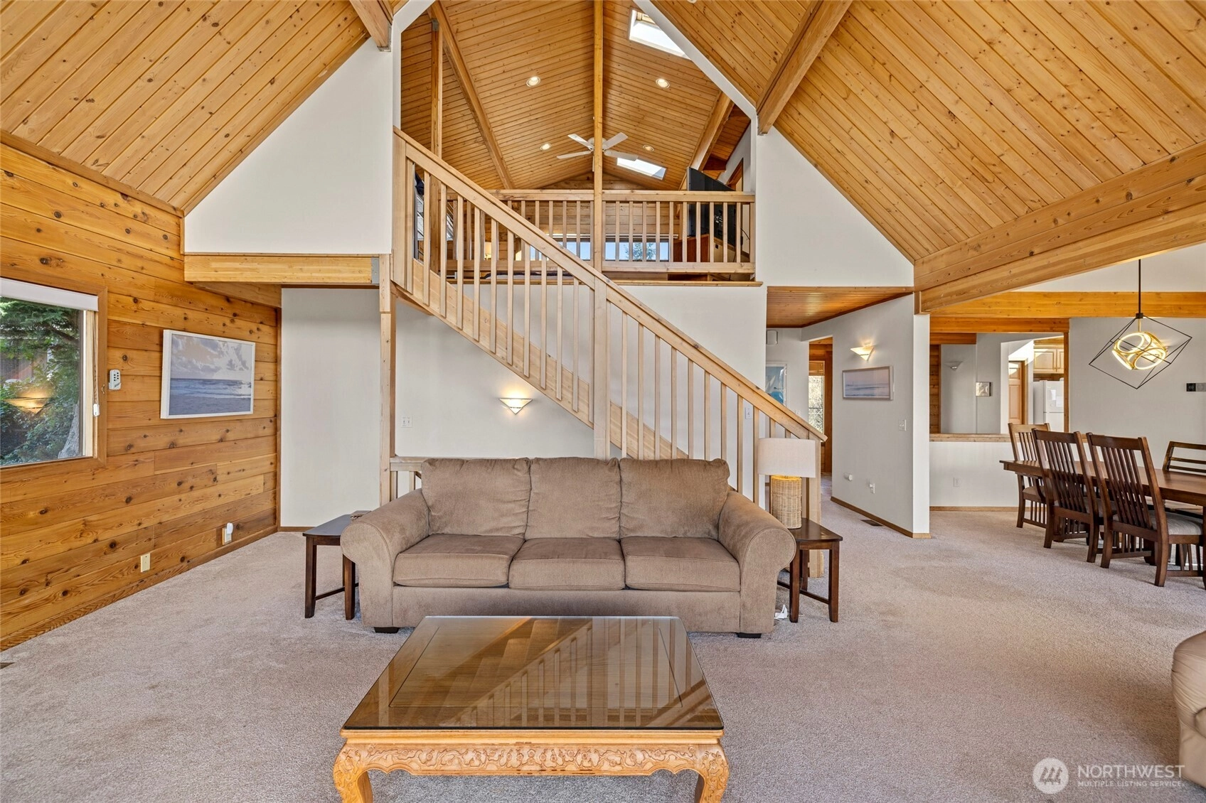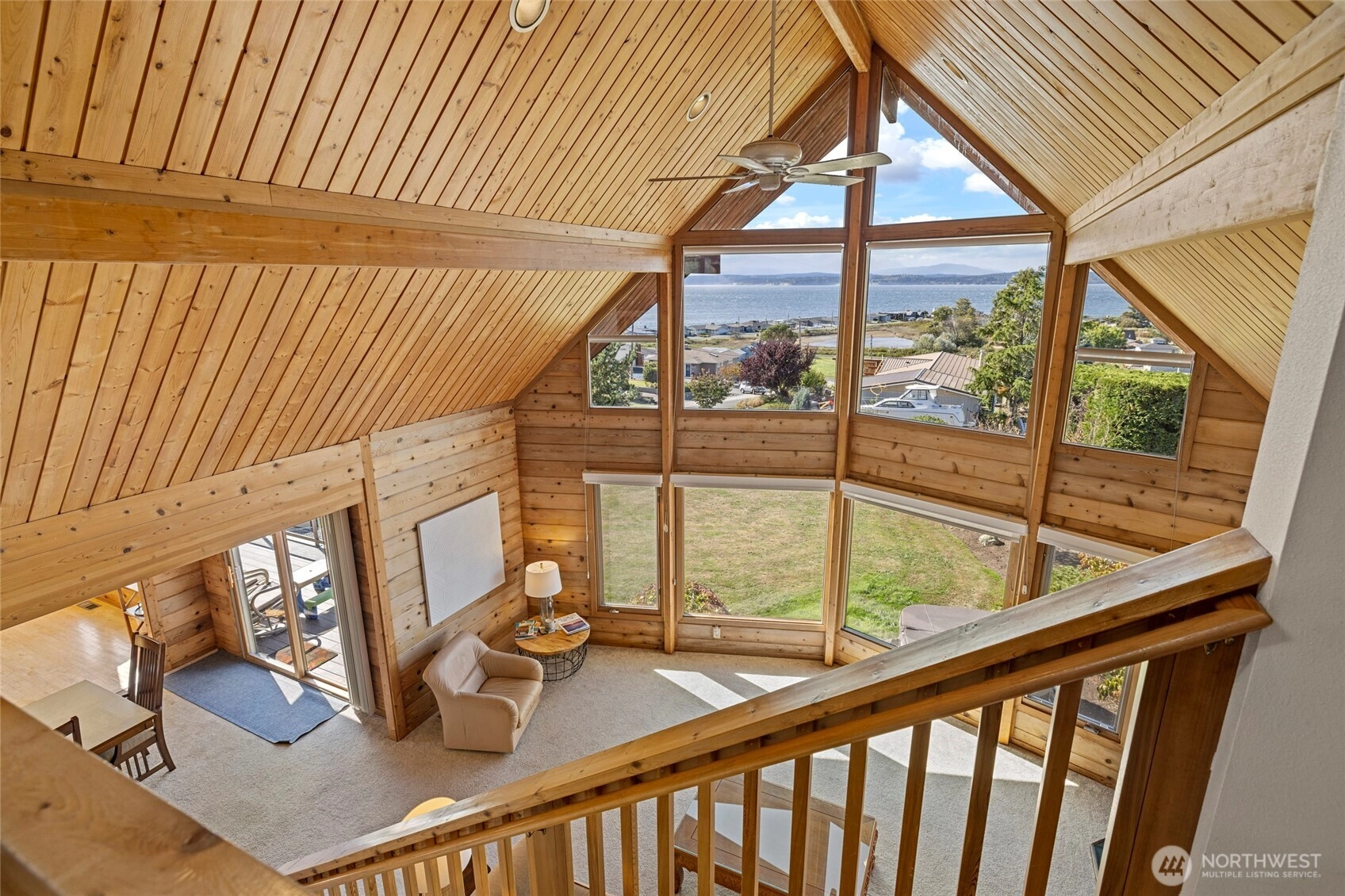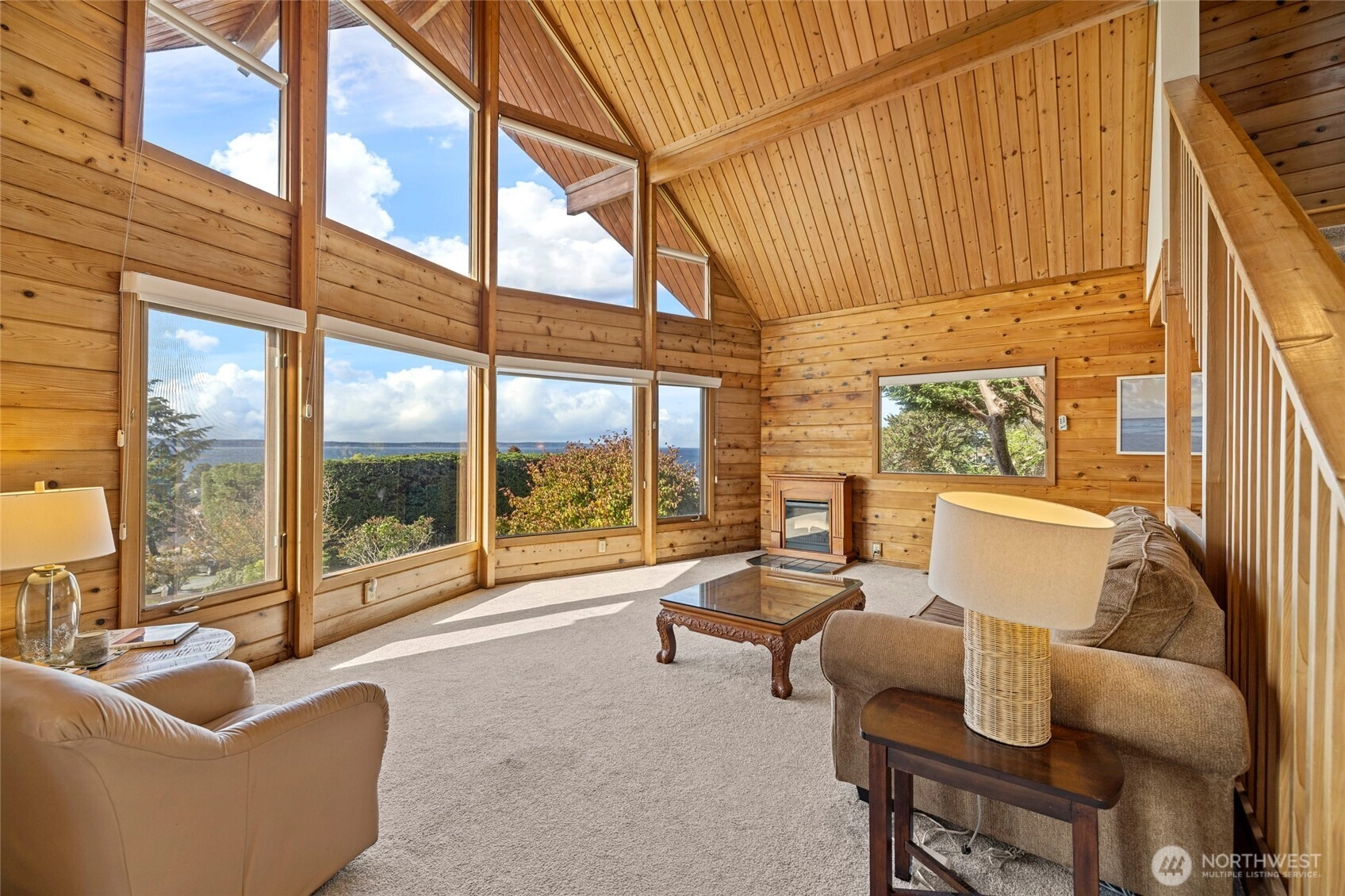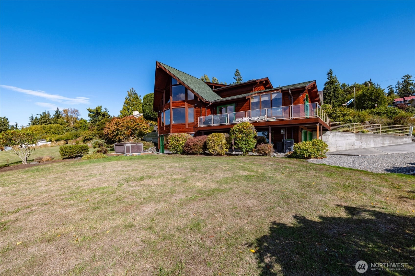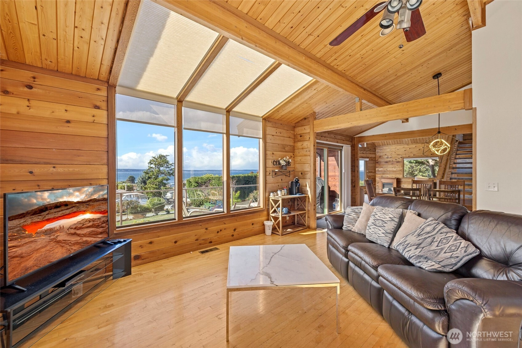 Looking for panoramic westside views of the shipping channel and Olympic Mountains? You’ll find them here in this stunning Lindal Cedar Home. Soaring prow windows & vaulted ceilings showcase the scenery with 180-degree views, while the spacious loft master suite offers a private retreat in additional to a bedroom on the main-floor. The lower level provides a versatile bonus/rec room plus an additional office, den, or sleeping area. Entertain with ease from the large open kitchen, relax on the expansive view deck, or soak in the hot tub while taking in the breathtaking surroundings. Upgrades include a new roof ('22), home was re-piped ('22), heat pump ('23), & a Kinetico Water Softener/Filter (2019). This is island living at its finest!