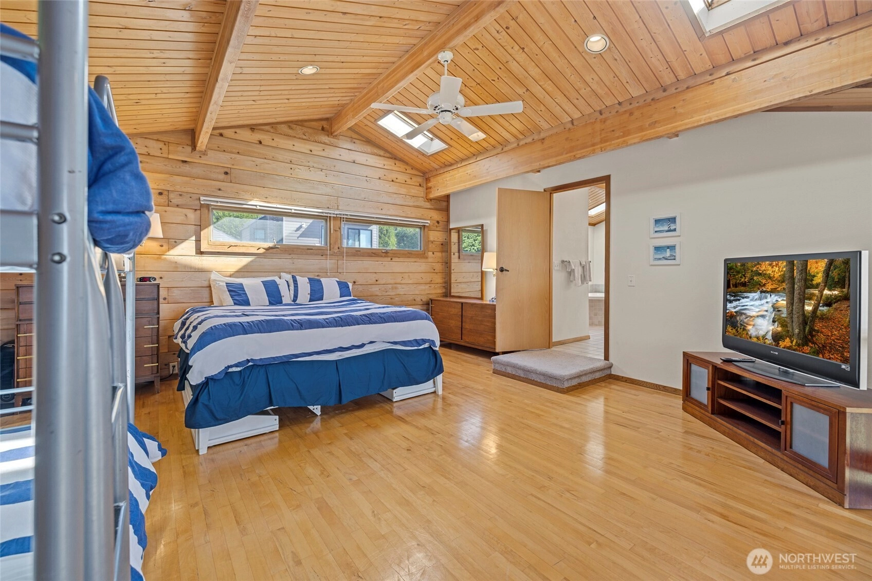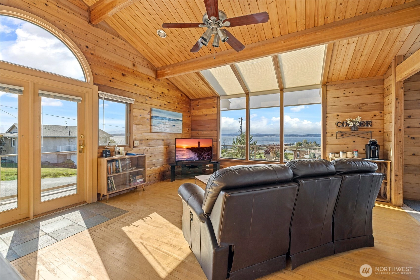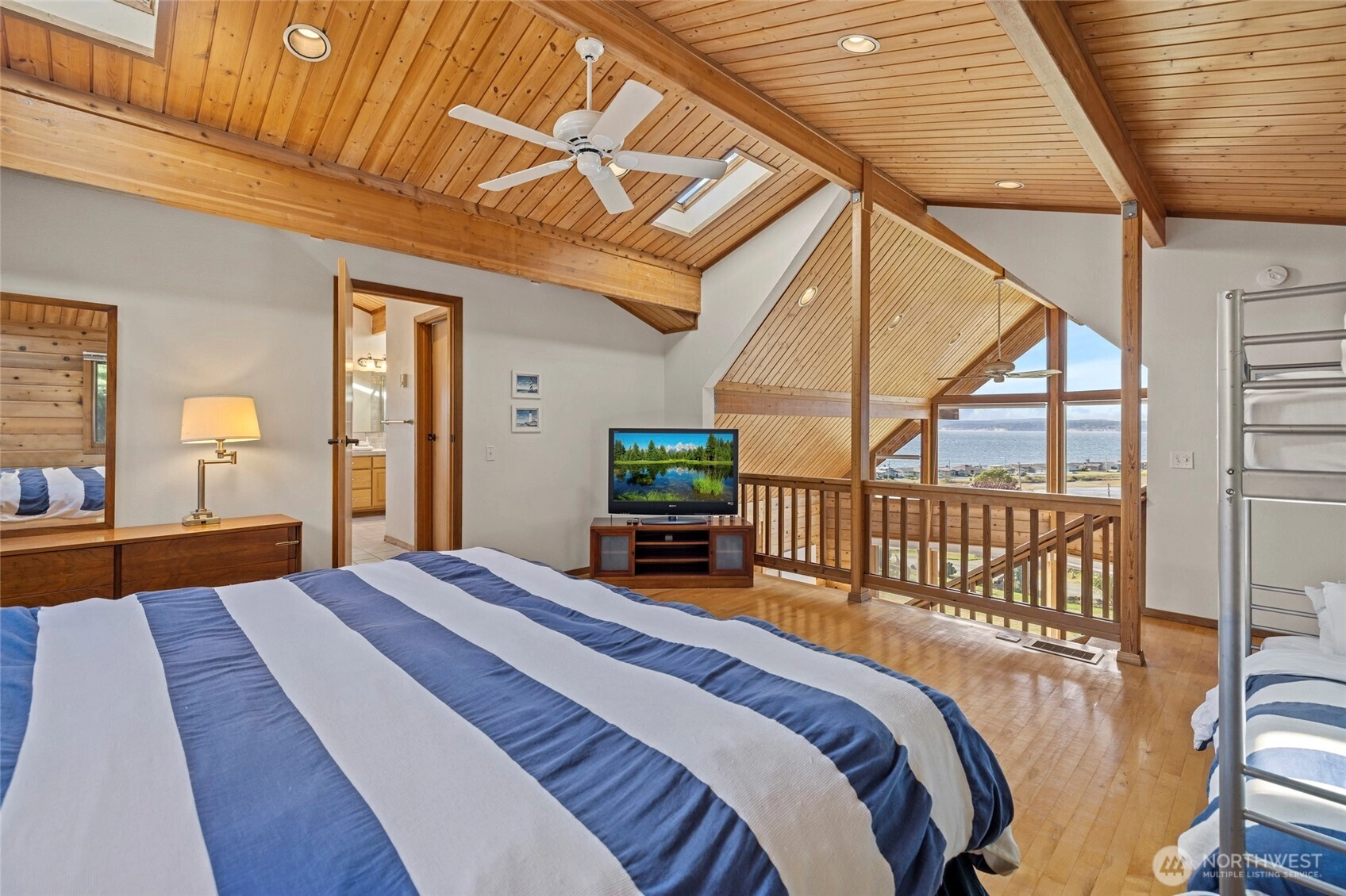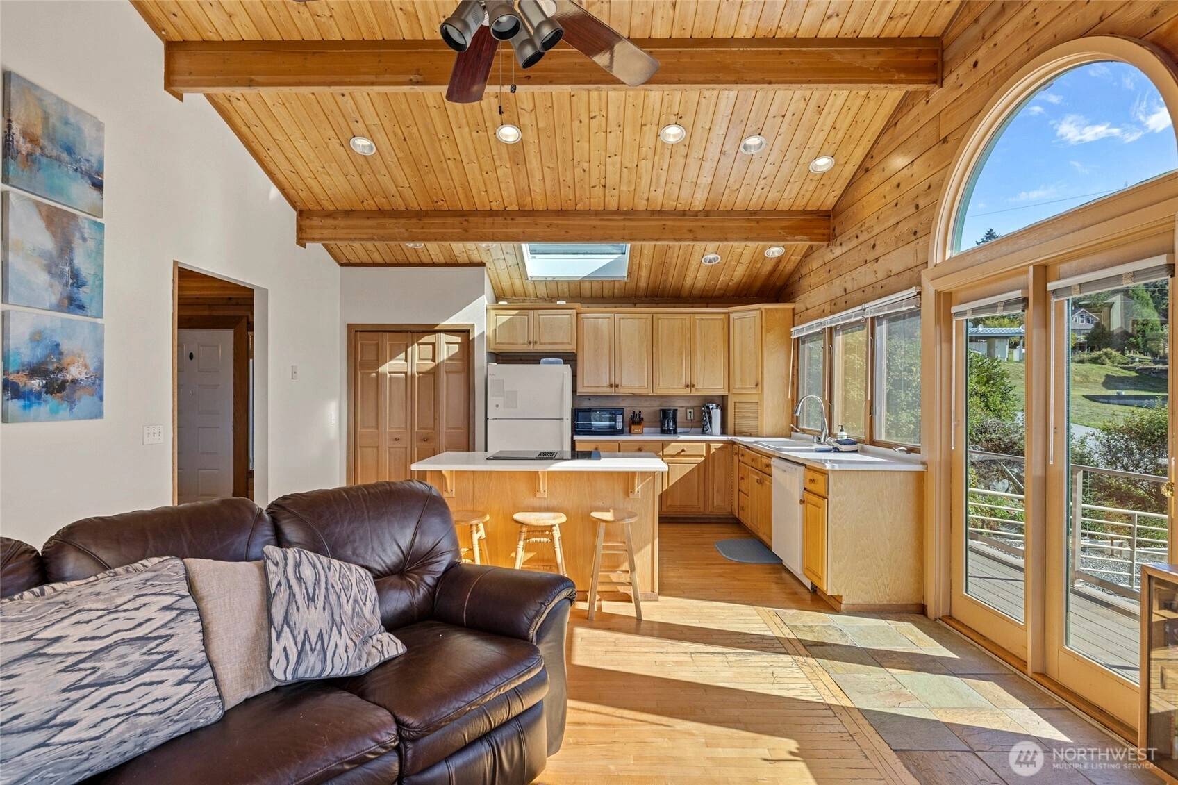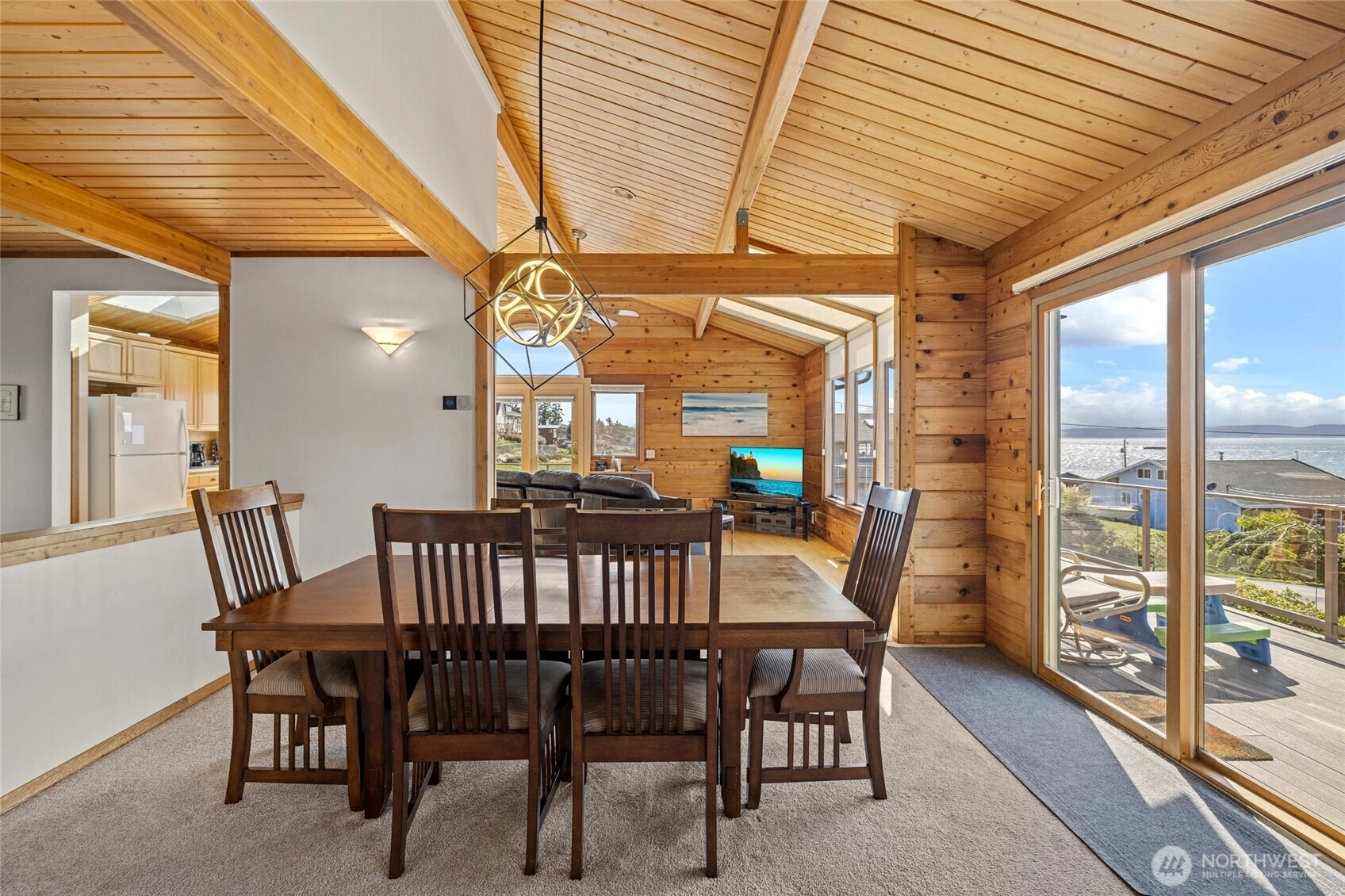 Looking for panoramic westside views of the shipping channel and Olympic Mountains? You’ll find them here in this stunning Lindal Cedar Home. Soaring prow windows & vaulted ceilings showcase the scenery with 180-degree views, while the spacious loft master suite offers a private retreat in additional to a bedroom on the main-floor. The lower level provides a versatile bonus/rec room plus an additional office, den, or sleeping area. Entertain with ease from the large open kitchen, relax on the expansive view deck, or soak in the hot tub while taking in the breathtaking surroundings. Upgrades include a new roof ('22), home was re-piped ('22), heat pump ('23), & a Kinetico Water Softener/Filter (2019). This is island living at its finest!