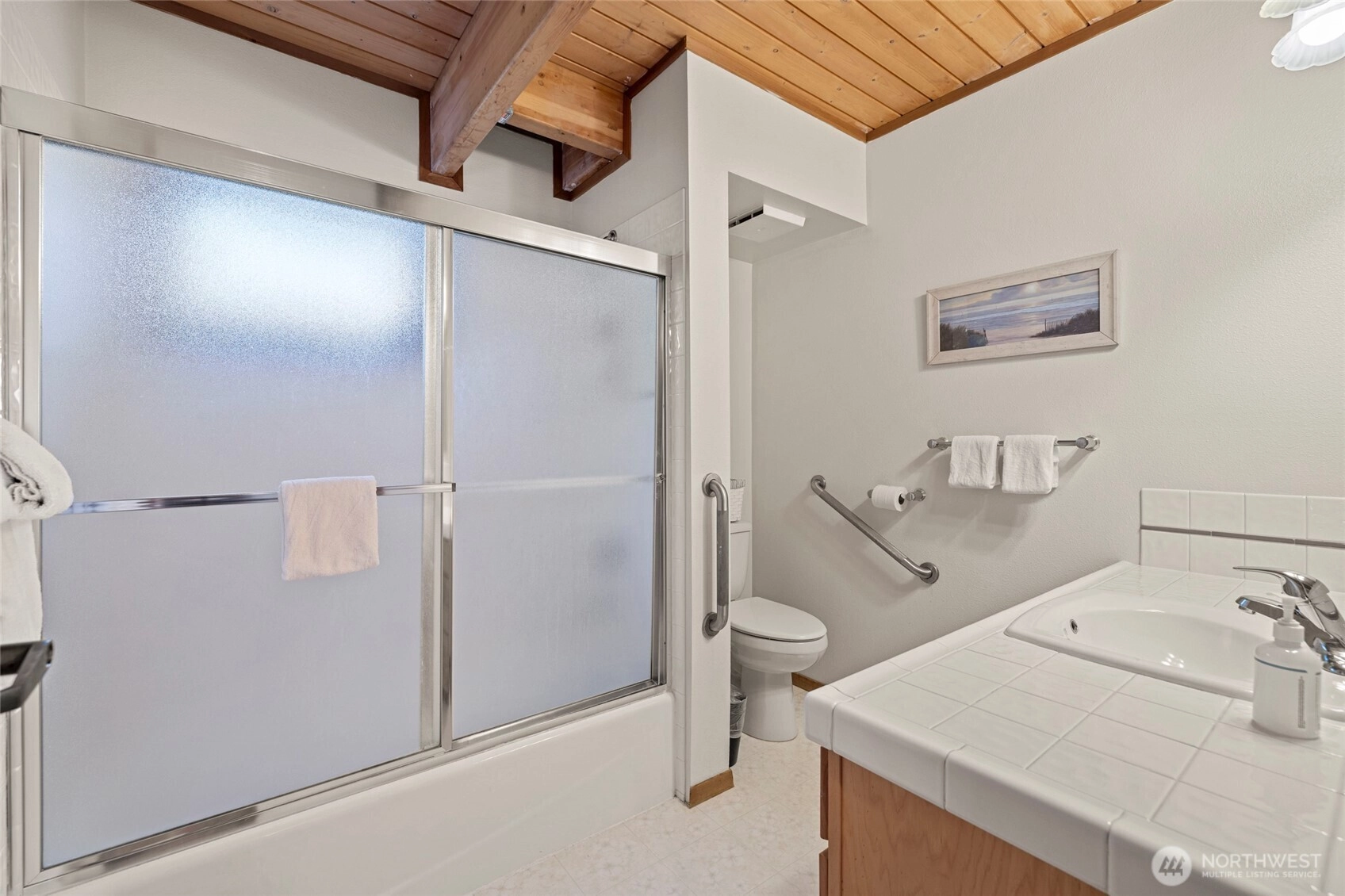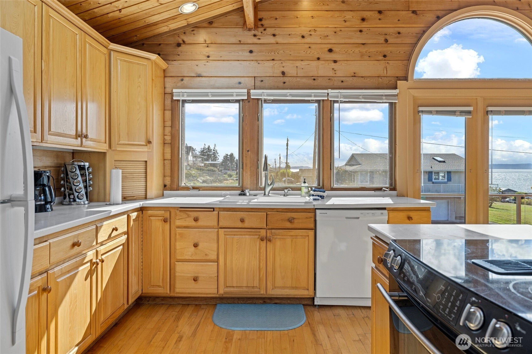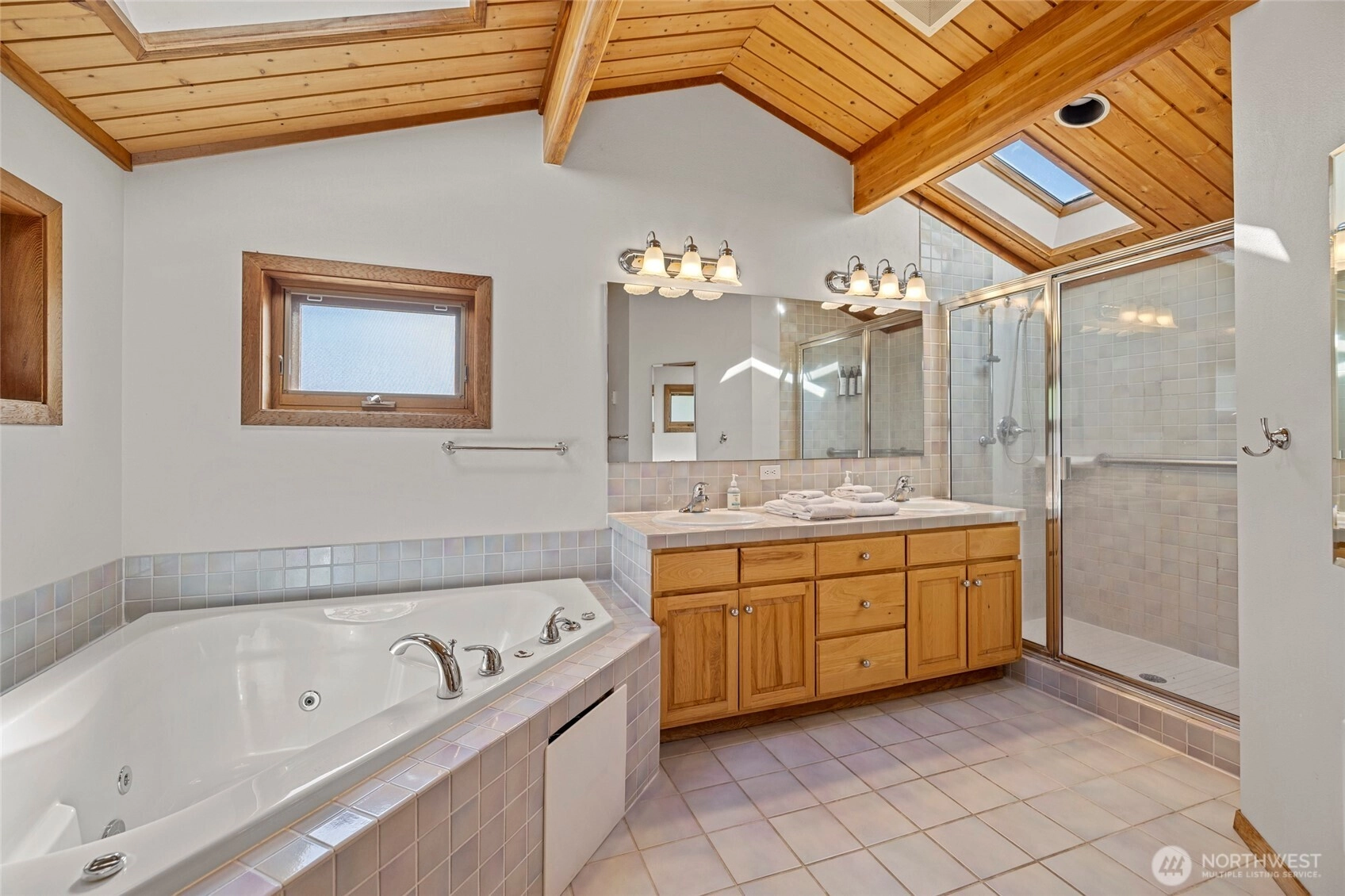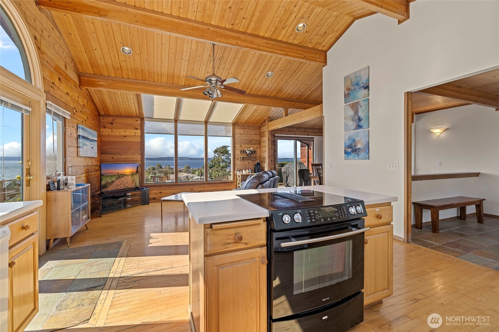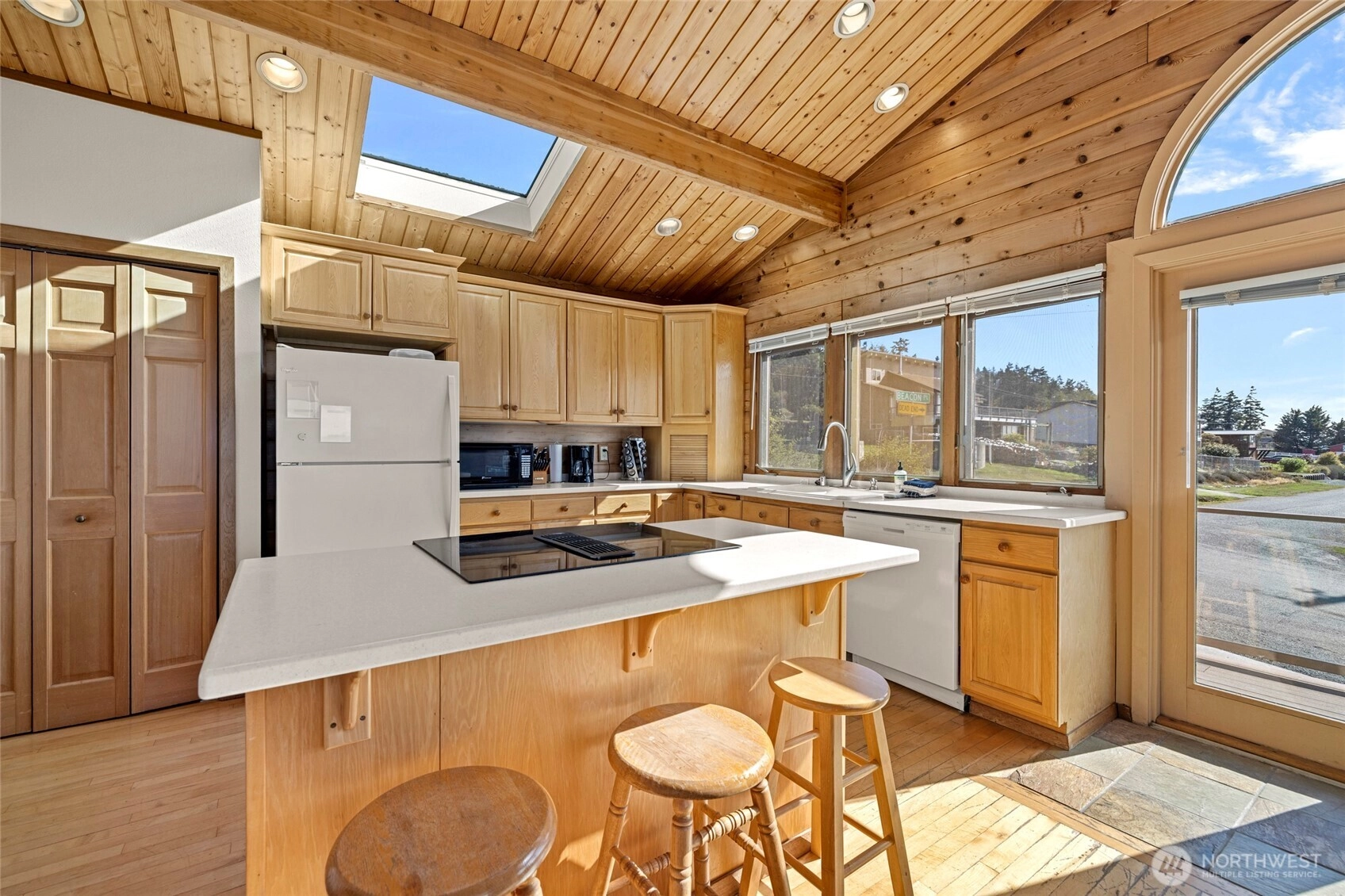 Looking for panoramic westside views of the shipping channel and Olympic Mountains? You’ll find them here in this stunning Lindal Cedar Home. Soaring prow windows & vaulted ceilings showcase the scenery with 180-degree views, while the spacious loft master suite offers a private retreat in additional to a bedroom on the main-floor. The lower level provides a versatile bonus/rec room plus an additional office, den, or sleeping area. Entertain with ease from the large open kitchen, relax on the expansive view deck, or soak in the hot tub while taking in the breathtaking surroundings. Upgrades include a new roof ('22), home was re-piped ('22), heat pump ('23), & a Kinetico Water Softener/Filter (2019). This is island living at its finest!