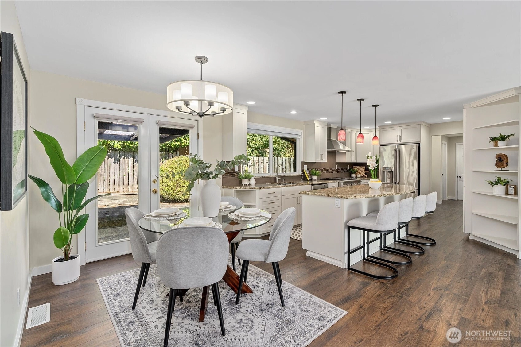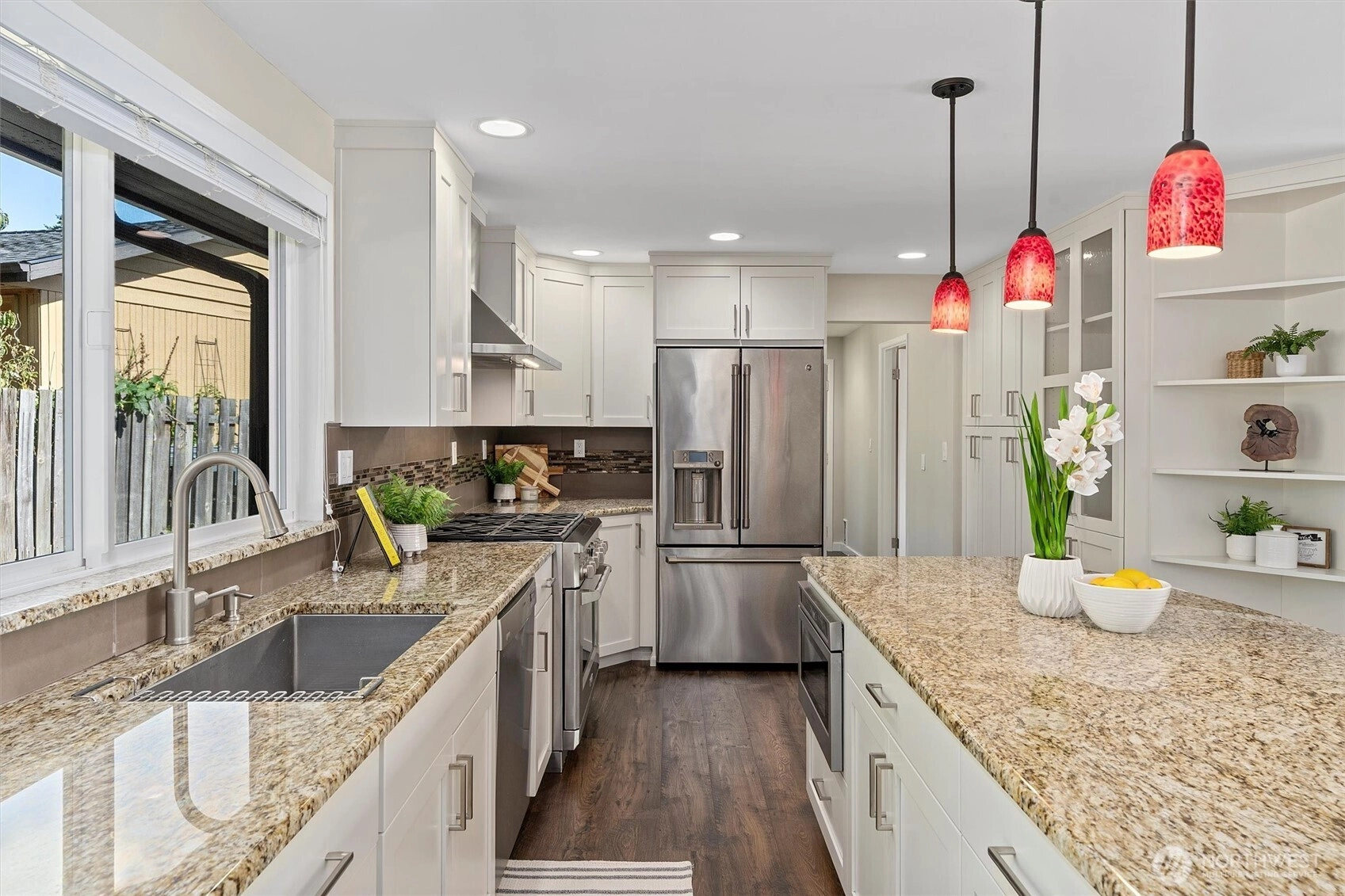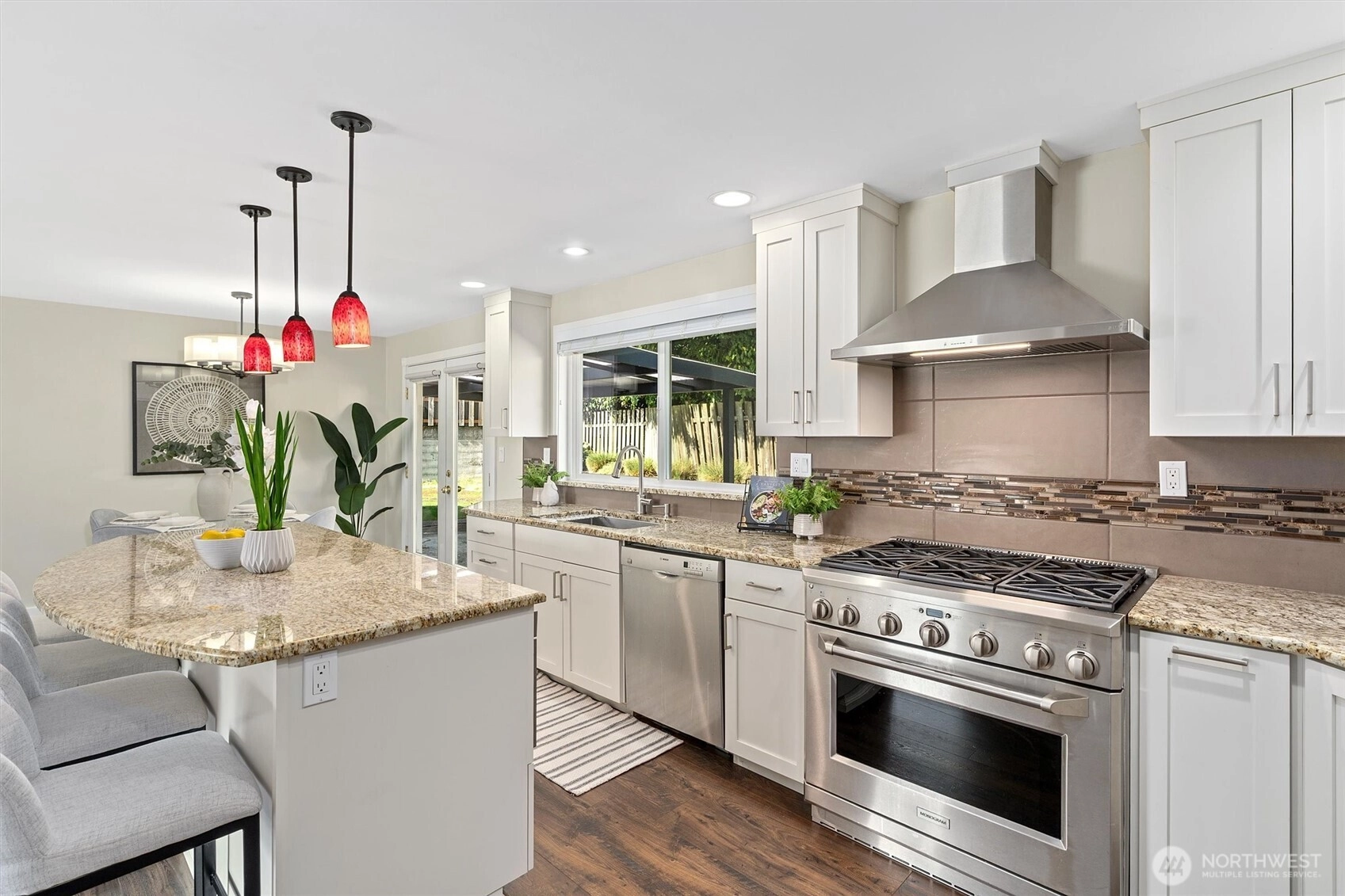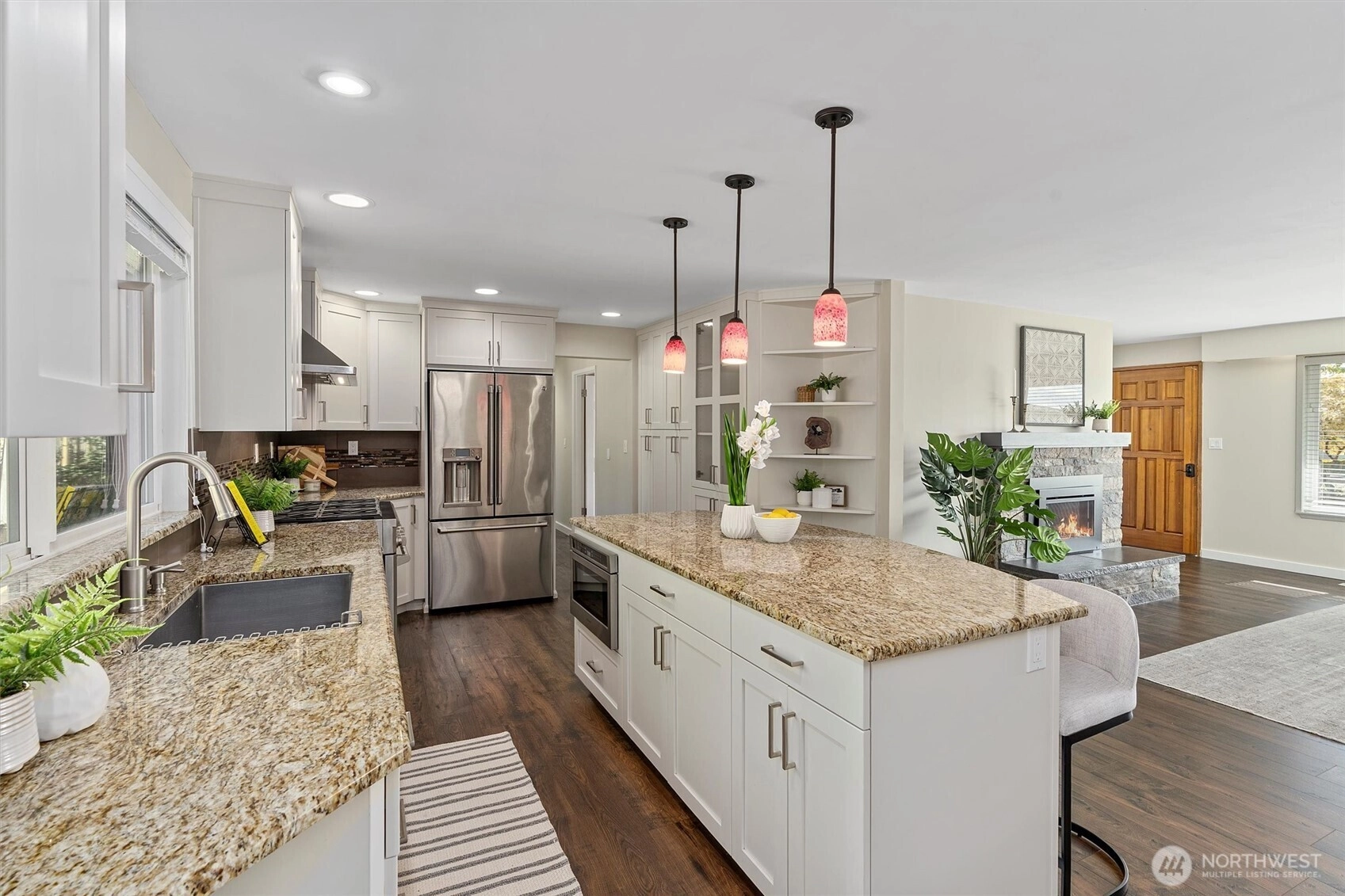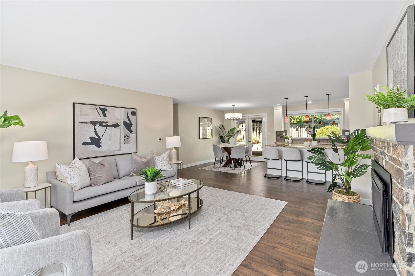 Impeccably maintained one-story rambler on a prominent corner lot in prestigious Uplake. This residence blends timeless updates with enduring quality: 2024 flooring, 2025 exterior paint & landscaping, a 2017 kitchen remodel with quartz counters & custom cabinetry, plus a newer furnace. Granite accents elevate kitchen & bath finishes, while the open floor plan flows seamlessly to a private backyard with covered patio. Oversized 2-car garage with RV parking. Pre-inspected and exceptionally well maintained. Residents enjoy access to the exclusive Aqua Club pool & tennis with effortless access to I-5, 405, and area amenities.