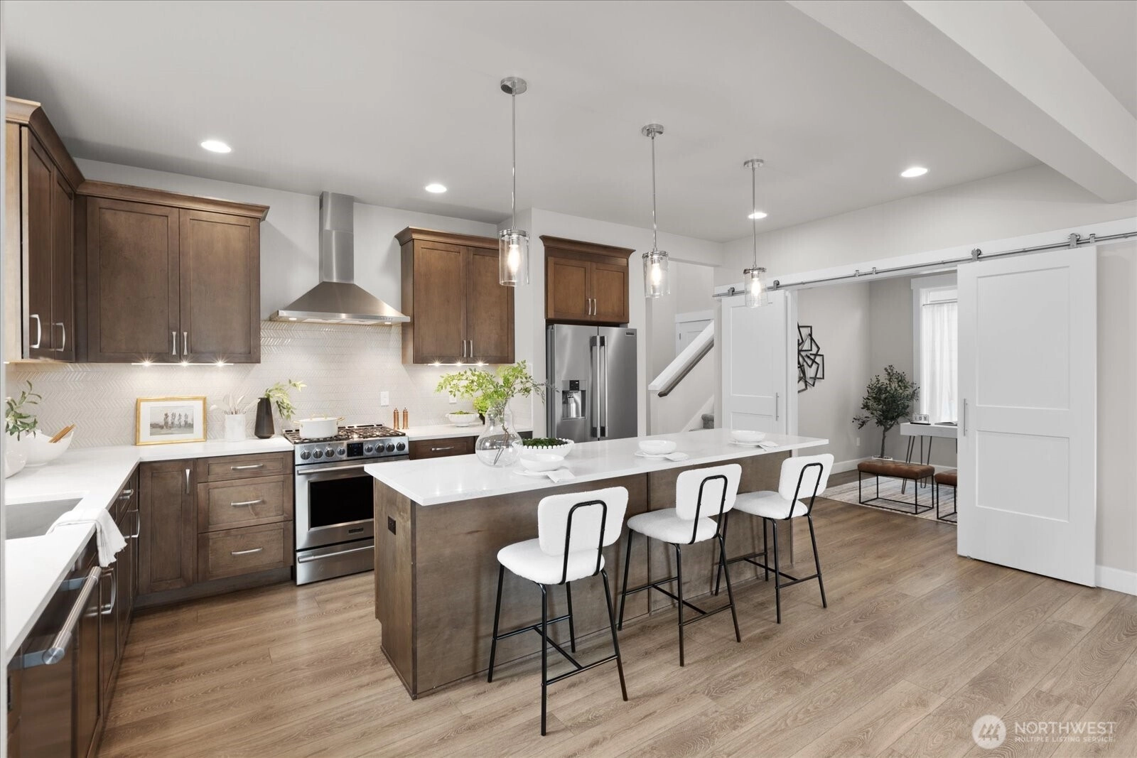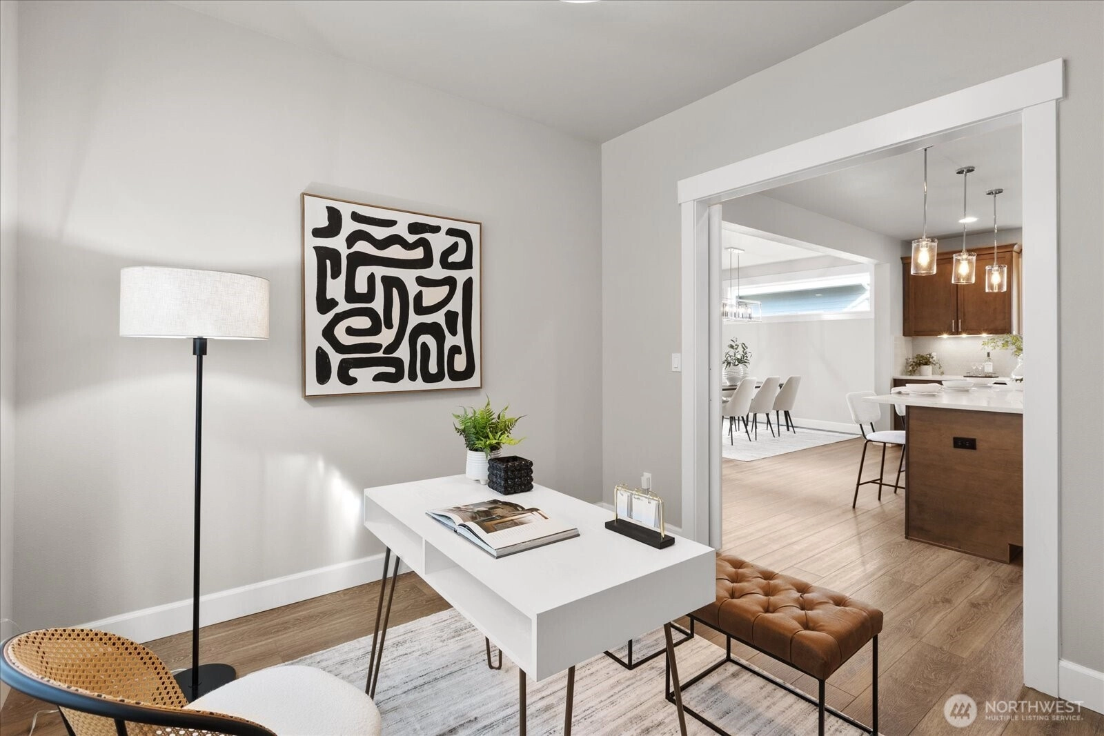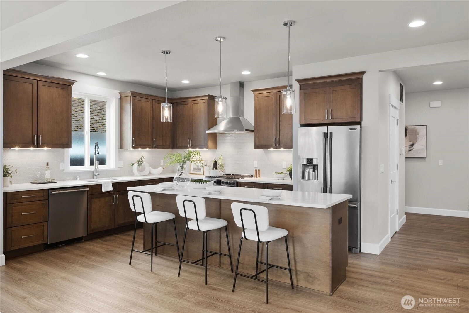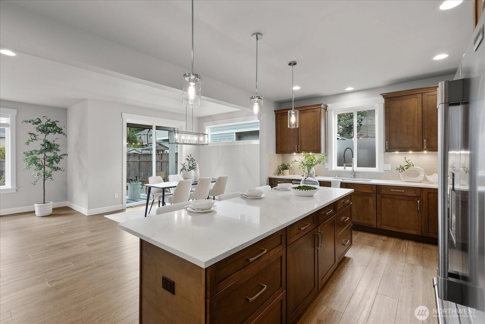 Modern luxury meets thoughtful design in this beautifully detailed home with an open great room layout. Upstairs you’ll find 4 bedrooms plus a versatile bonus room, while the main floor offers a private office/guest room and a spacious ¾ bath. The chef’s kitchen features quartz counters, an oversized island, large pantry, and seamless flow to the dining and living areas. Retreat to the king-sized primary suite with spa-inspired bath, heated floors, and a generous walk-in closet. Additional highlights include tiled baths with quartz finishes, luxury plank vinyl flooring, a covered patio, and a fully fenced, landscaped yard. Conveniently located minutes from the light rail, adjacent to Forest Crest Tennis Club and nearby parks.