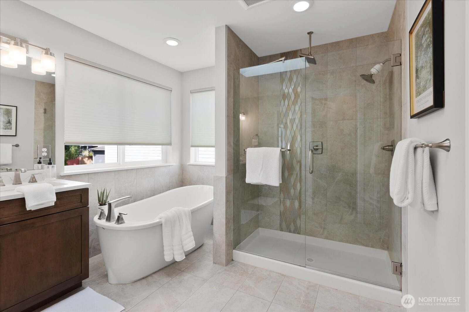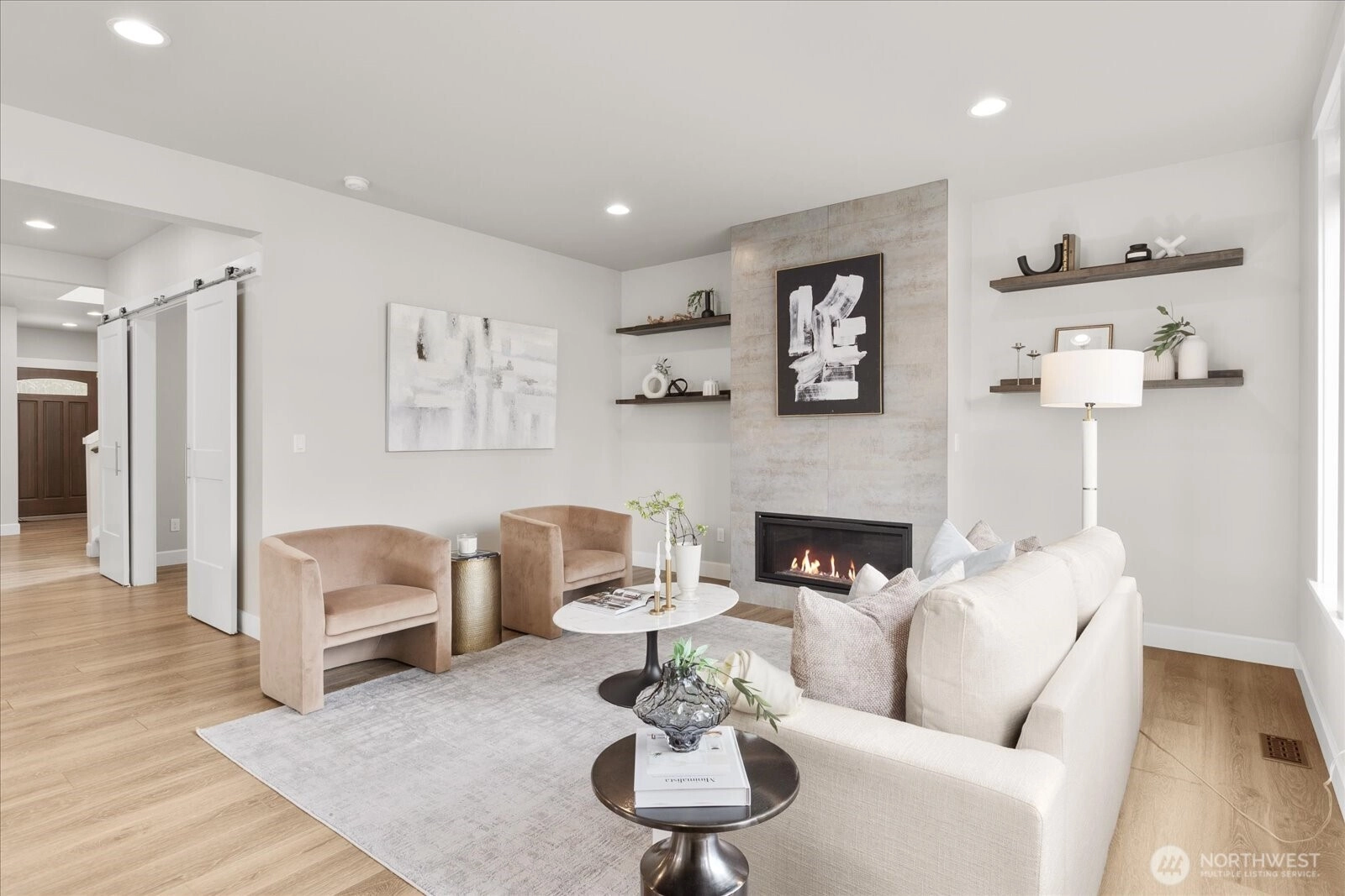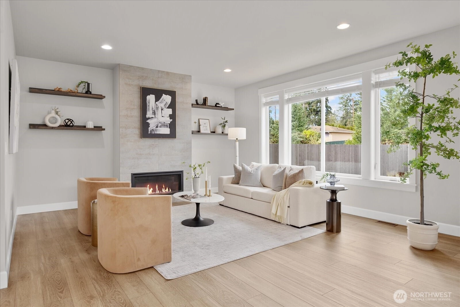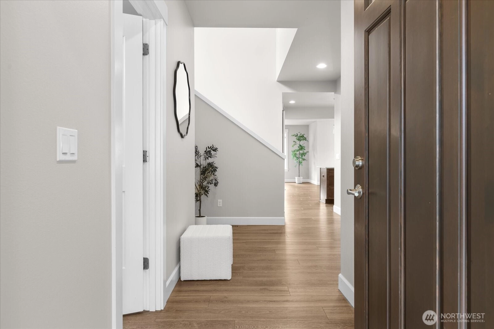 Modern luxury meets thoughtful design in this beautifully detailed home with an open great room layout. Upstairs you’ll find 4 bedrooms plus a versatile bonus room, while the main floor offers a private office/guest room and a spacious ¾ bath. The chef’s kitchen features quartz counters, an oversized island, large pantry, and seamless flow to the dining and living areas. Retreat to the king-sized primary suite with spa-inspired bath, heated floors, and a generous walk-in closet. Additional highlights include tiled baths with quartz finishes, luxury plank vinyl flooring, a covered patio, and a fully fenced, landscaped yard. Conveniently located minutes from the light rail, adjacent to Forest Crest Tennis Club and nearby parks.