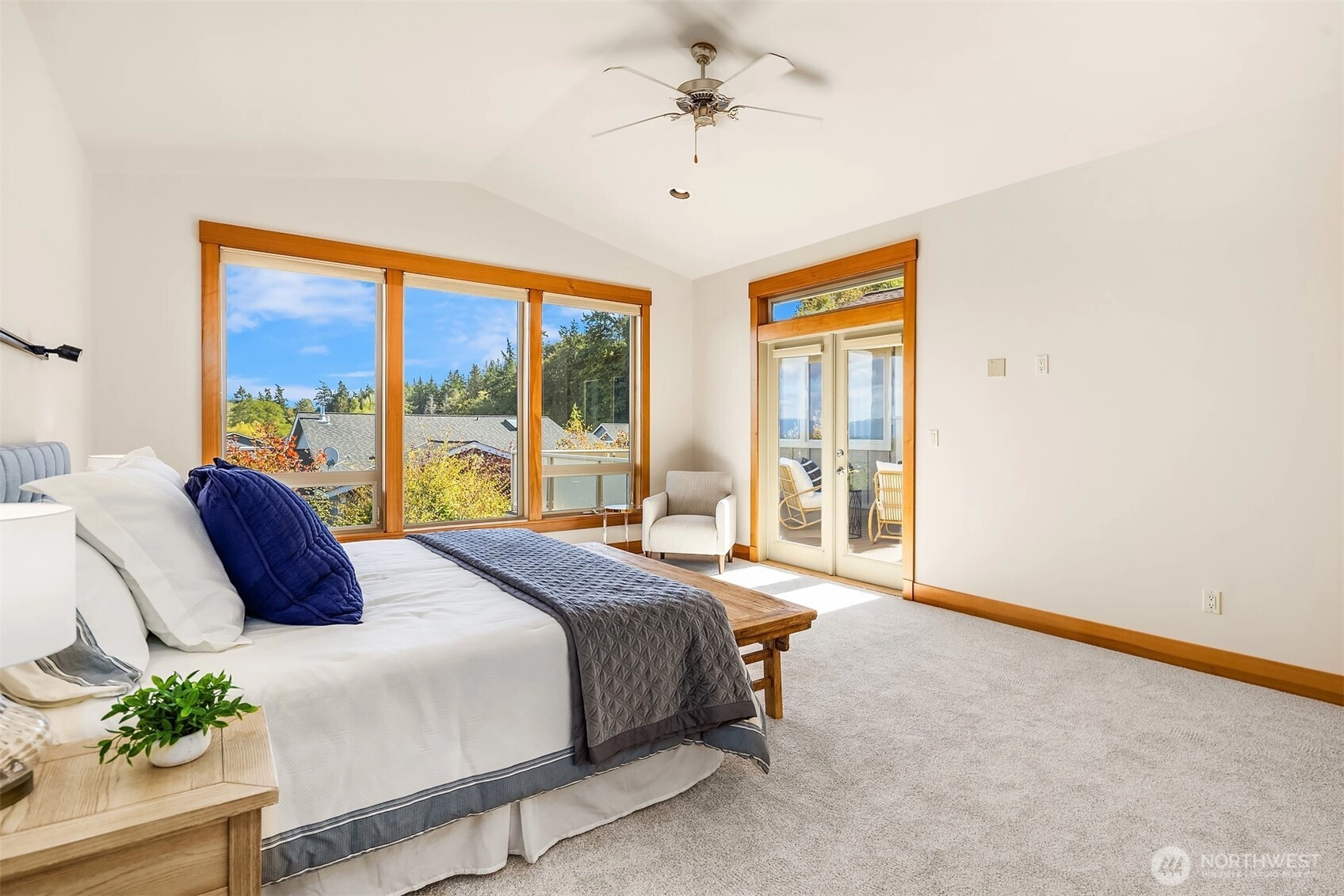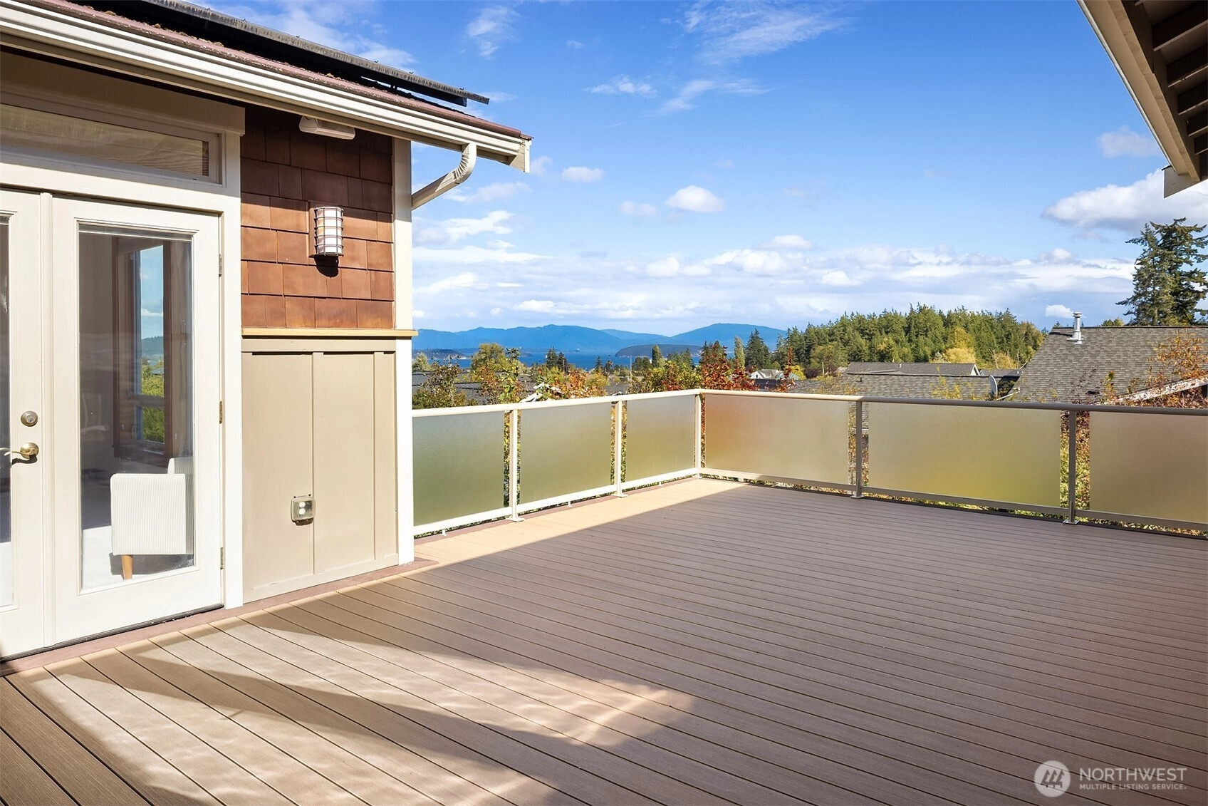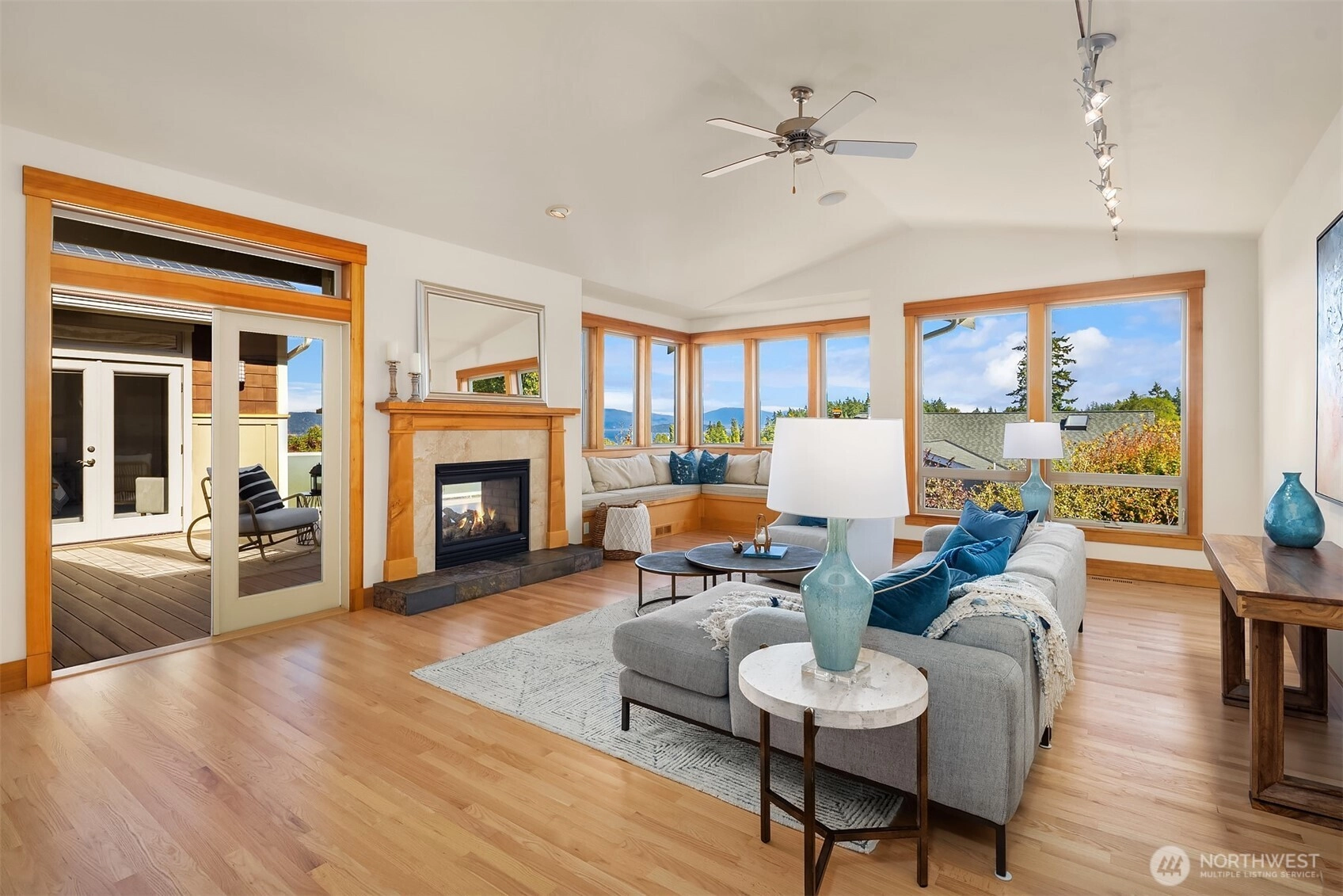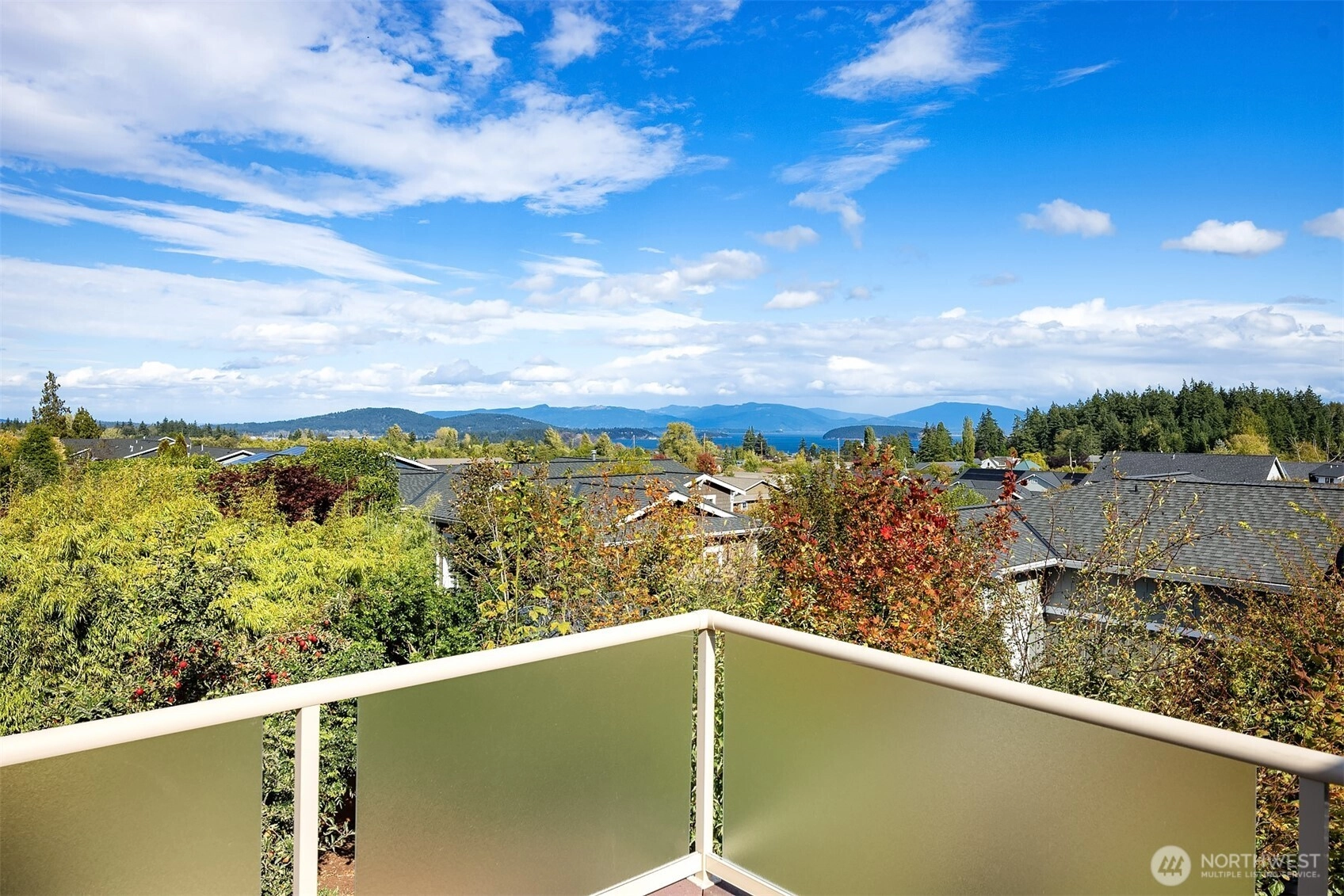 Sweeping bay and mountain views define this custom-built home, designed for one-level living. A rare unfinished high-ceiling basement offers endless potential for expansion. The private detached casita (ADU) provides flexible space for guests, live-in help, (or rental income?). Main floor highlights include a vaulted great room with open concept design, office/den with custom Murphy bed, and a separate family/TV room with fireplace and French doors. Deck accessible from great room, office and primary bedroom. Recent updates: refinished hardwoods, new carpet, fresh interior paint, and brand-new decking. Mature, low-maintenance landscaping with close access to community trailheads. Move-in Ready!