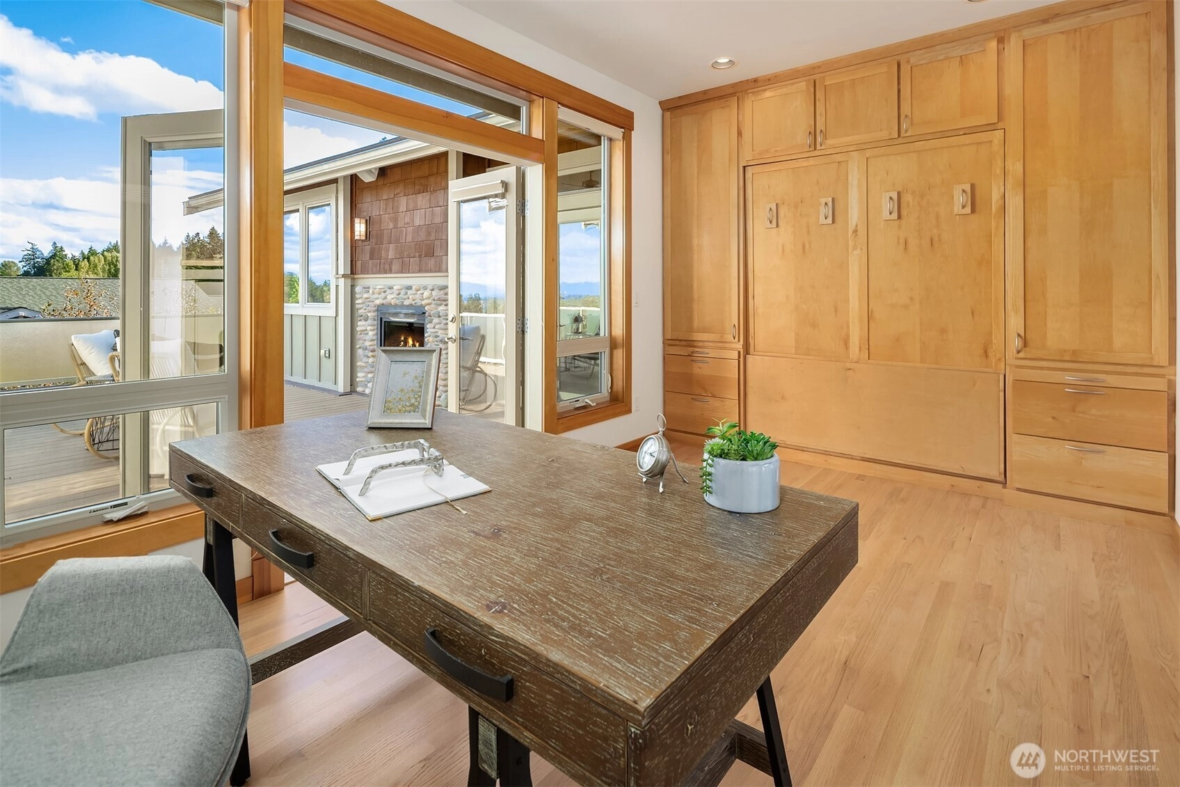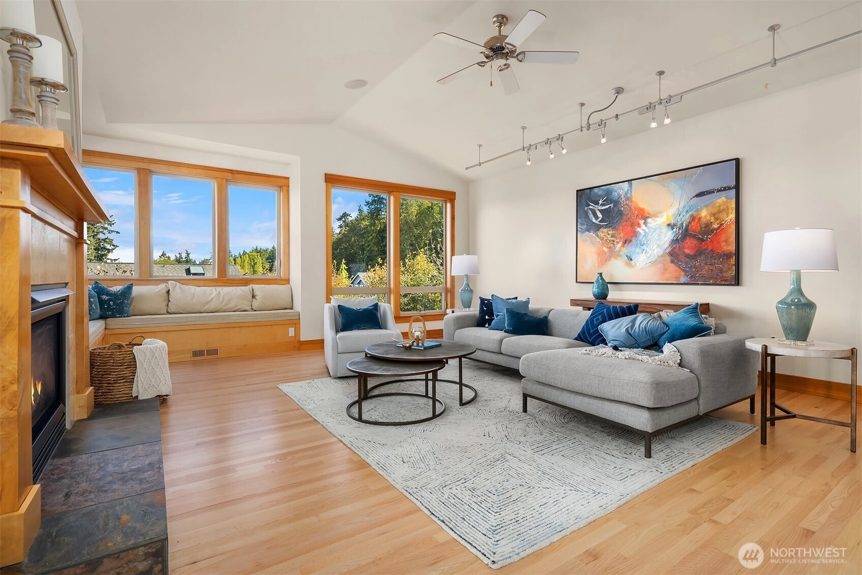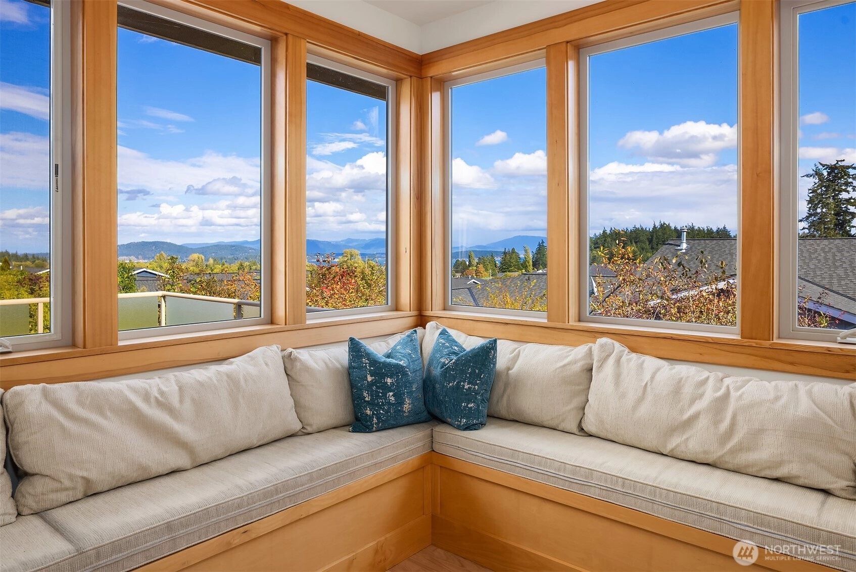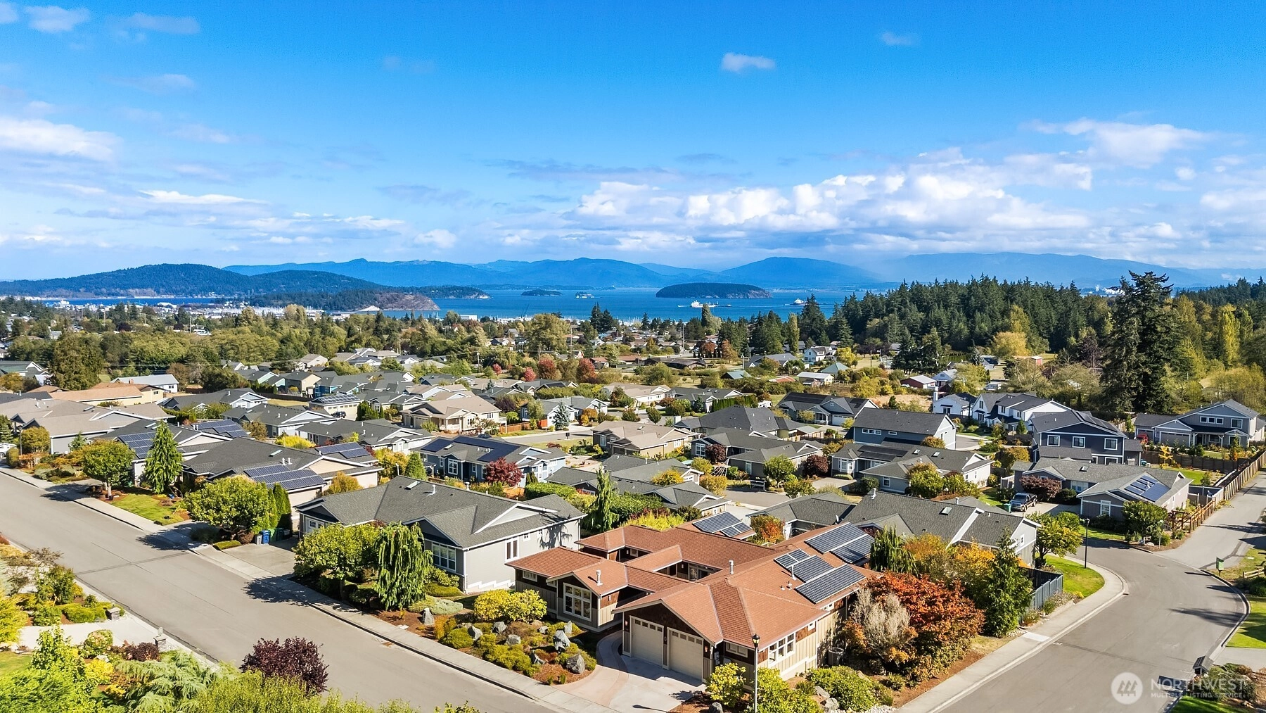 Sweeping bay and mountain views define this custom-built home, designed for one-level living. A rare unfinished high-ceiling basement offers endless potential for expansion. The private detached casita (ADU) provides flexible space for guests, live-in help, (or rental income?). Main floor highlights include a vaulted great room with open concept design, office/den with custom Murphy bed, and a separate family/TV room with fireplace and French doors. Deck accessible from great room, office and primary bedroom. Recent updates: refinished hardwoods, new carpet, fresh interior paint, and brand-new decking. Mature, low-maintenance landscaping with close access to community trailheads. Move-in Ready!