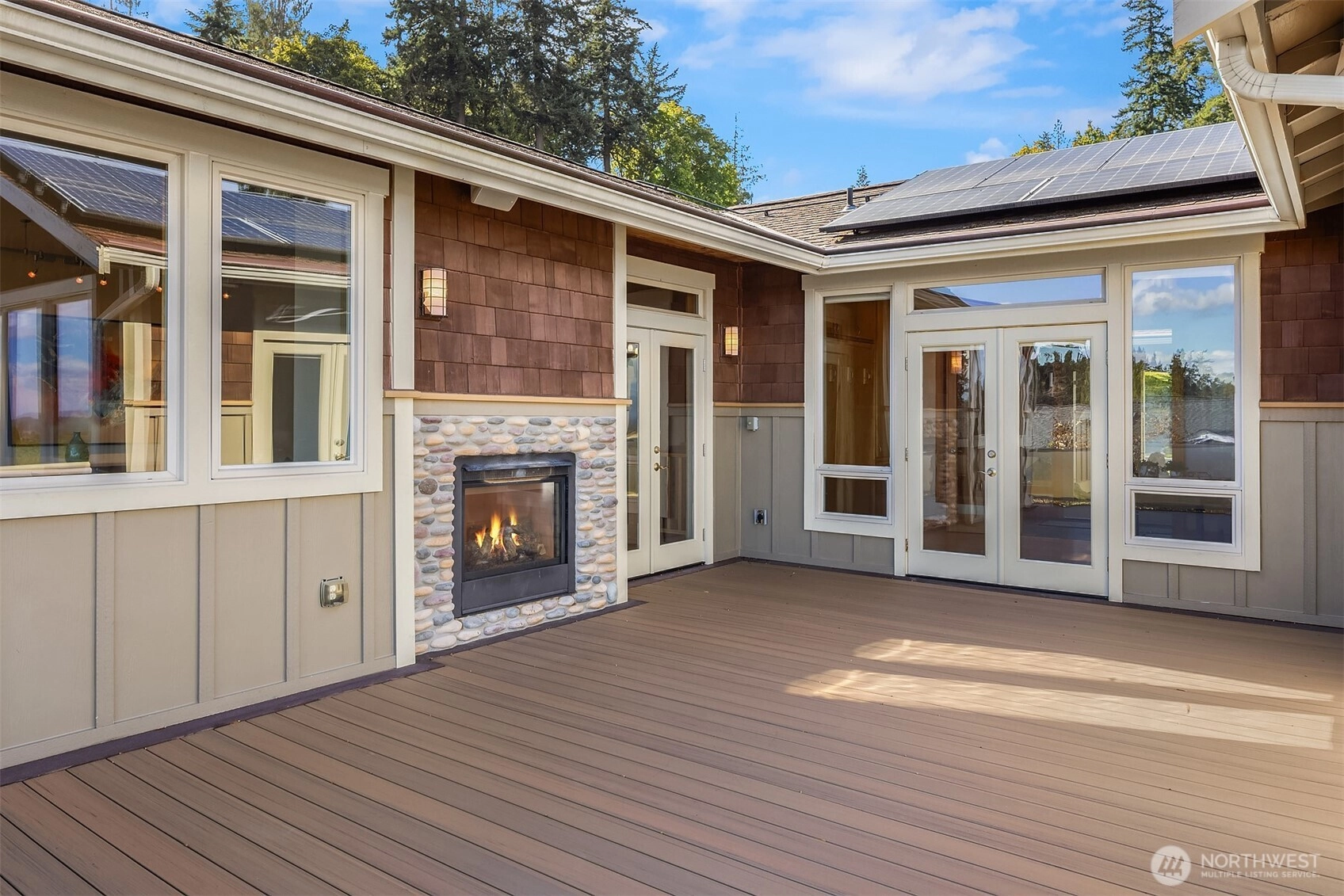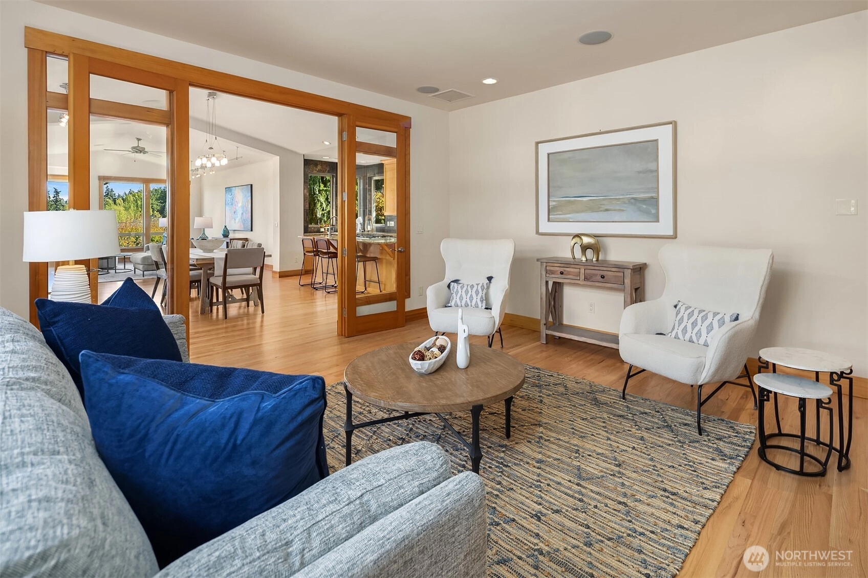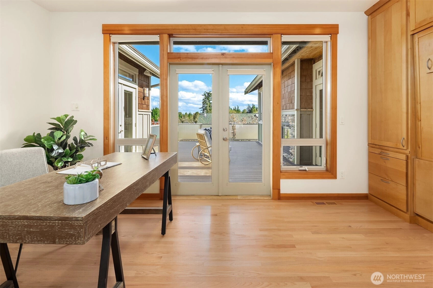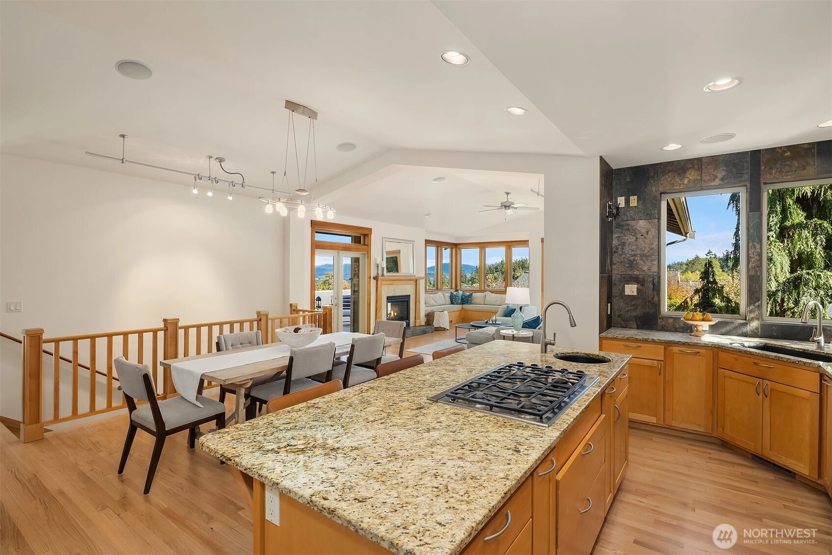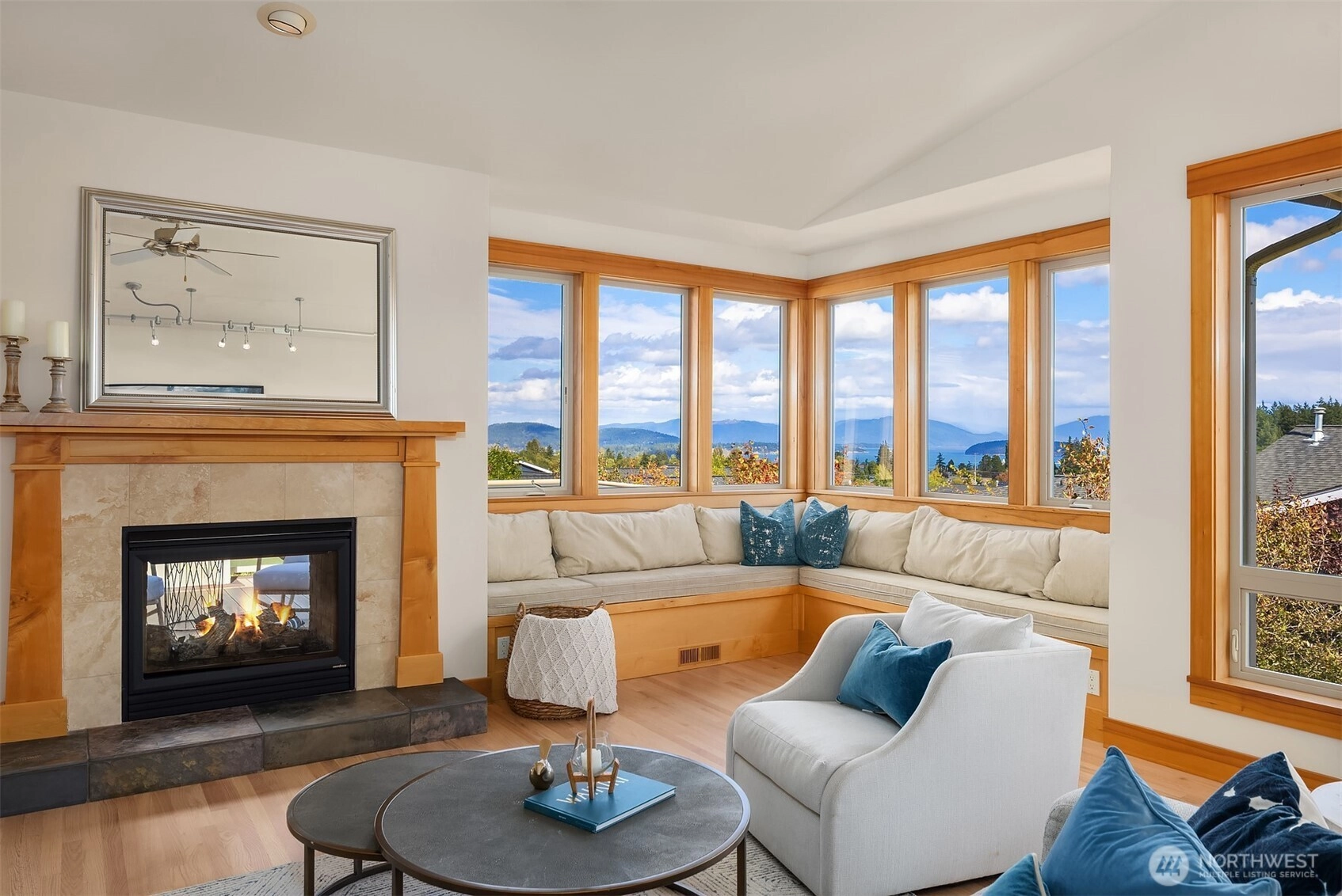 Sweeping bay and mountain views define this custom-built home, designed for one-level living. A rare unfinished high-ceiling basement offers endless potential for expansion. The private detached casita (ADU) provides flexible space for guests, live-in help, (or rental income?). Main floor highlights include a vaulted great room with open concept design, office/den with custom Murphy bed, and a separate family/TV room with fireplace and French doors. Deck accessible from great room, office and primary bedroom. Recent updates: refinished hardwoods, new carpet, fresh interior paint, and brand-new decking. Mature, low-maintenance landscaping with close access to community trailheads. Move-in Ready!
