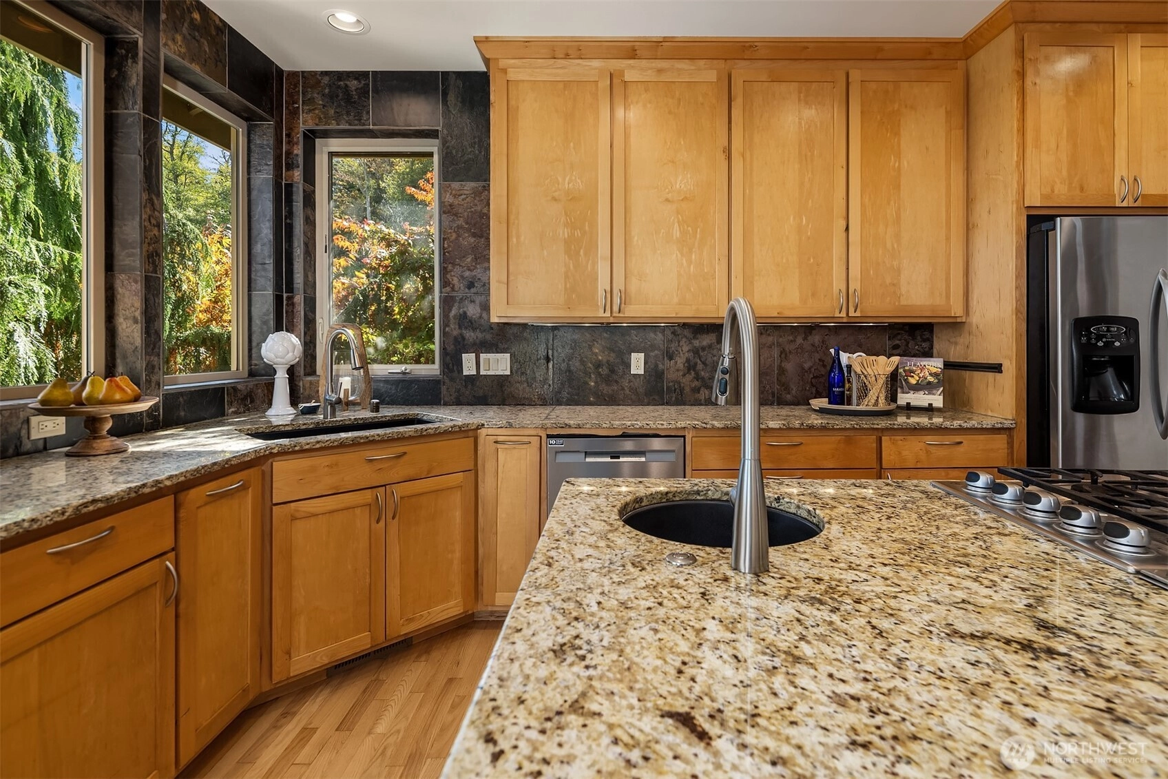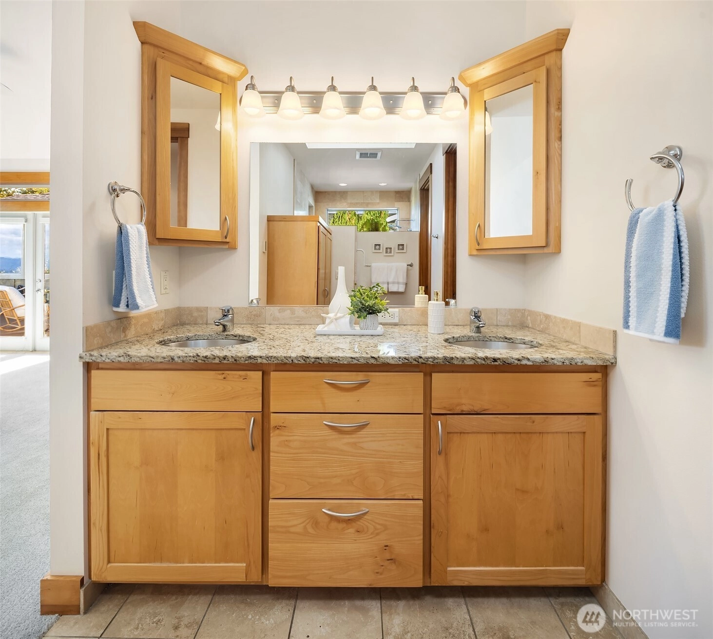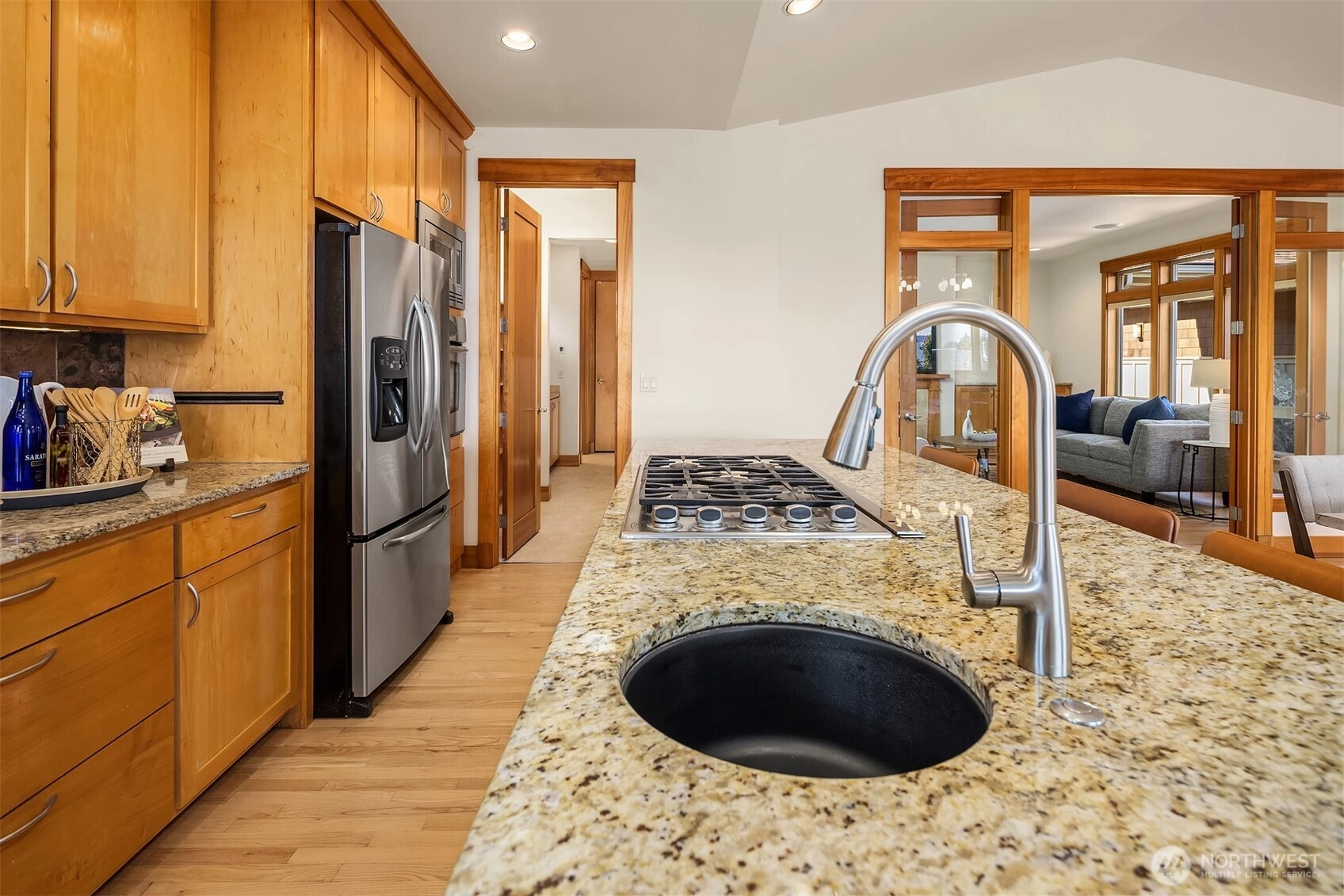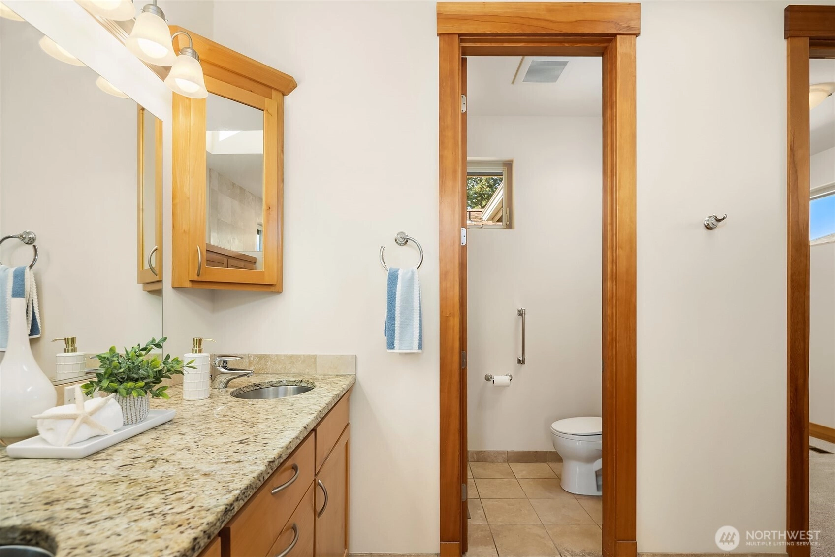 Sweeping bay and mountain views define this custom-built home, designed for one-level living. A rare unfinished high-ceiling basement offers endless potential for expansion. The private detached casita (ADU) provides flexible space for guests, live-in help, (or rental income?). Main floor highlights include a vaulted great room with open concept design, office/den with custom Murphy bed, and a separate family/TV room with fireplace and French doors. Deck accessible from great room, office and primary bedroom. Recent updates: refinished hardwoods, new carpet, fresh interior paint, and brand-new decking. Mature, low-maintenance landscaping with close access to community trailheads. Move-in Ready!