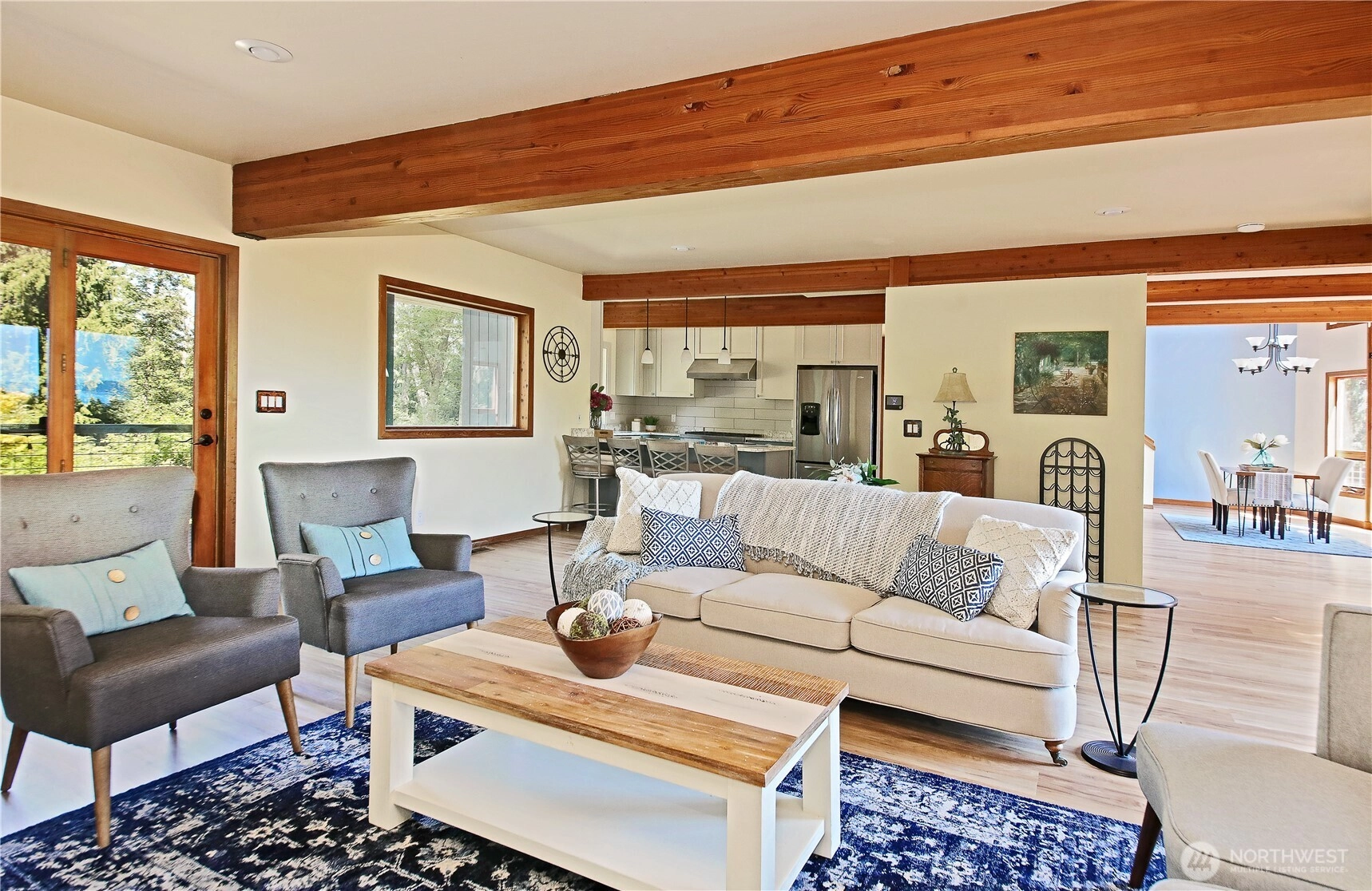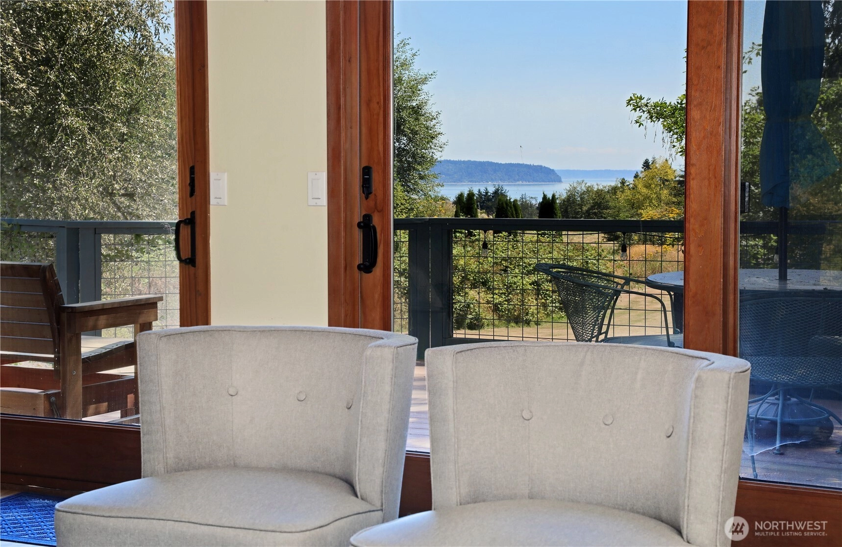 Two separate beautiful homes set on a stunning Whidbey Property close to Double Bluff Beach. Short term rent one, live in the other. The main home, a Contemporary Lindal Cedar home, Mt. Rainier & City views from every window & true wrap around deck. The spacious main floor boasts a tastefully renovated kitchen, floor to ceiling windows, great room w/ wood stove, dining area w/vaulted ceilings & an office. Upstairs is a master suite, 2 bedrooms, + flex area. A separate suite below with full bath & private entrance. The Cottage, A 2018 built 3 bedroom, 2 bath, 1000+/-sf custom DADU is placed in the sun next to the custom 2 stall barn w/ loft. Mature cedars, orchards, trails, all placed thoughtfully on the beautifully wooded acres 5 ± acres.