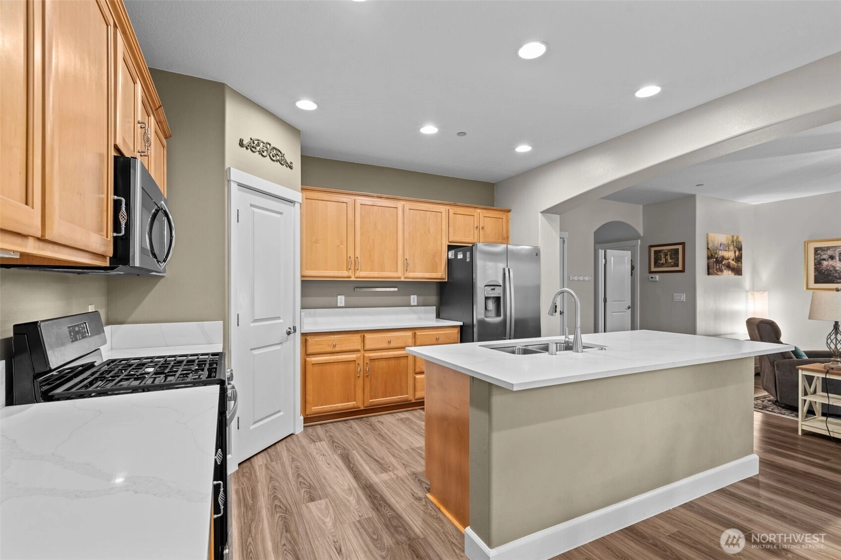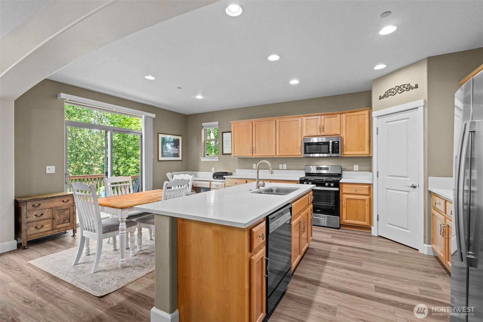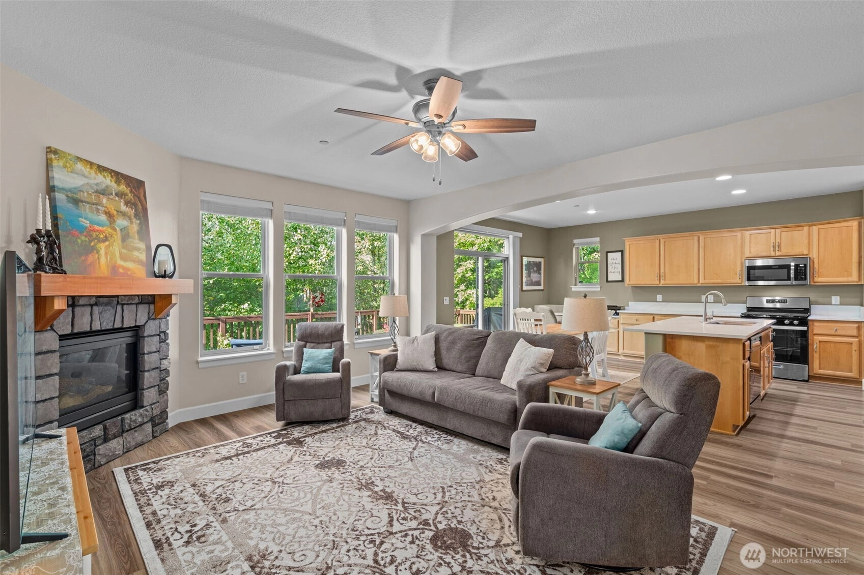 Nestled in the sought-after Camas community of StoneLeaf, this updated 3 bed, 2.5 bath home combines charm and modern living. Tucked away at the end of a dead-end road, this serene retreat offers both tranquility and exclusivity. The home offers significant updates, including a new roof, interior and exterior paint, LVP flooring, and kitchen countertops and appliances. An open-concept layout creates a seamless flow, perfectly suited for comfortable living and entertaining. The extra-large primary is a true sanctuary, complete with a balcony and sitting area. Outside, the fenced, low-maintenance backyard has a spacious deck overlooking a greenbelt, providing the ultimate private escape. The HOA takes care of front yard landscaping.
