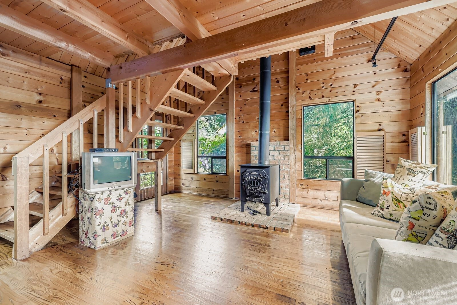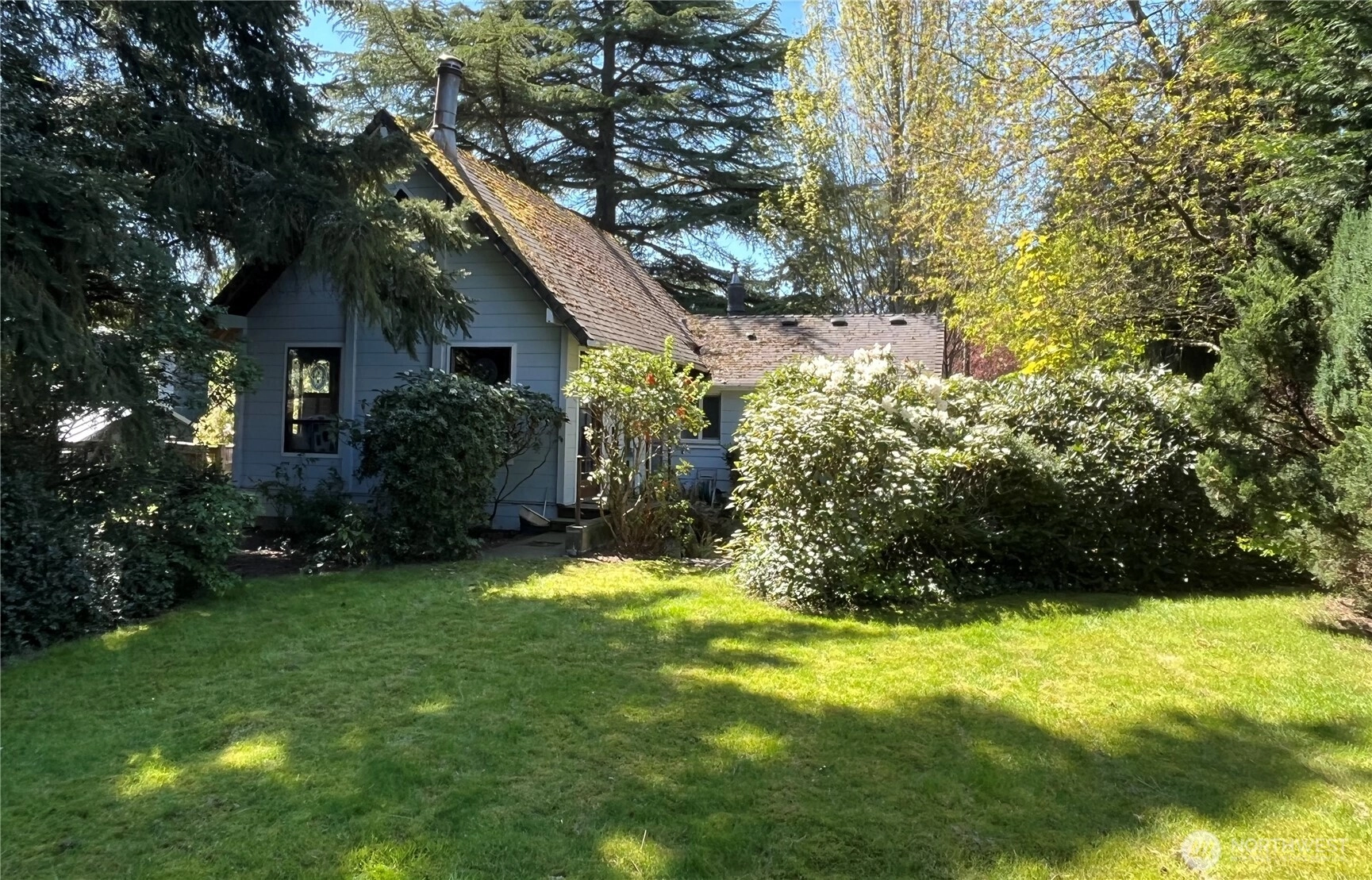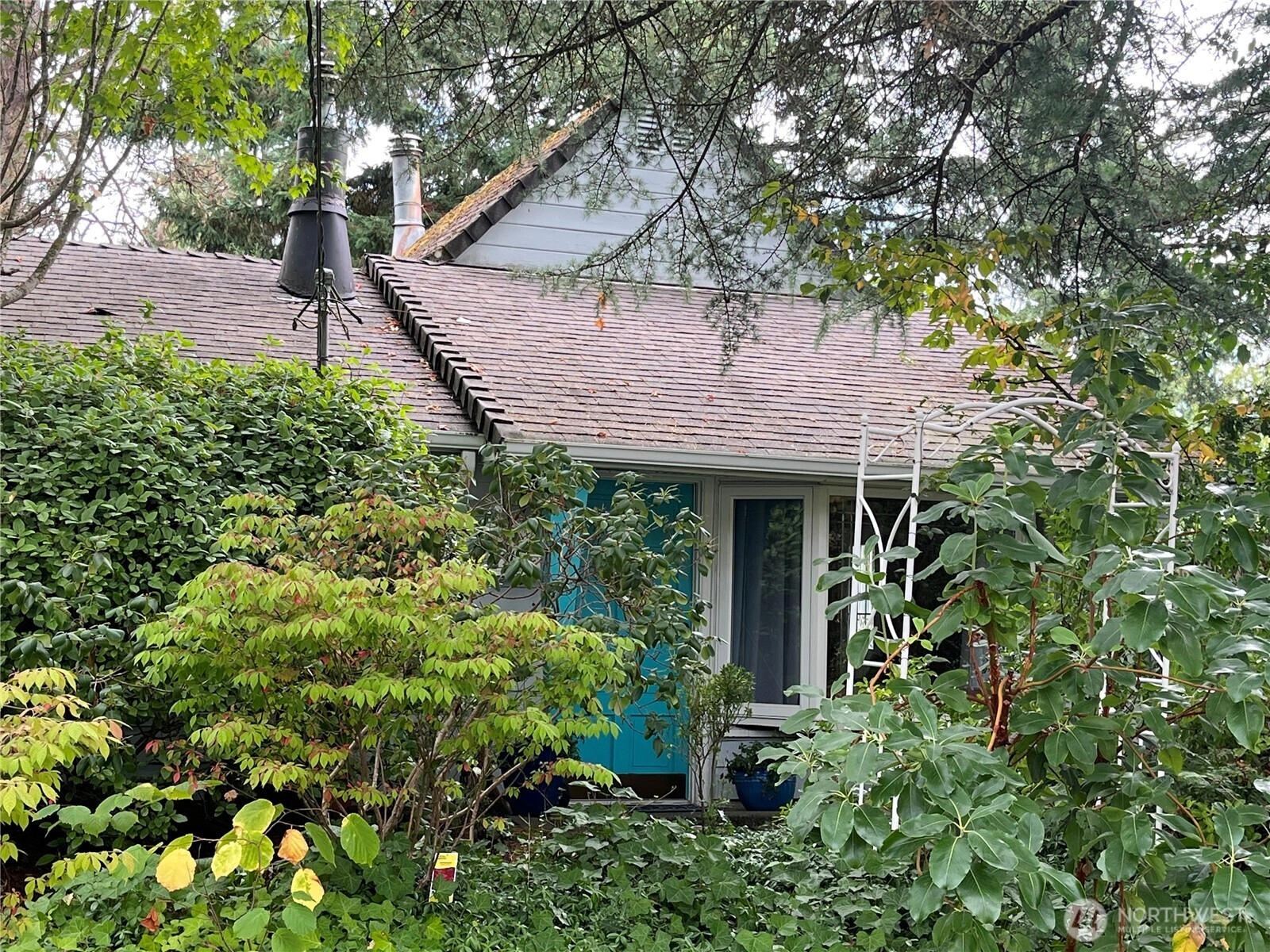 RARE OPPORTUNITY! Charming house at a GREAT PRICE!! DISCOVER this 2-bedroom 1-bath house nestled away among mature vegetation in a quiet neighborhood. The A-framed chalet-style addition features an upper-story loft with access to roomy storage. The garage allows for one vehicle or workspace. There is plenty of parking in front of the house. The treed backyard gives you privacy and space to entertain. The living room bay window with special prism glass adds artistic charm. A pellet stove gives extra heat. Enjoy the decorative marble floor in the bathroom. The knotty-pine walls give a homey, comfortable feel. By the way, light rail is only a 10-minute walk and grocery shopping is nearby with no need to make a trek on the freeway.