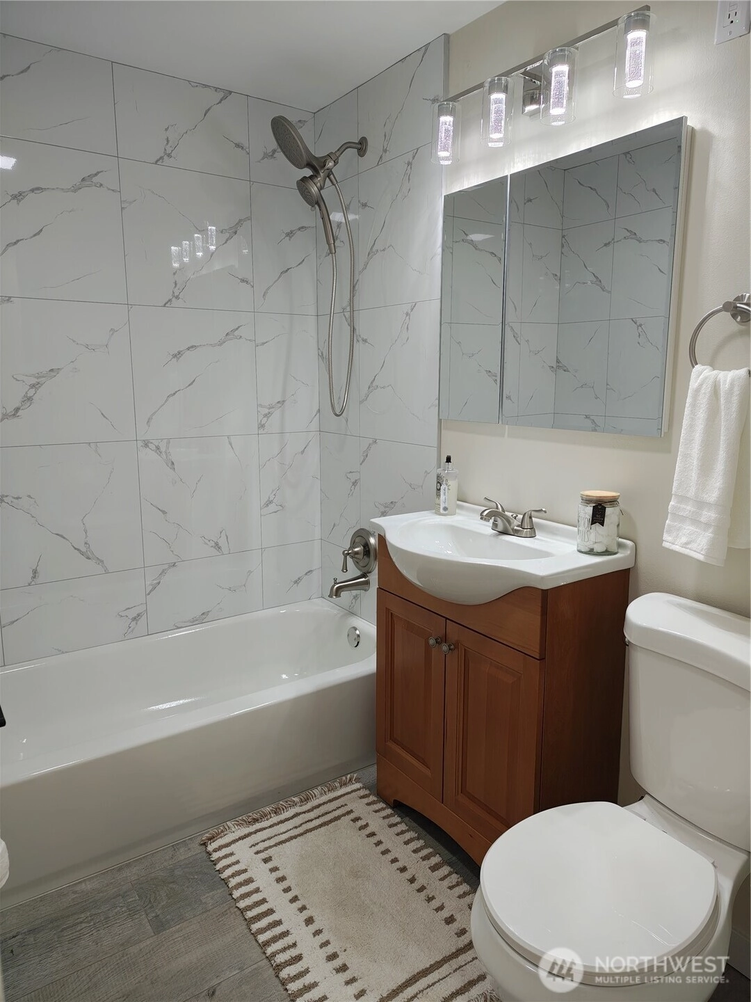 Fully remodeled Kennydale home blends modern style & prime loc! 2BD/1BA, 770 sqft, staged & move-in ready. Open living w/ new LVP floors, LED light pkg & fresh paint in/out. Stunning kitchen w/ quartz counters, shaker cabs, SS apps incl fridge, stove, MW & DW. Spacious BD w/ oversize new windows flood home w/ light; updated BA w/ designer tile & new fixtures. Every detail refreshed: new doors, hdwr, trim. Exterior shines w/ new HardiPlank siding, crisp landscaping, clean driveway & new fence. All work pro done for low-maintenance living. Enjoy Lake WA’s Gene Coulon Park, The Landing dining/shopping, easy I-405 commute to Bellevue/Seattle. Perfect condo alt or first home—rare turn-key in sought-after Kennydale!