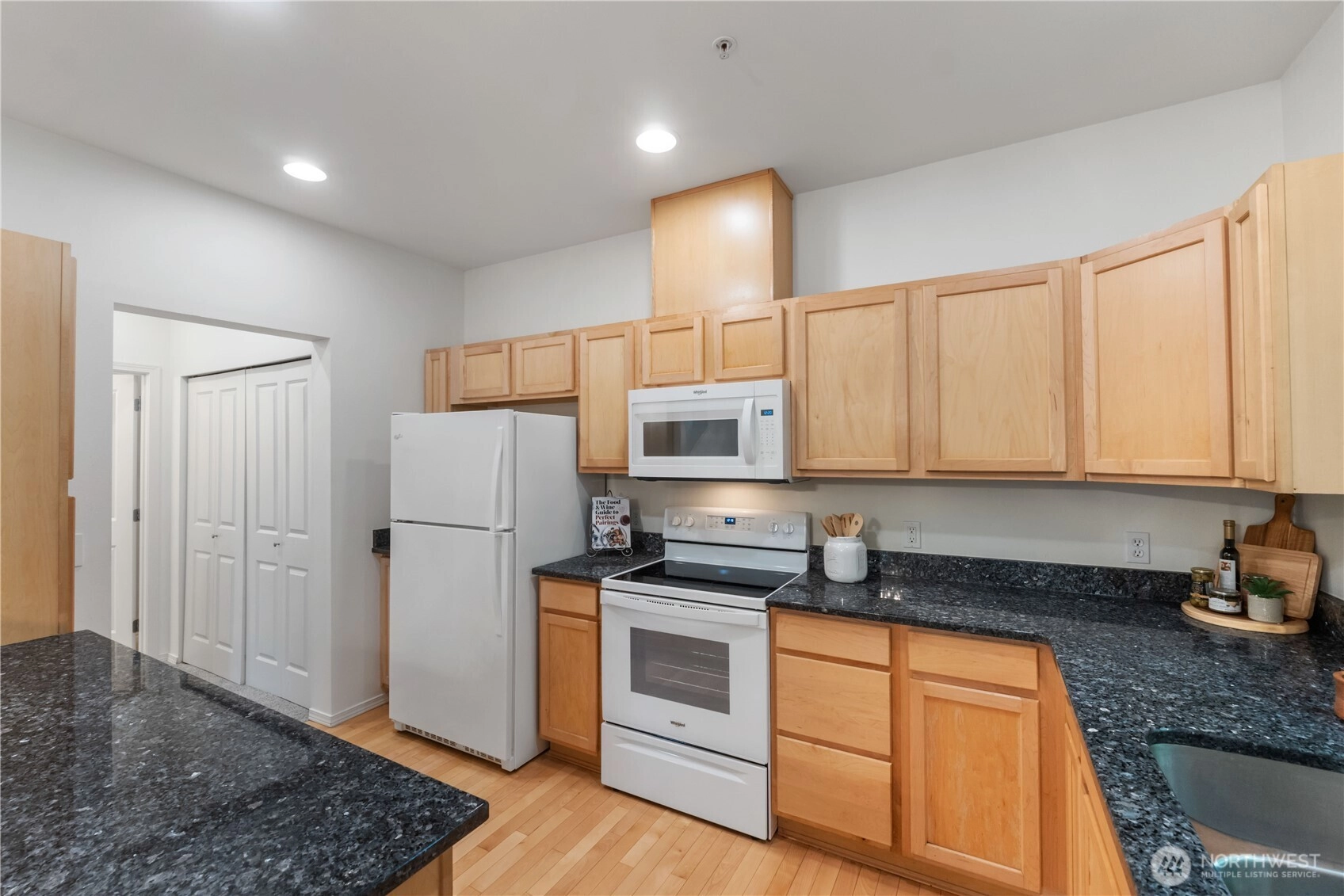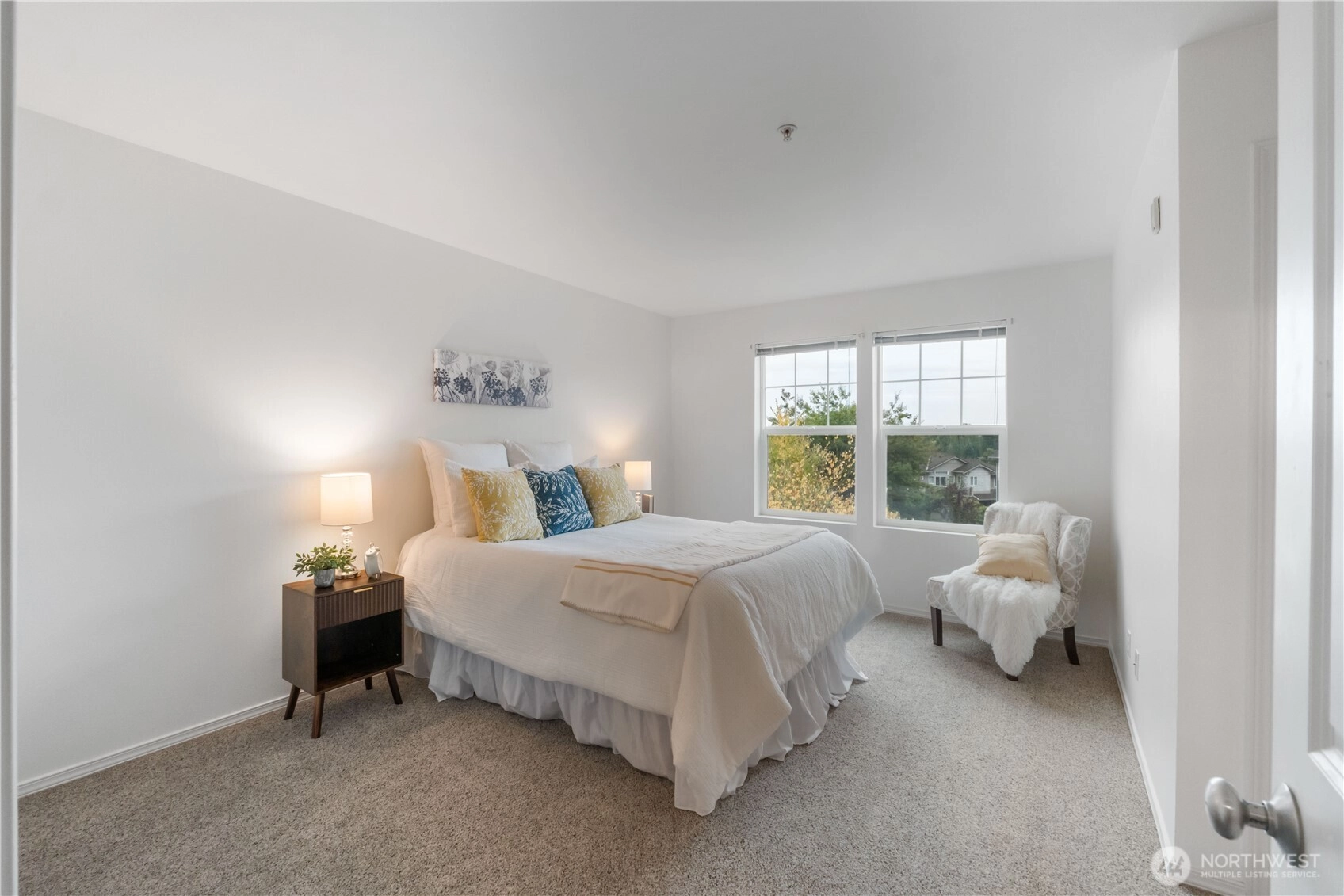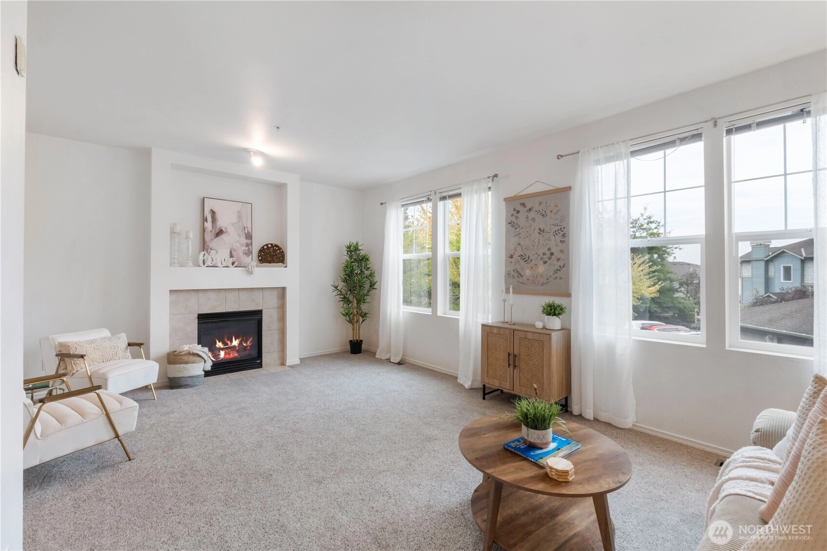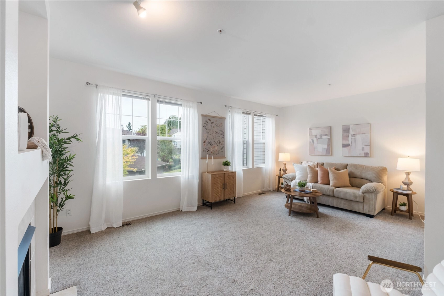 Experience modern elegance in this 3-bedroom, 2.5-bath corner unit condo at 21507 42nd Ave S Unit F3, SeaTac, WA 98198, in the serene River Ridge community. Built in 2004, this 1,872 sq ft home features an open layout with abundant natural light, newer carpet & hardwood floors, a cozy gas fireplace, & an office/den. The updated kitchen boasts granite counters & shaker cabinets. The primary suite offers a walk-in closet & stunning views of the valley and Cascade Mountains. Enjoy a private patio on a greenbelt, in-unit laundry, and a 2-car garage. New roof installed 2025. Ideally located near SeaTac Airport, I-5, Hwy 167, the light rail and Southcenter Mall —perfect for commuters. Schedule your tour today!